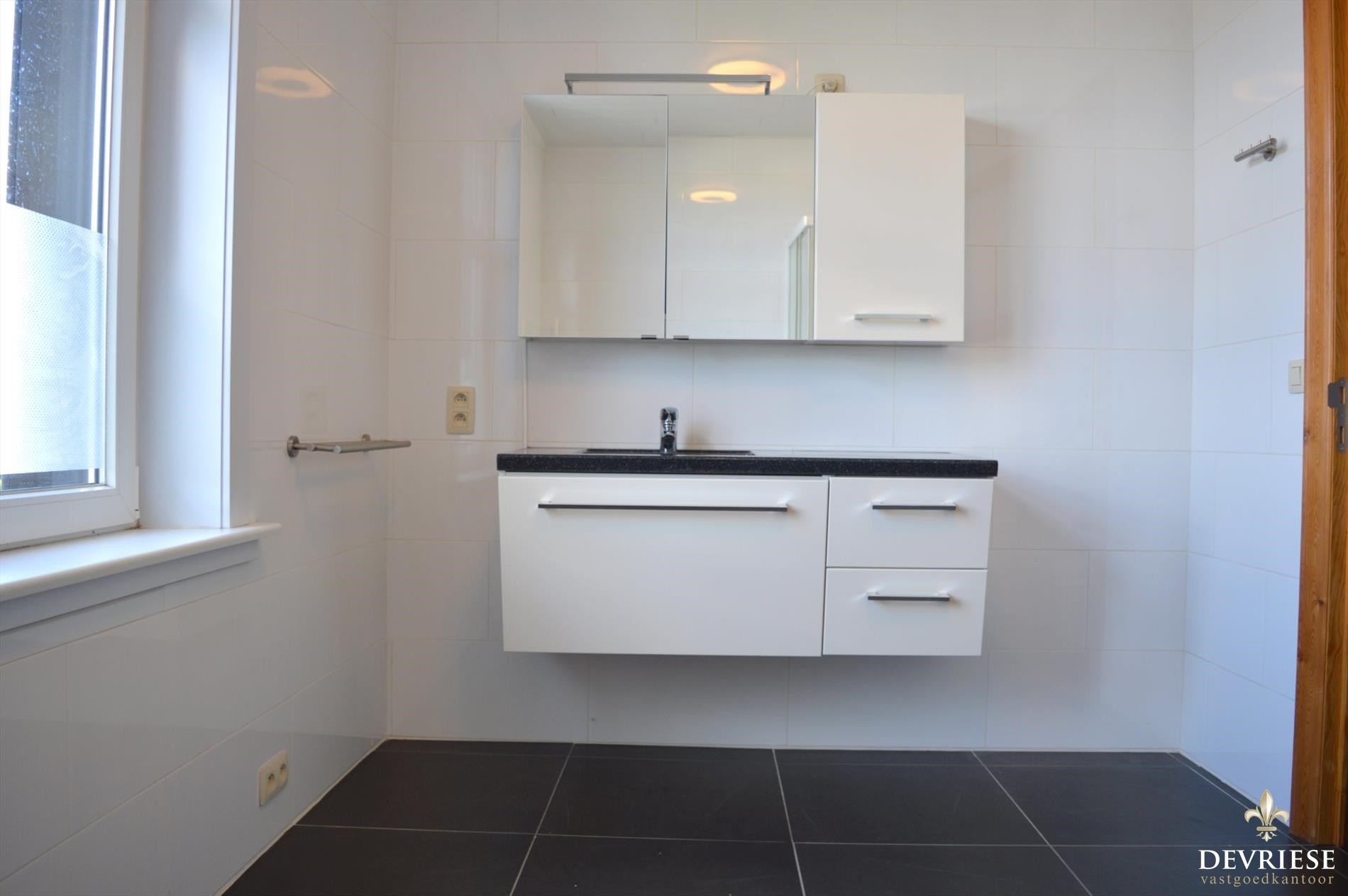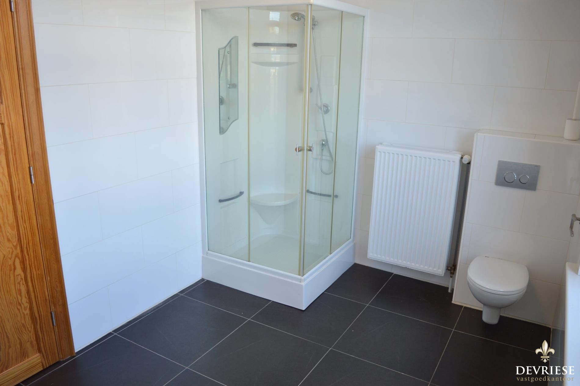 Last but not least beschikt de woning over een garage met uitweg achteraan het perceel. Deze is voorzien van een elektrische poort en is ook toegankelijk vanuit de woning.