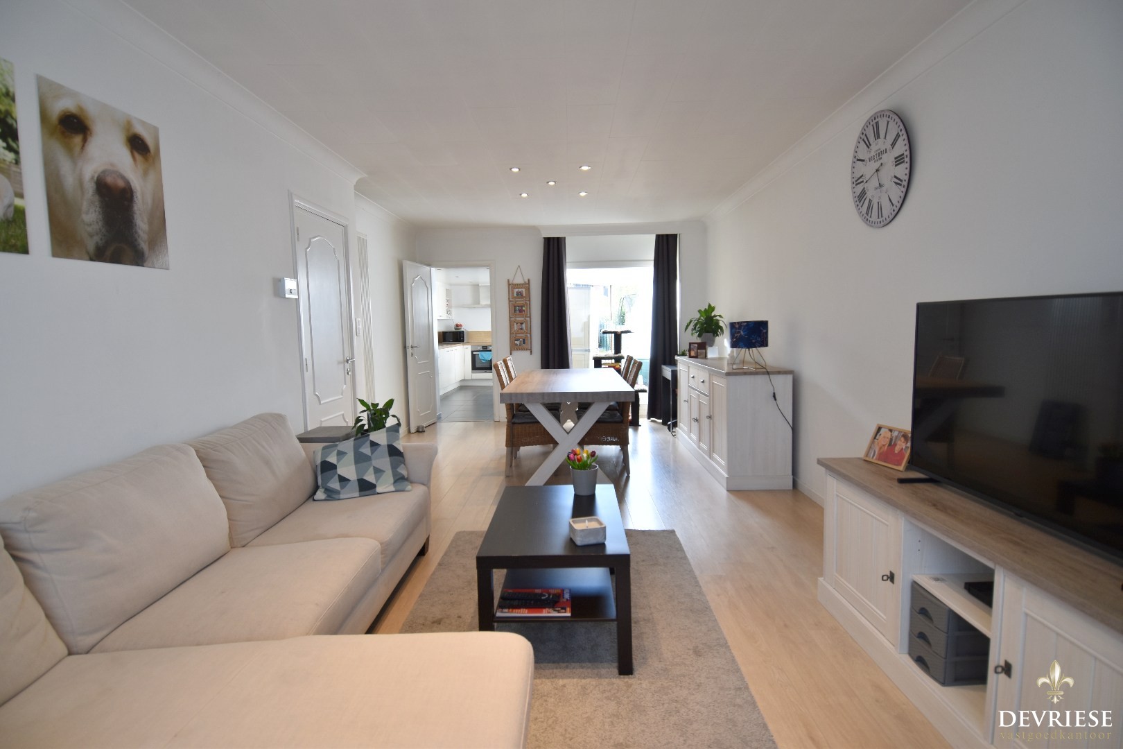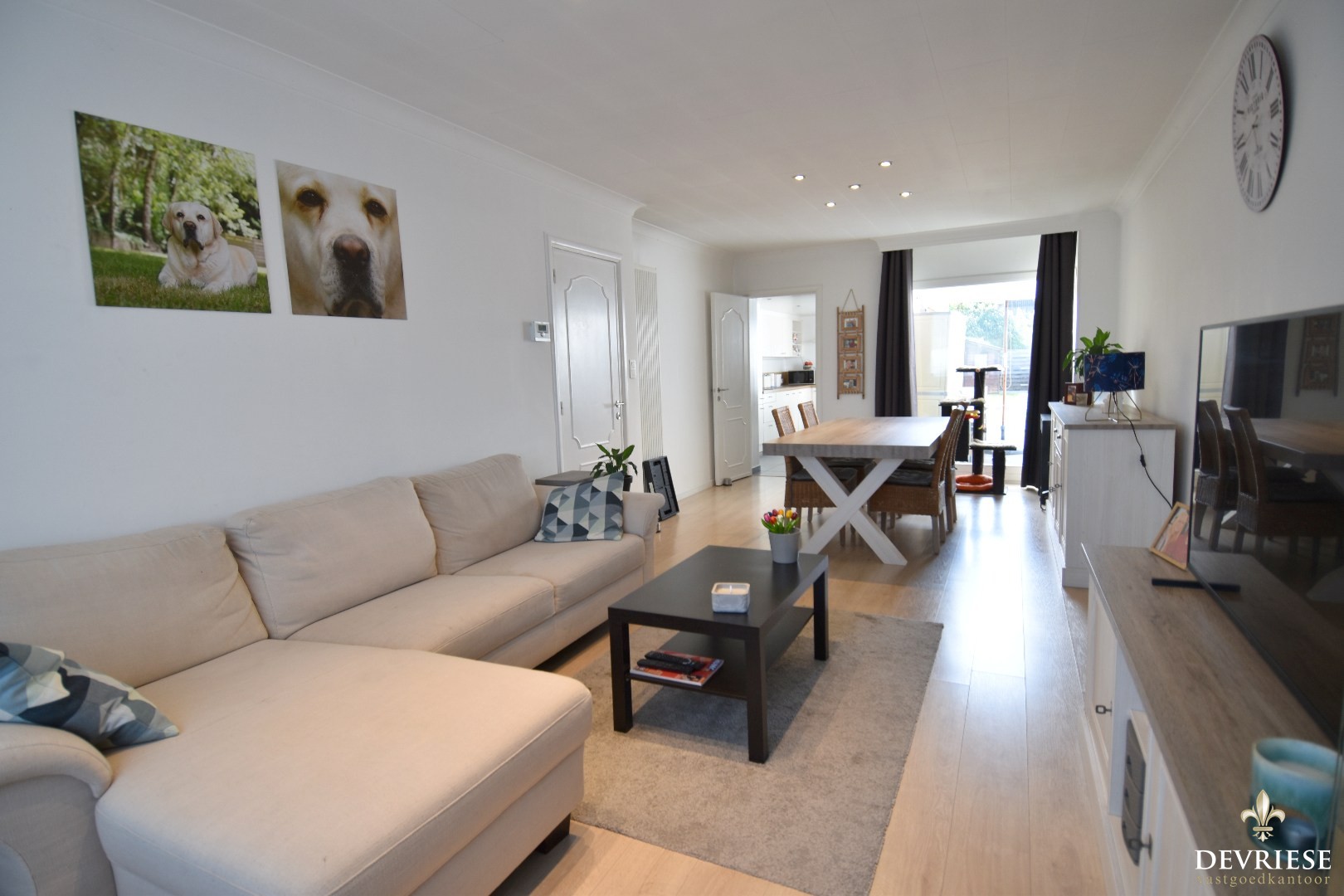 Op het gelijkvloers de aparte inkomhal die toegang geeft tot de gezellige leefruimte met heel veel lichtinval, aansluitend bij de moderne en volledig ingerichte keuken. Vanuit de keuken heeft u vol zicht op de tuin. Een handige kelder die dient als bergruimte is bereikbaar via de keuken.