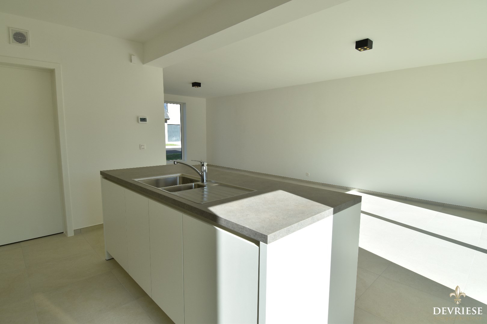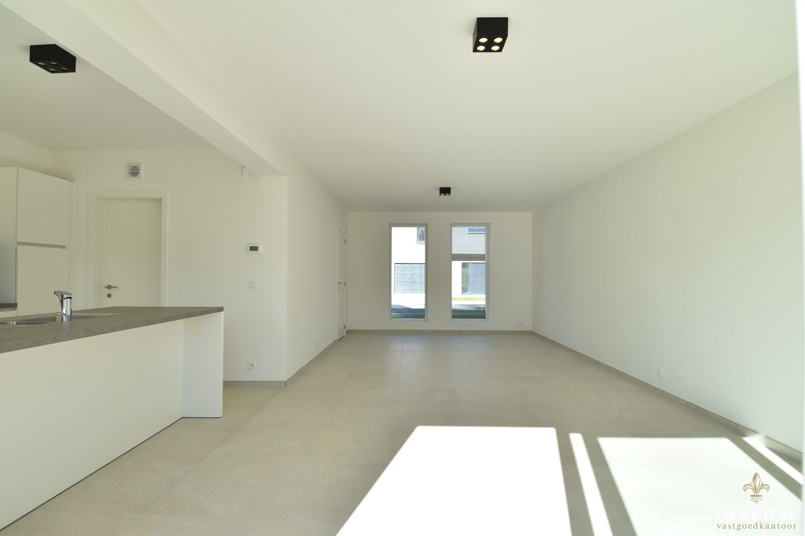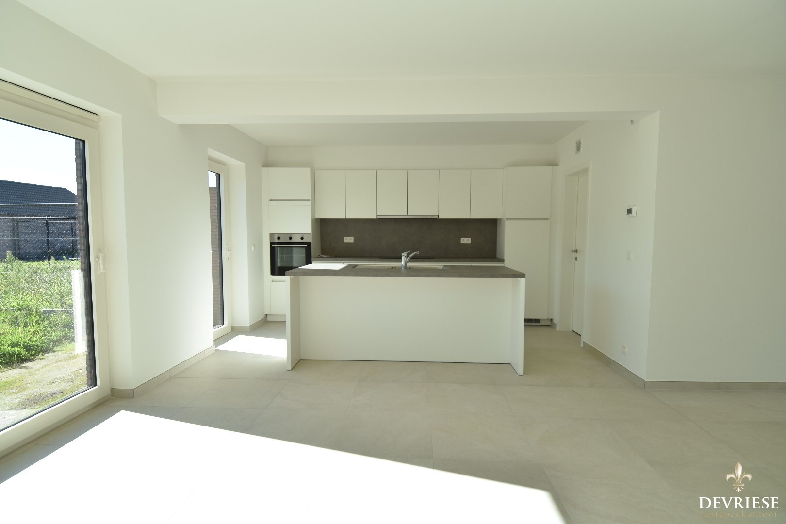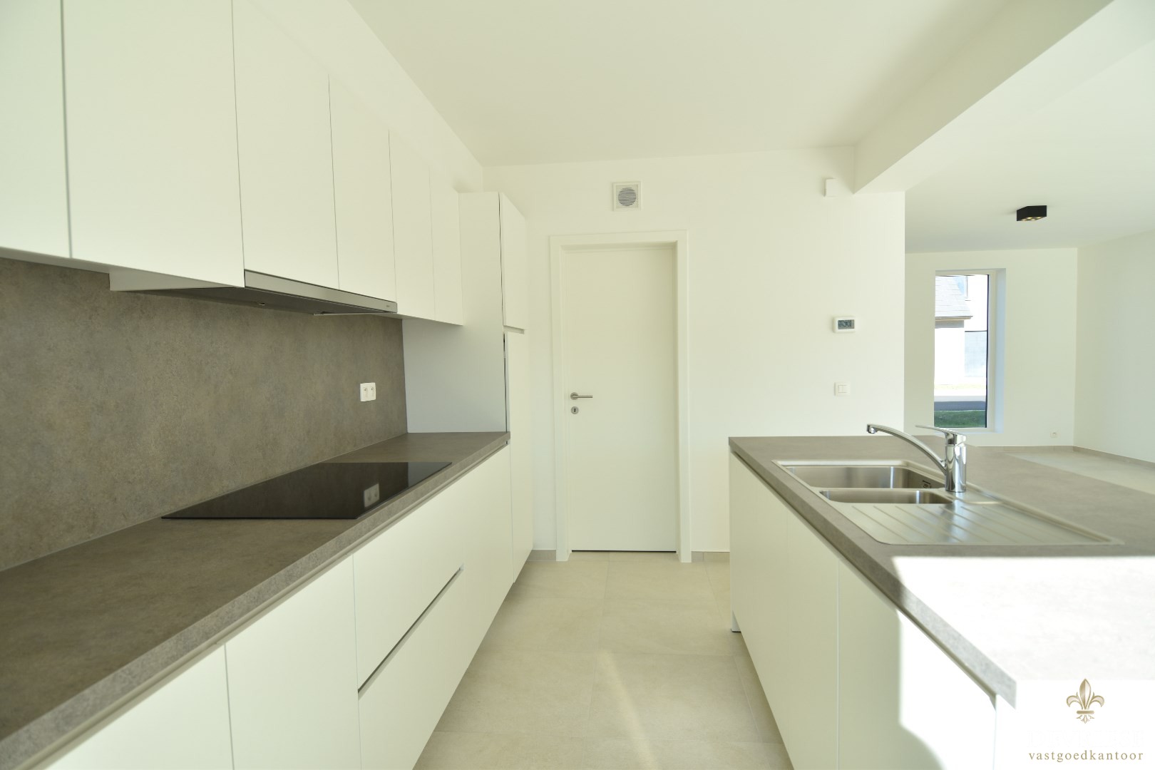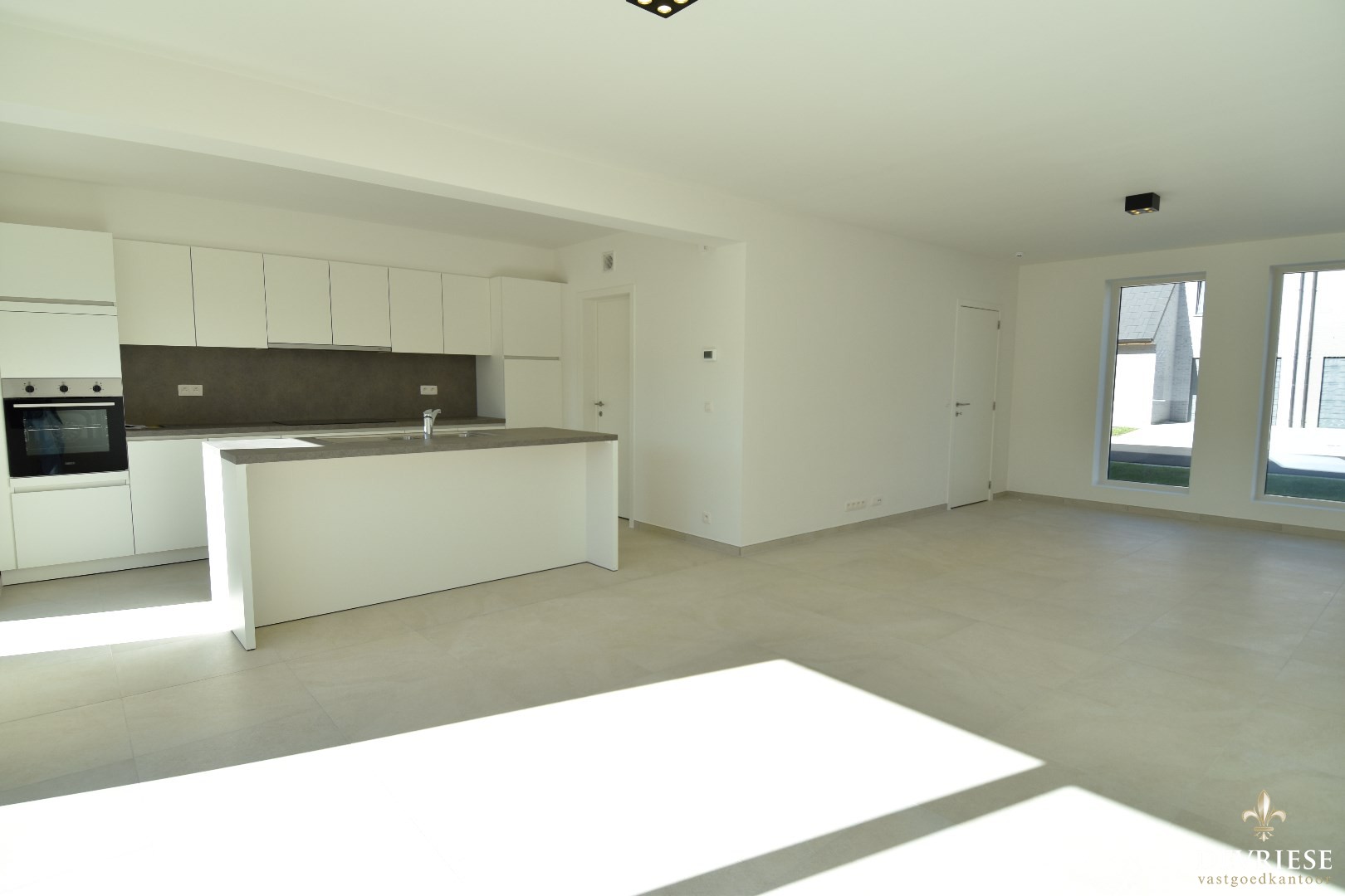 Inkom met apart gastentoilet, ruime en lichtrijke leefruimte met aansluitend de open keuken (voorzien van inductiekookplaat, oven, inbouwfrigo en vaatwasmachine).