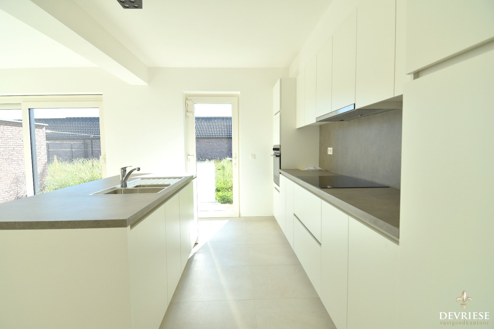 Via zowel de leefruimte als de keuken is er toegang tot de zuidoost georiënteerde tuin. Achteraan de tuin is er toegang tot de garage (voorzien van elektrische poort).