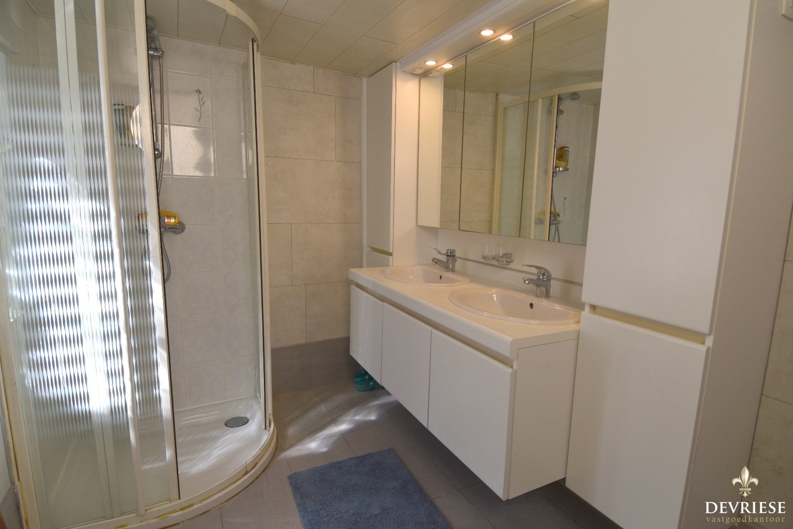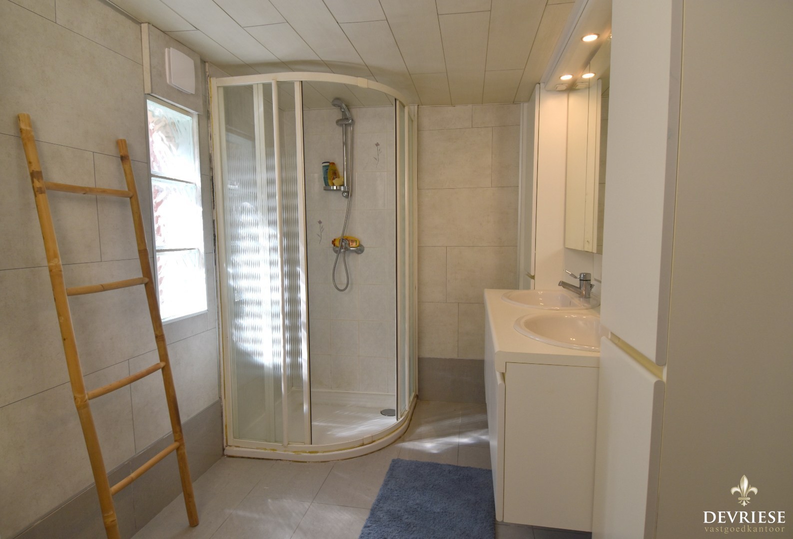 Naast de keuken is er toegang tot badkamer voorzien van toilet, douche en dubbele lavabo alsook de kelder.