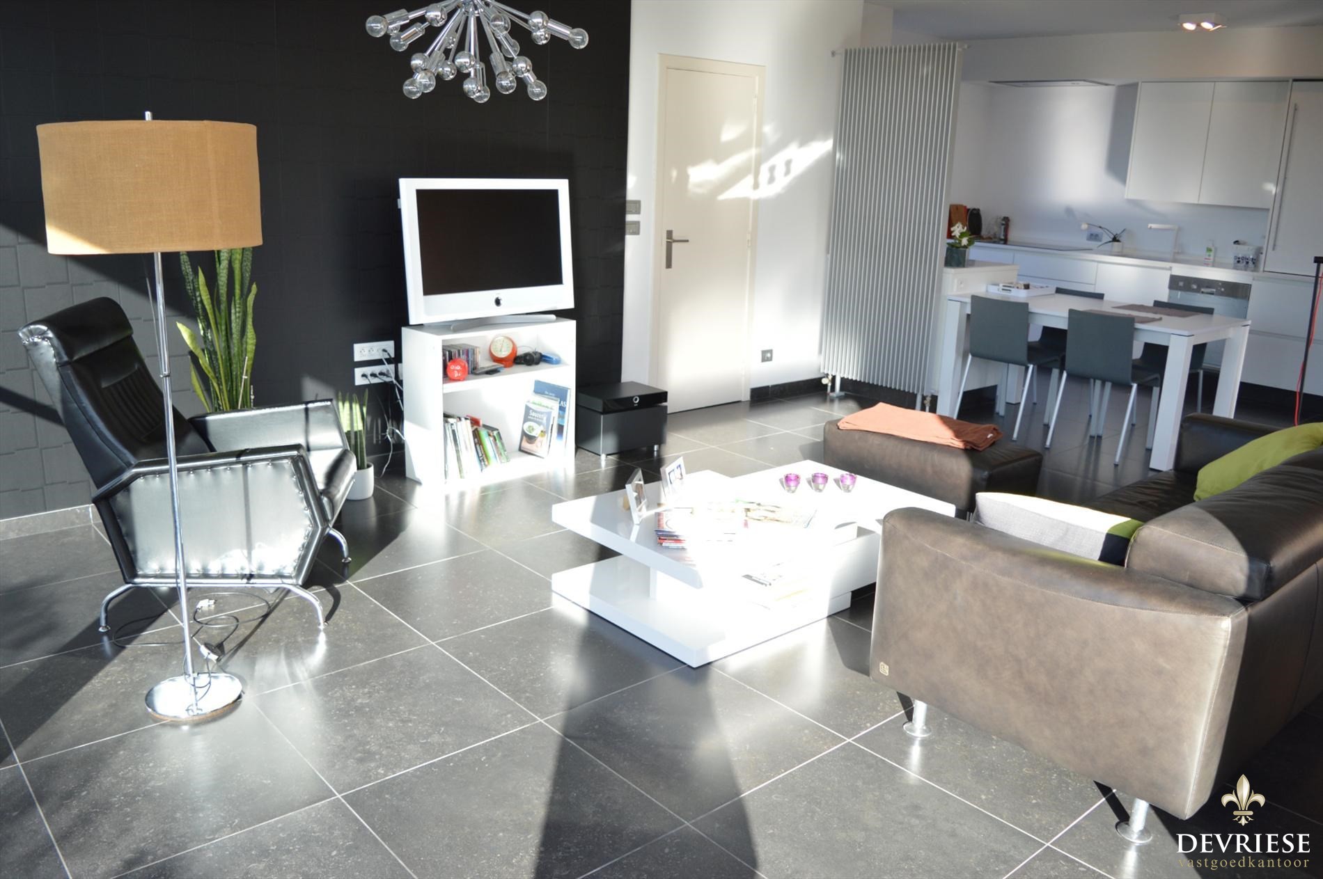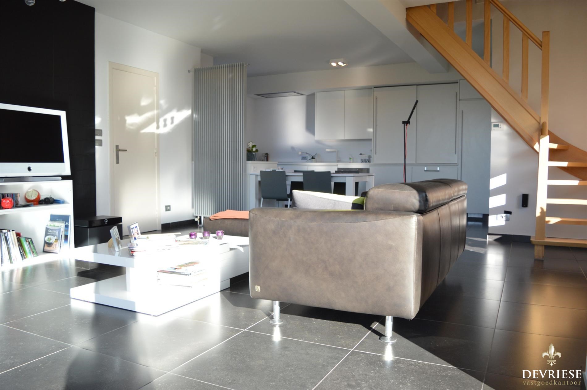 Ruime leefruimte met kwalitatieve open keuken en zeer veel lichtinval, extra bergruimte, badkamer met bad en 2 slaapkamers. Vooraan de woning beschik je over een mooi stukje grond. Beneden volledig vernieuwd en moderne inrichting.