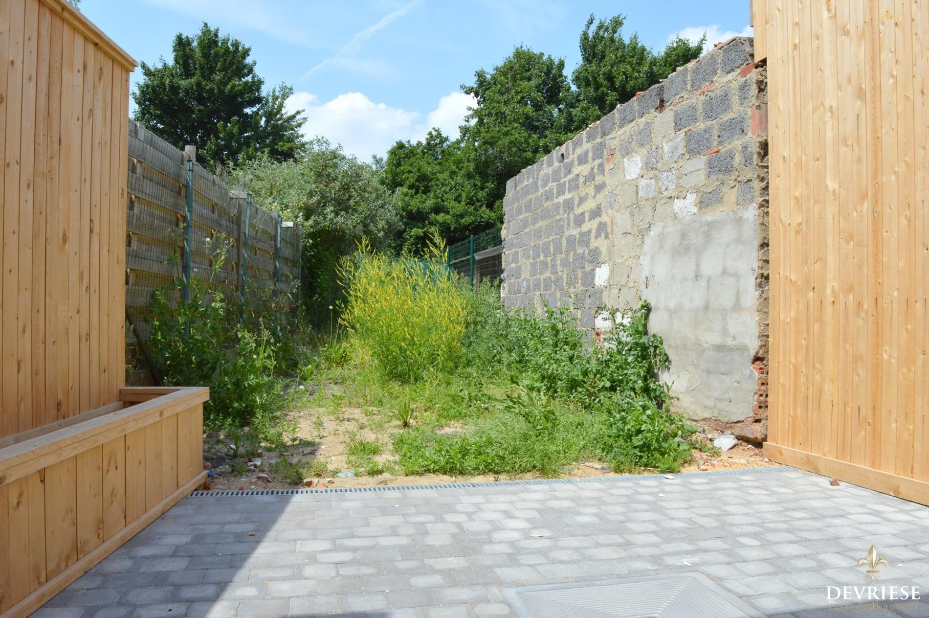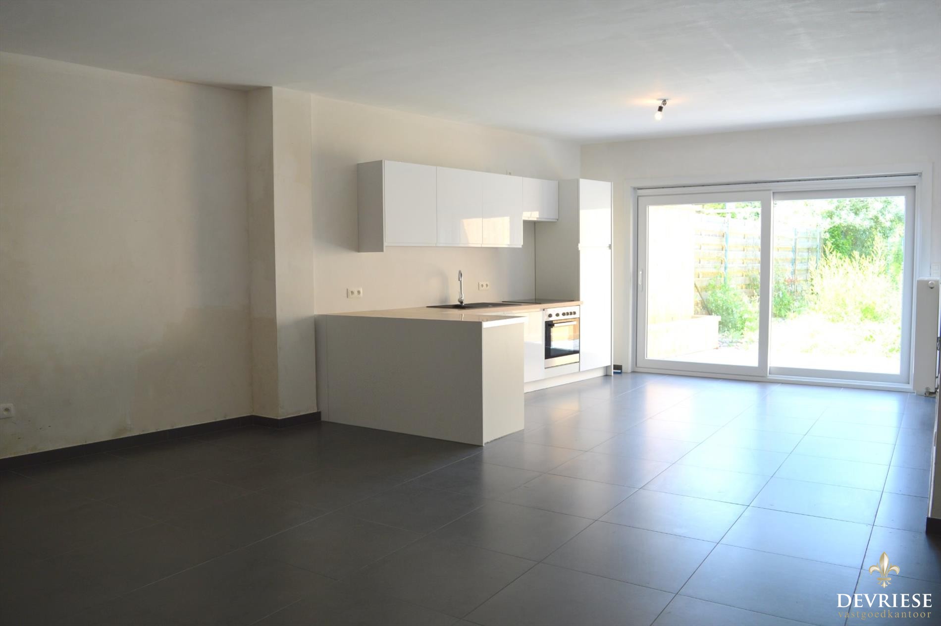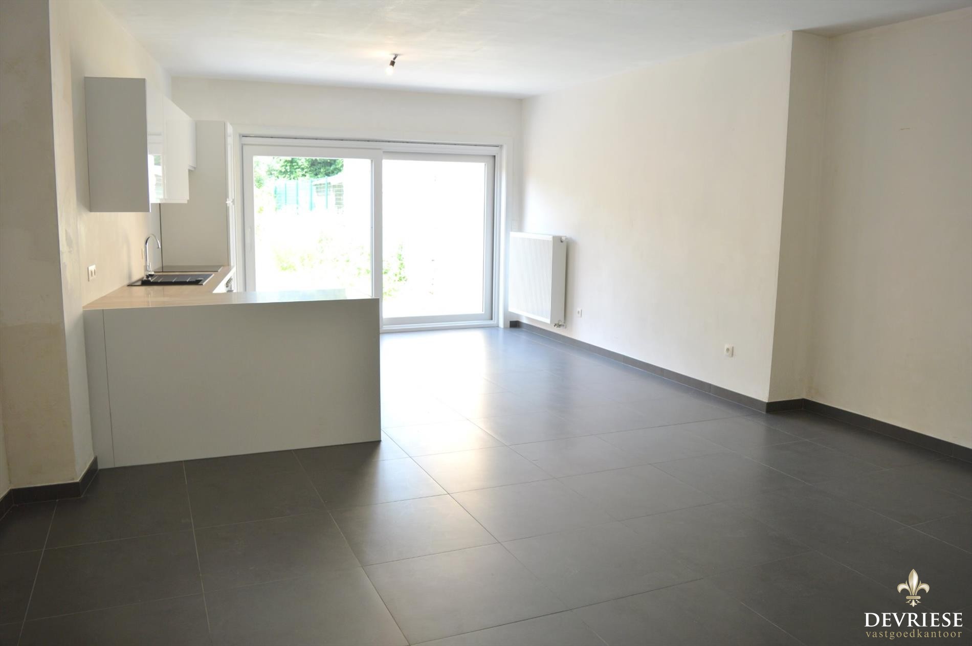 Aparte inkomhal met volledig nieuwe badkamer met inloopdouche en dubbele lavabo, daarachter de ruime leefruimte met open nieuwe keuken met veel lichtinval en zicht op de tuin.