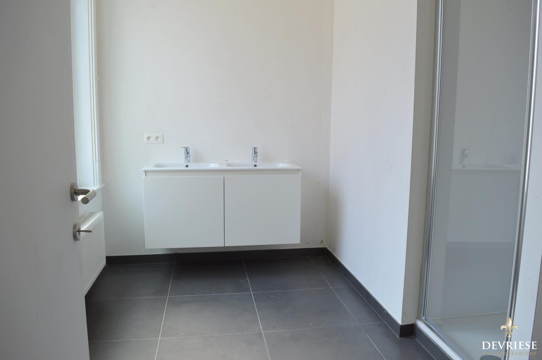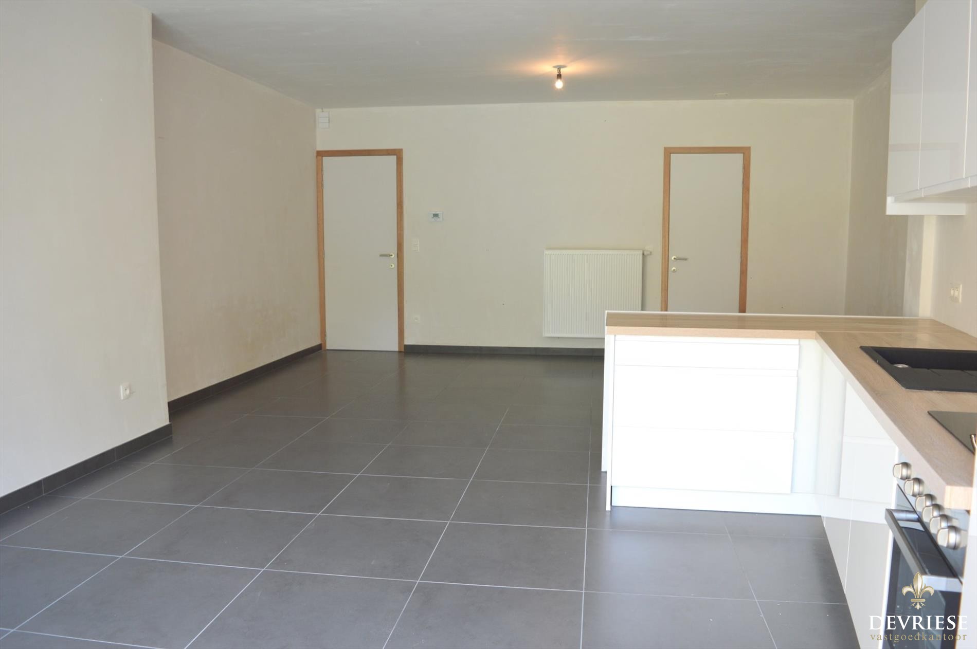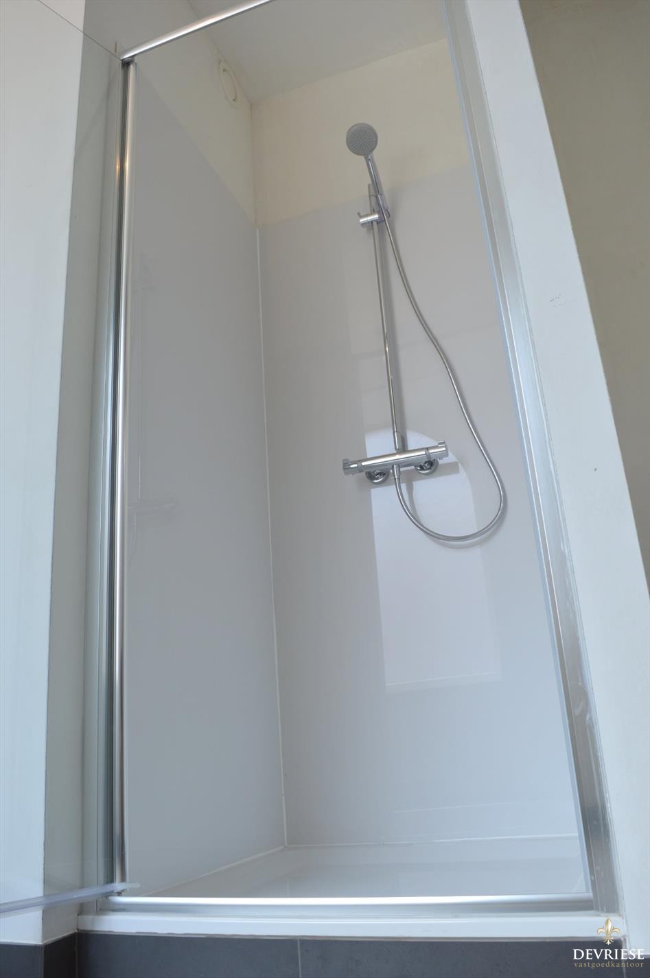 Aparte inkomhal met volledig nieuwe badkamer met inloopdouche en dubbele lavabo, daarachter de ruime leefruimte met open nieuwe keuken met veel lichtinval en zicht op de tuin.
