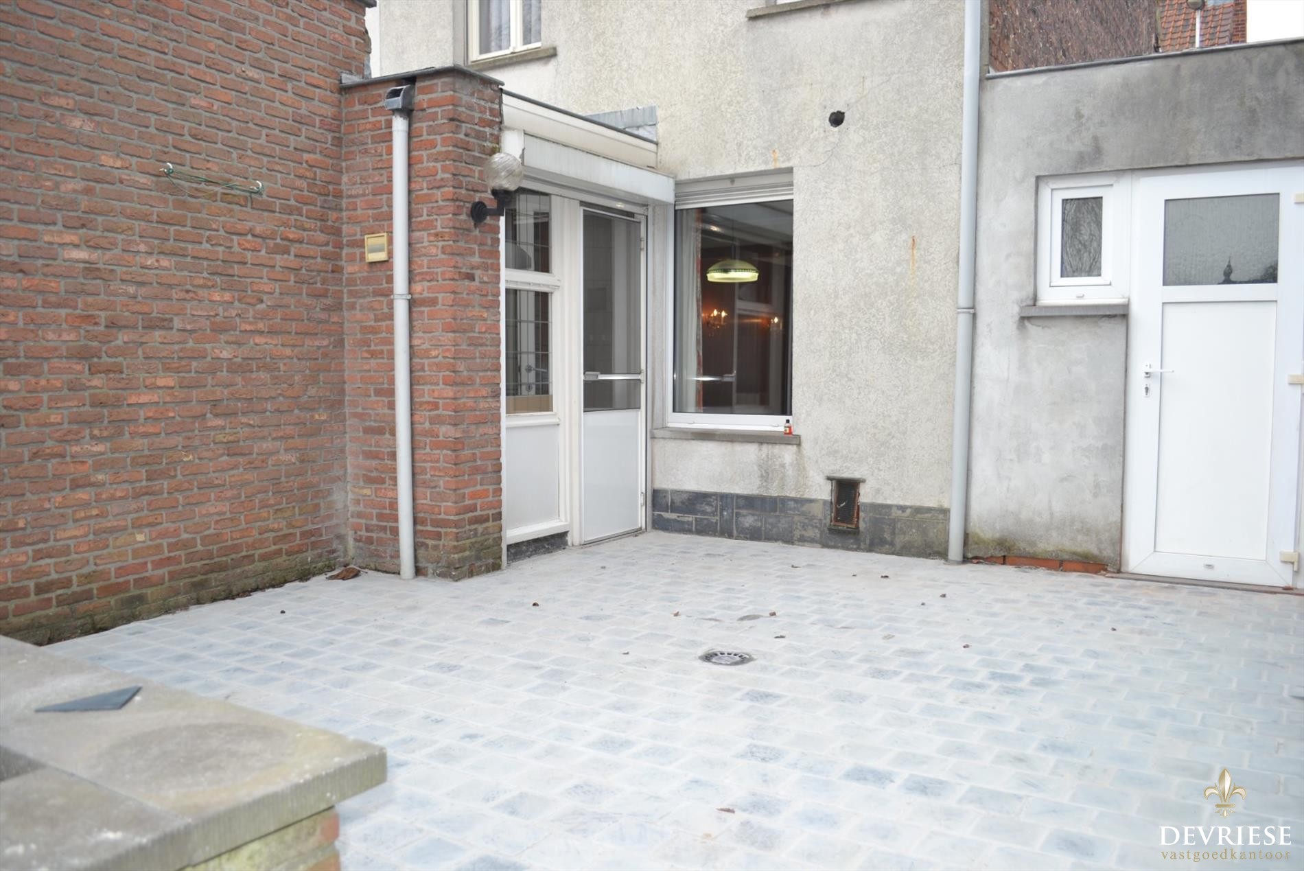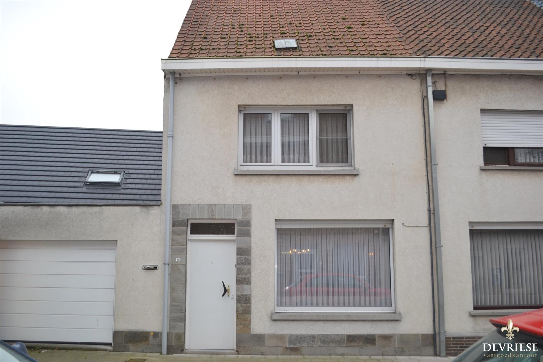 Woning met ruime leefruimte en keuken vanwaar er toegang is tot het terras en het tuintje achteraan de woning. De tuin is bereikbaar via een uitweg achteraan te voet of met de fiets. Op het gelijkvloers is er tevens de badkamer met douche en toilet en de garage. Op de eerste verdieping zijn er 2 slaapkamers voorzien.