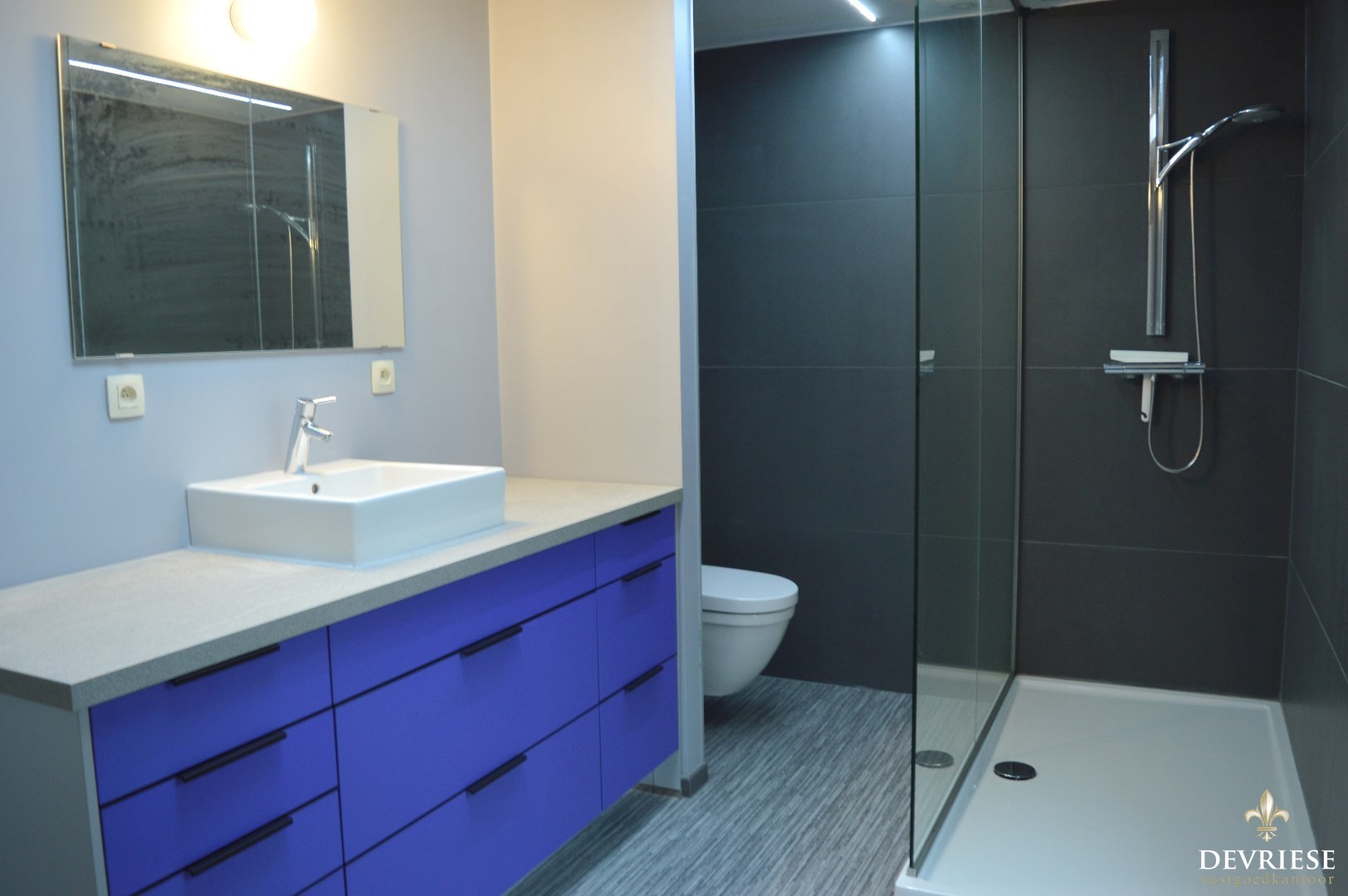 Op de eerste verdieping is de ruime badkamer met lavabo, toilet en ruime inloopdouche. Verder zijn er 2 ruime slaapkamers waarvan 1 kamer eventueel opgedeeld kan worden in 2 kamers.