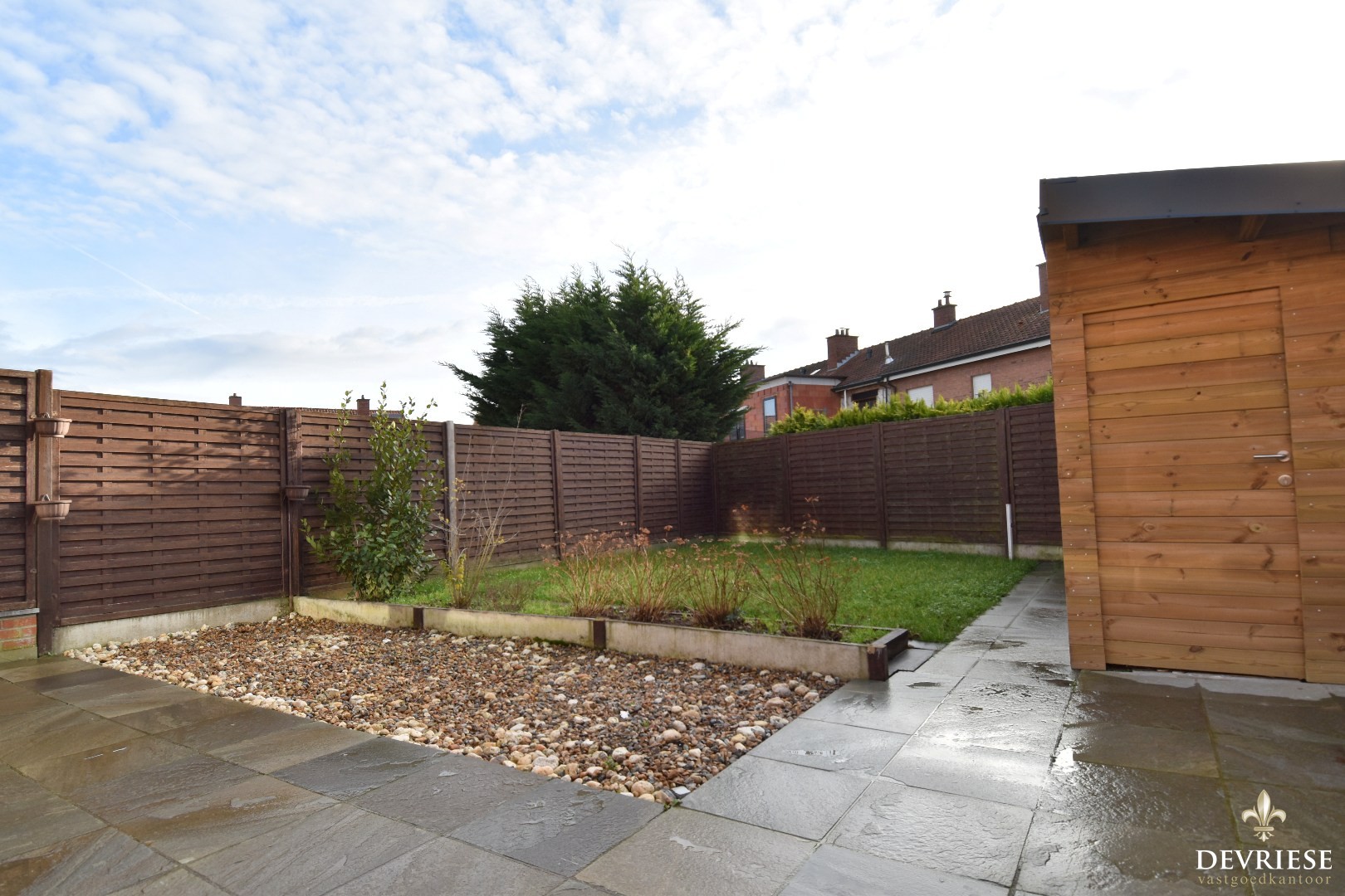 Via de berging is er toegang tot de zuidoost georiënteerde onderhoudsvriendelijke tuin met tuinberging.