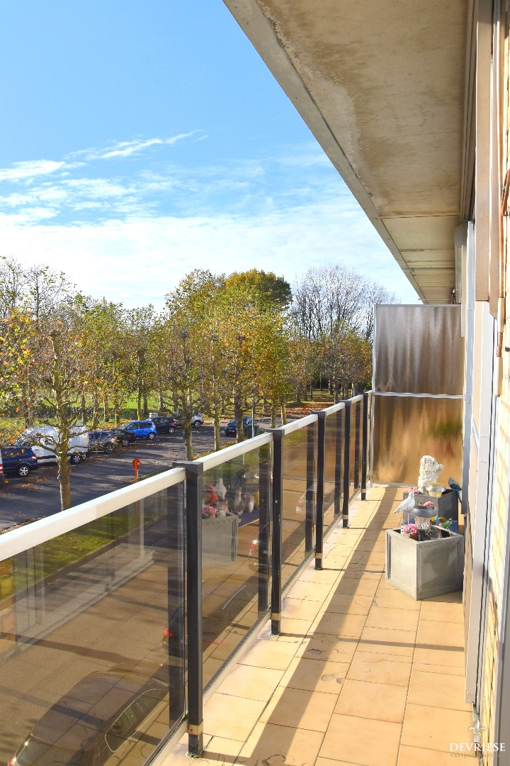 Vanop het terras vooraan het appartement geniet je van een aangenaam groen zicht.