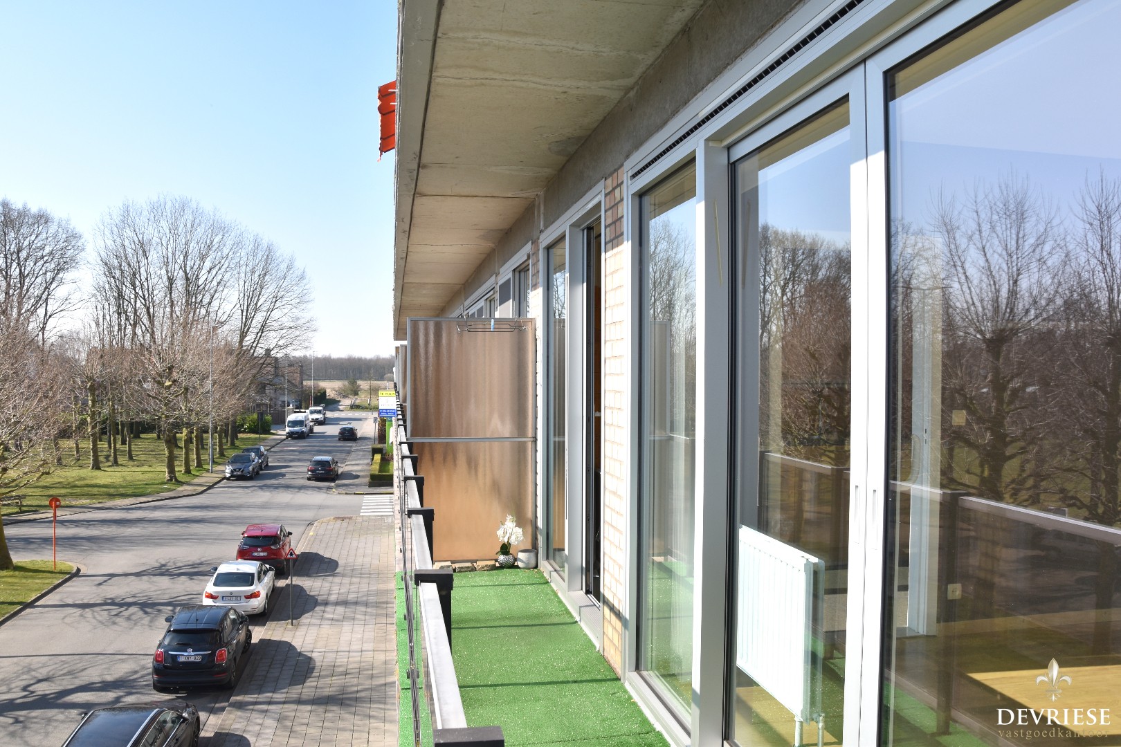 Vanop het terras vooraan geniet je van een aangenaam groen zicht.