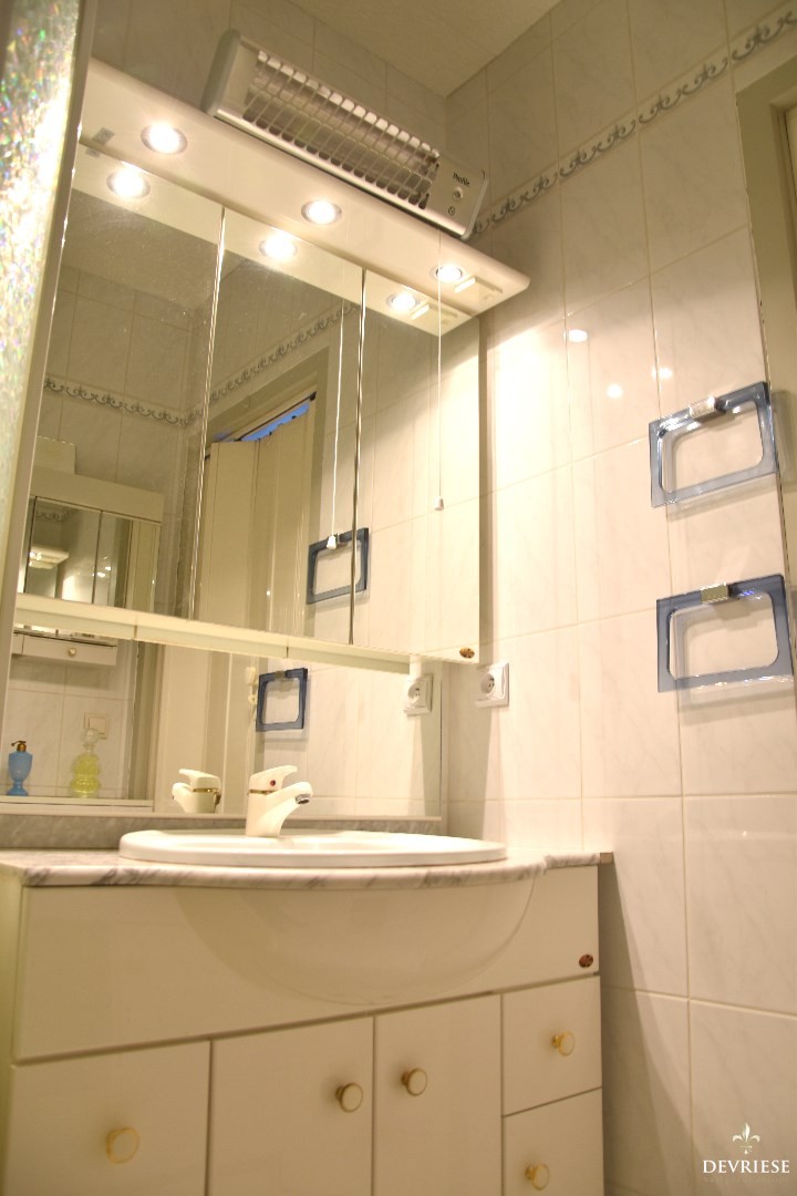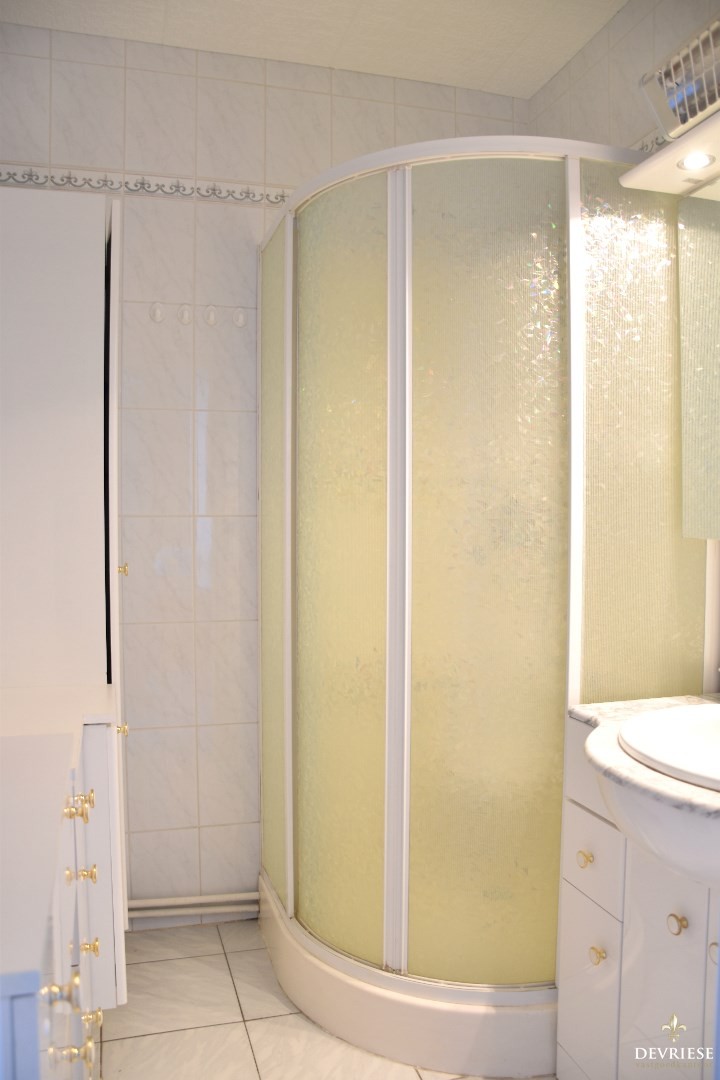 Inkom met vestiaire/voorraadkast, ruime leefruimte, geïnstalleerde keuken, badkamer met douche en lavabomeubel, apart toilet en 2 volwaardige slaapkamers.