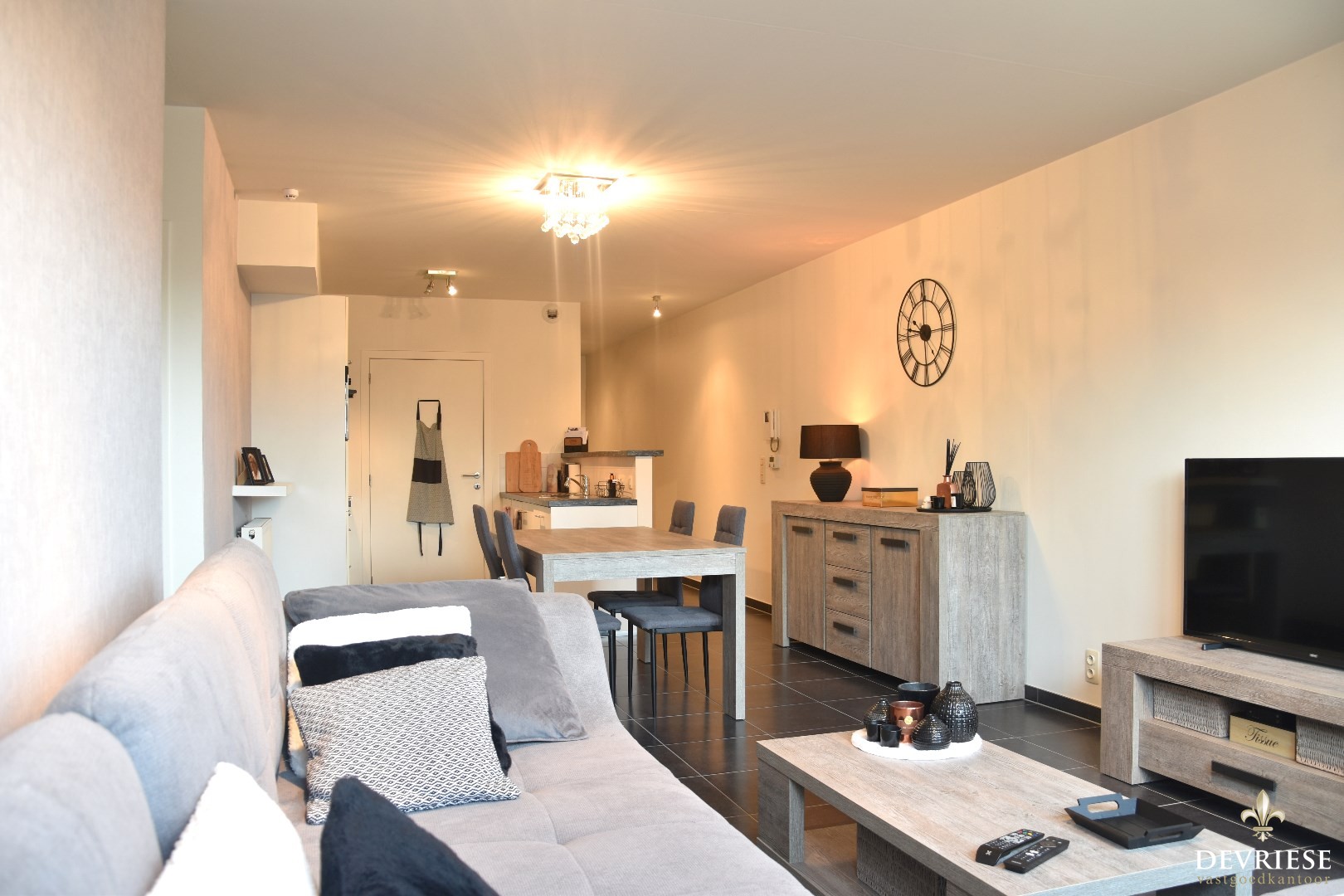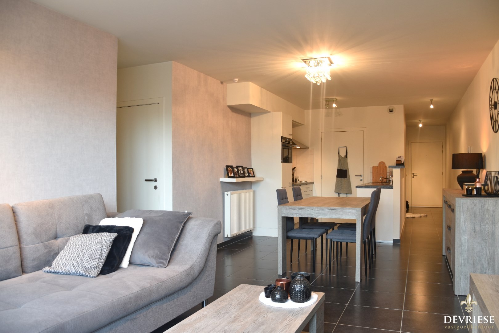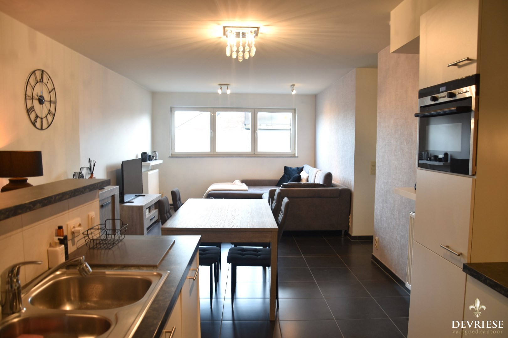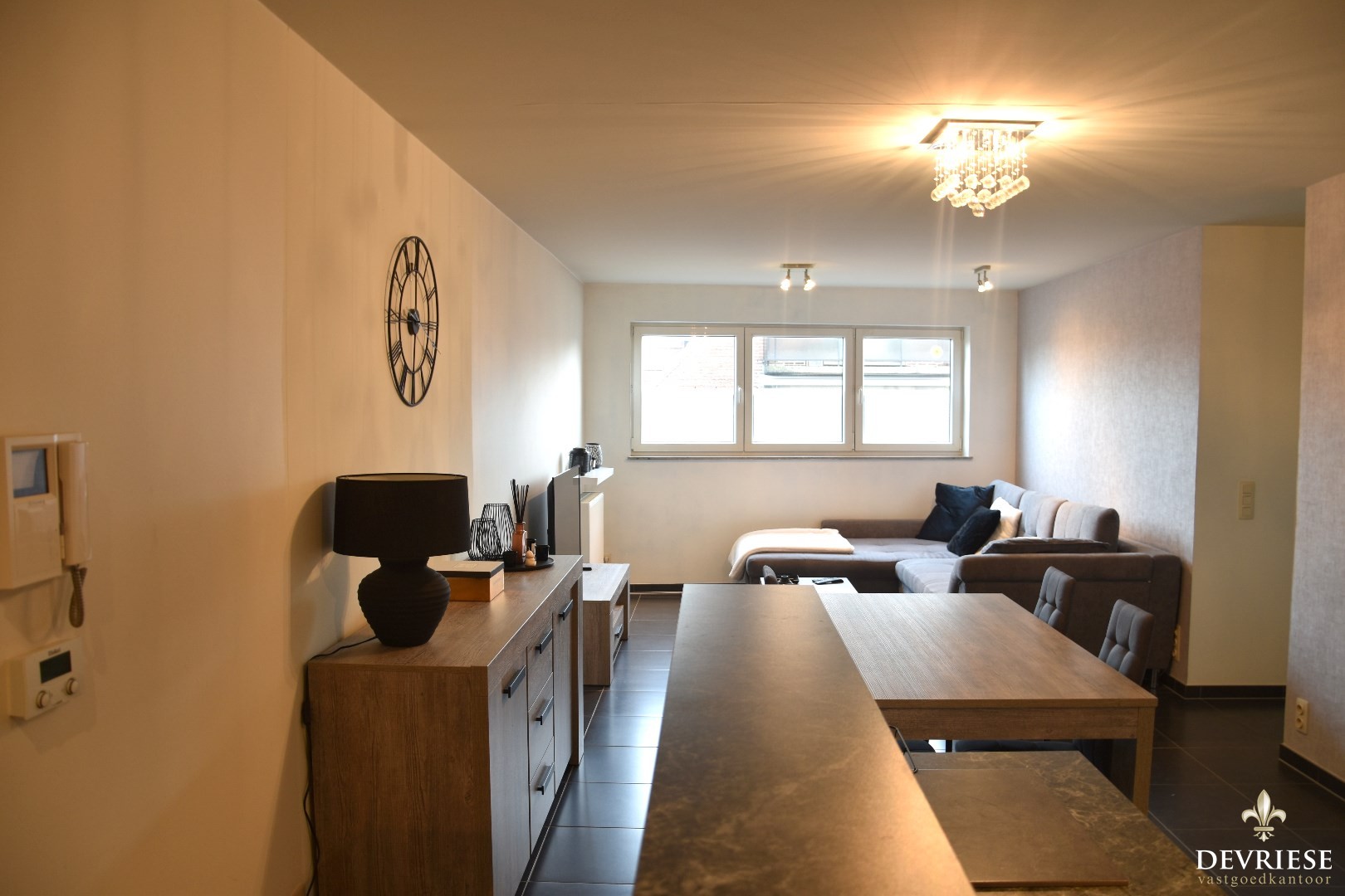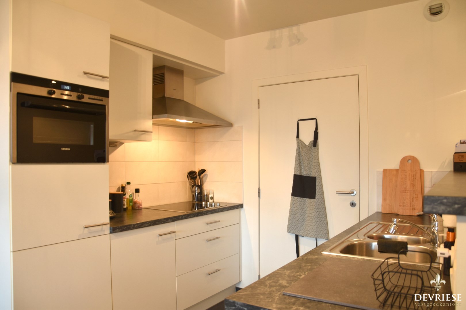 Functionele indeling met woonkamer / geïnstalleerde keuken (toestellen merk Siemens), apart toilet en een berging met voorziening voor wasmachine & droogkast.