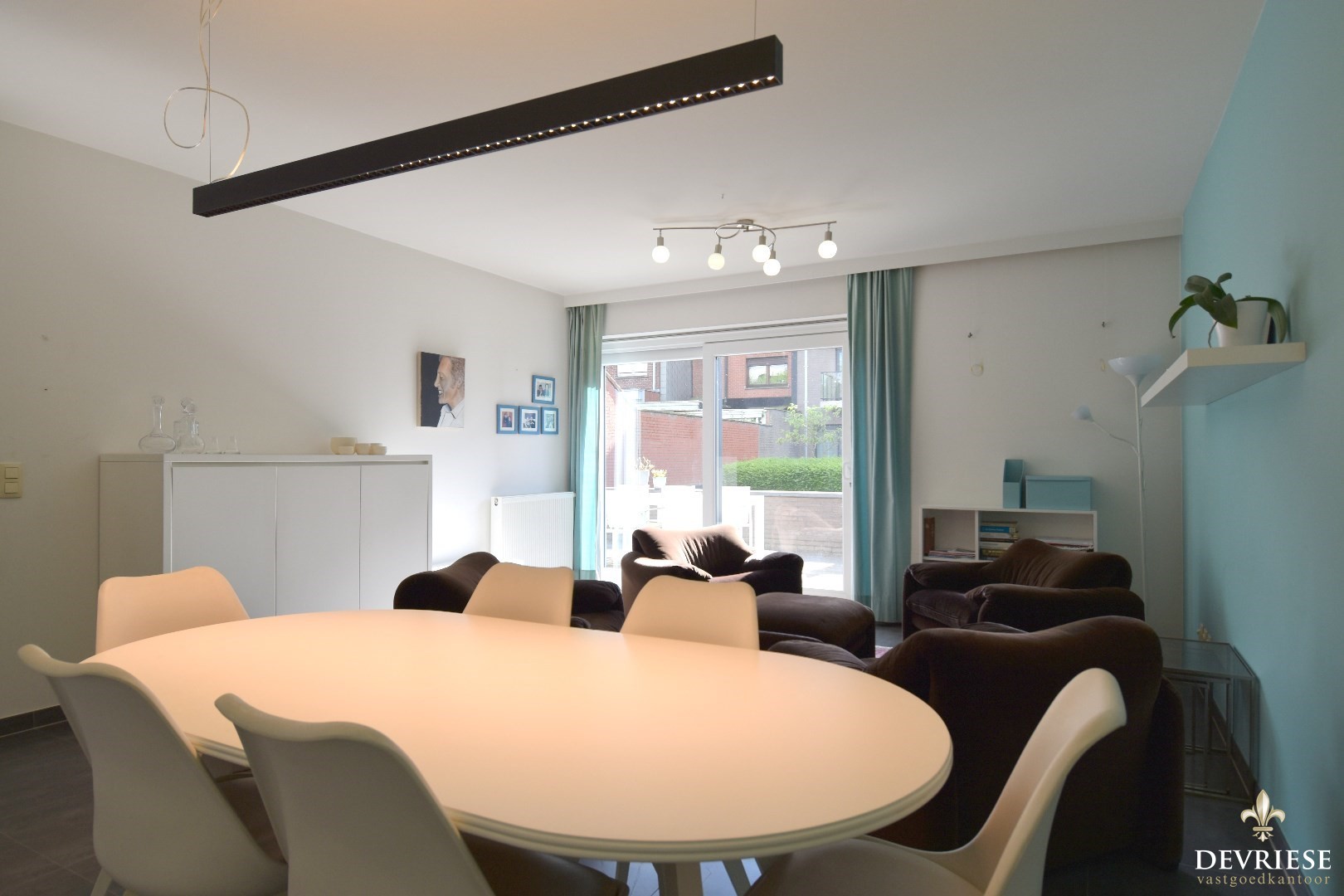 We spreken hier van een lichtrijk geheel dankzij de grote raampartijen.