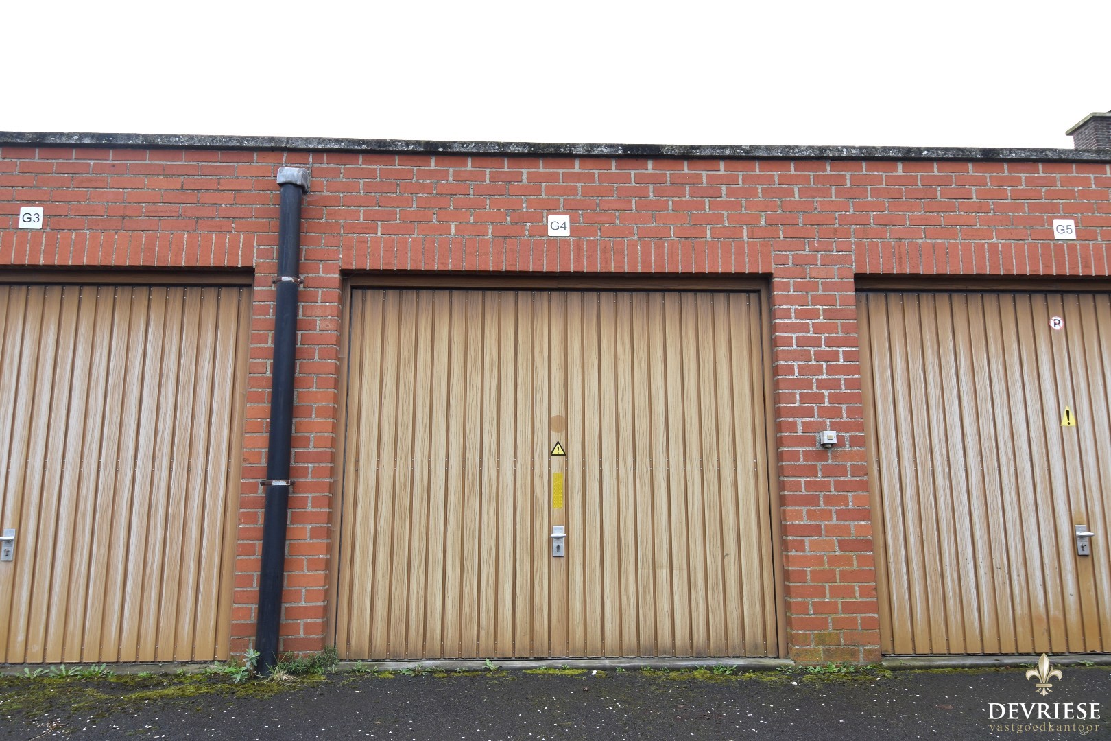 Achteraan het gebouw bevindt zich de garage met elektrische sectionaalpoort.