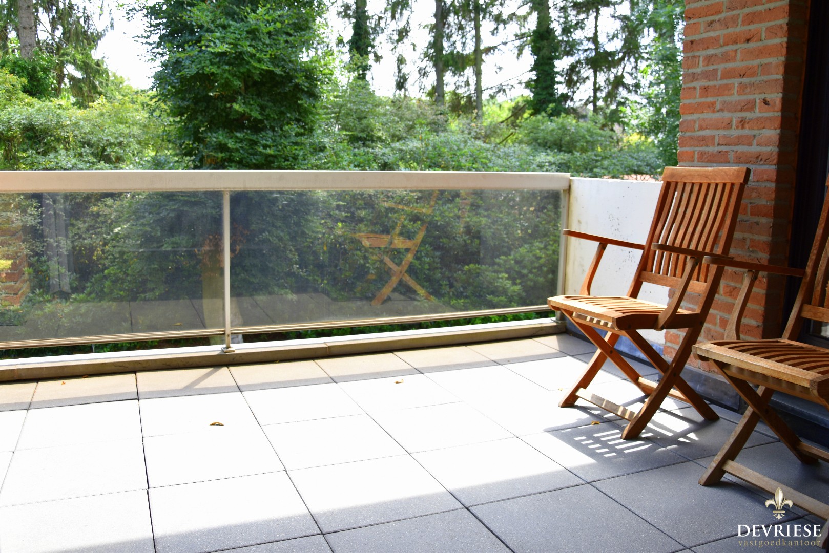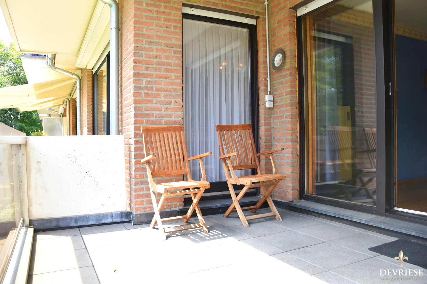 Het gezellige terras dat uitkijkt op groen is bereikbaar via de leefruimte en slaapkamer.