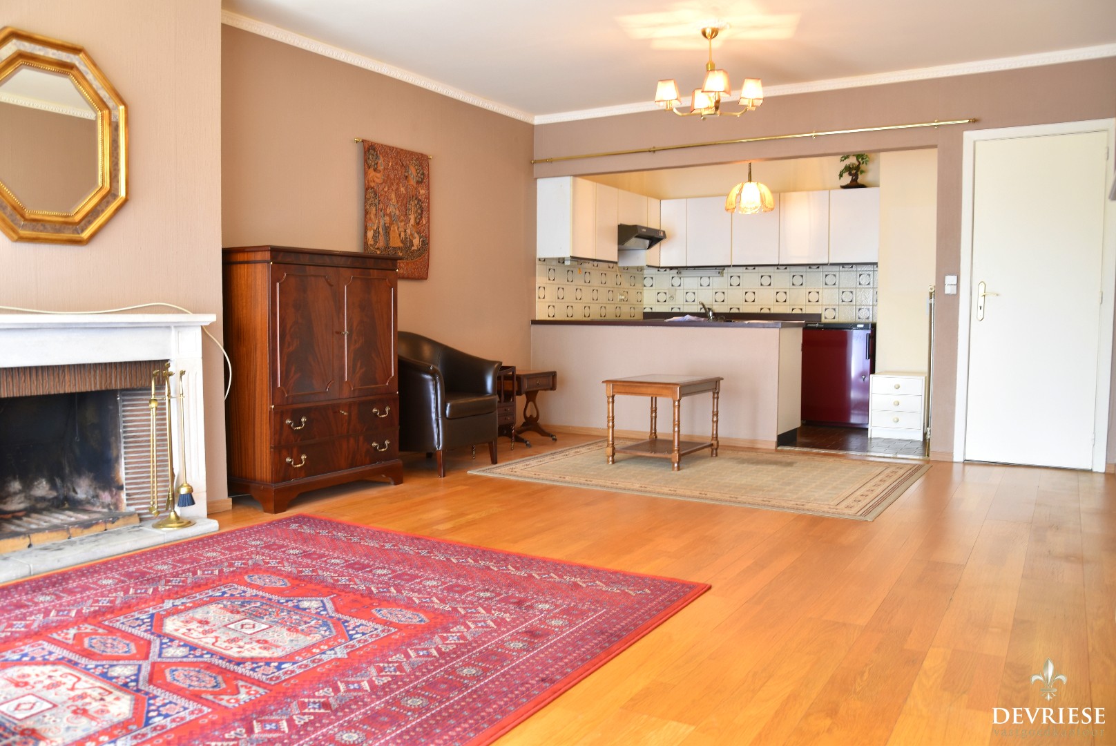 U komt binnen in de aparte inkomhal met apart gastentoilet. Vanuit de inkomhal heeft u toegang tot de charmante leefruimte met open keuken. Heel wat lichtinval door de grote ramen, met mooi vol groen zicht.