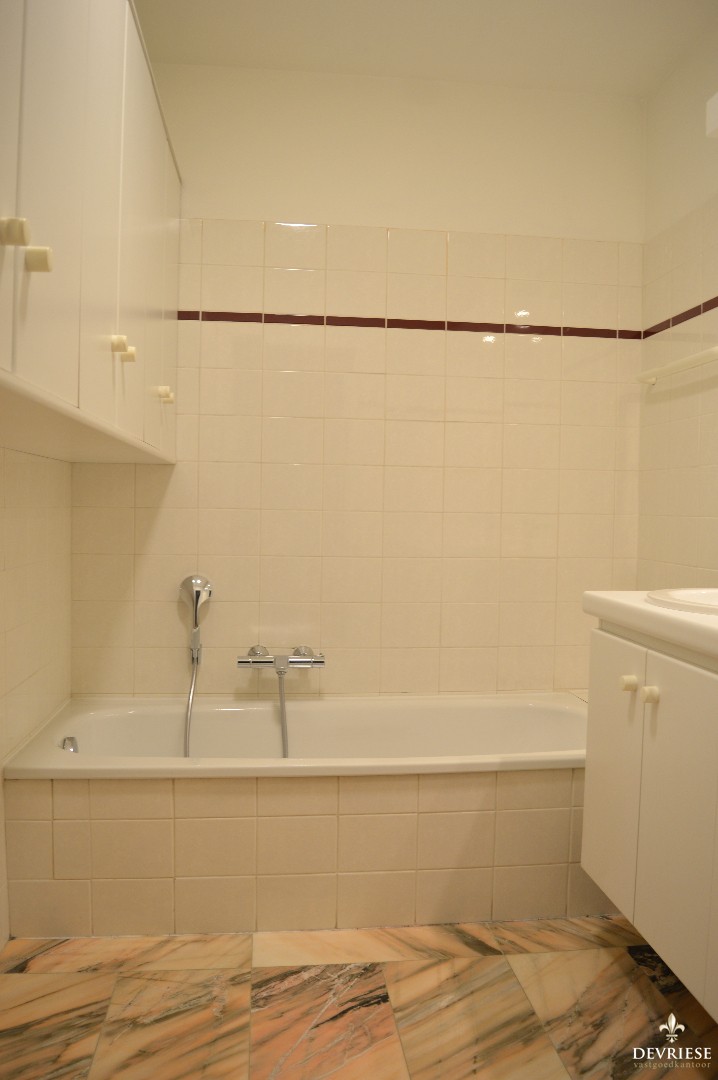 Het appartement bestaat uit een inkomhal met apart toilet, een leefruimte, volledig vernieuwde keuken genietend van veel lichtinval met aanpalend een balkon. Verder beschikt dit appartement over een keukenberging, een aparte berging en badkamer bestaande uit een bad met dubbele lavabo en 2 slaapkamers met zonnig balkon achteraan. Centrale verwarming op aardgas.