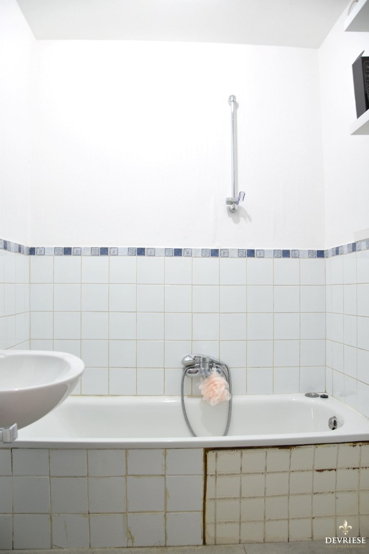 De badkamer is voorzien van een ligbad en lavabomeubel. Apart toilet.