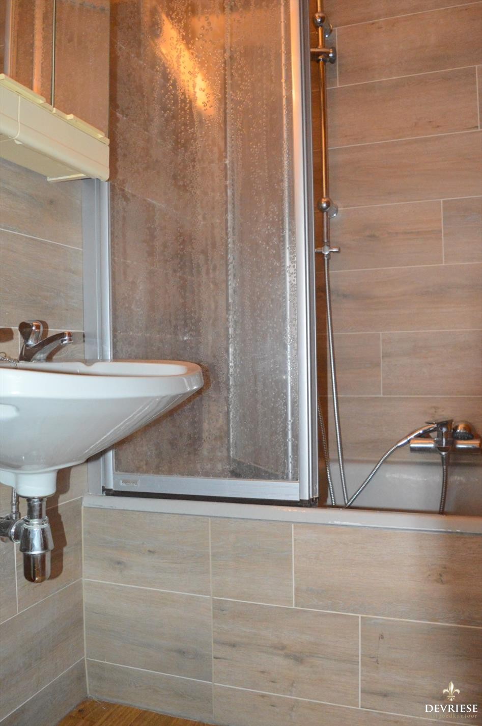 Lichtrijke living met aansluitend de ingerichte keuken, vestiaire en afzonderlijk toilet. Vanop het zuid-gericht terras heeft u zicht op de groene omgeving. Ruime slaapkamer met directe toegang tot de vernieuwde badkamer, uitgerust met lavabo en douche.