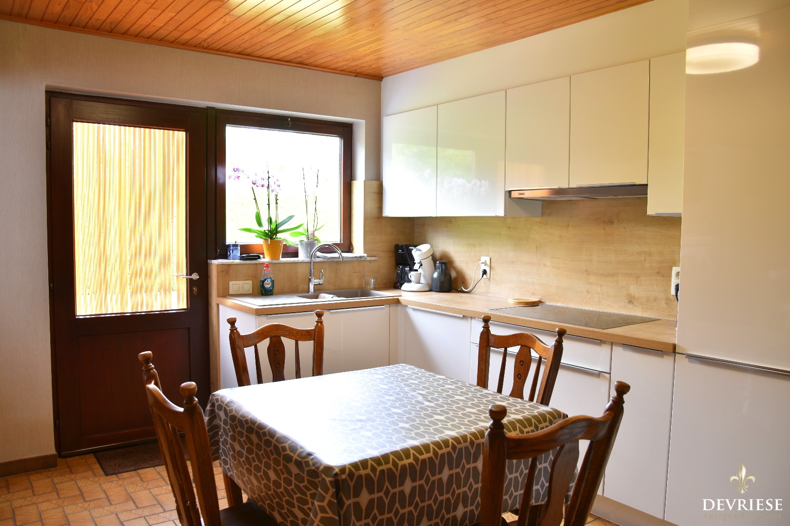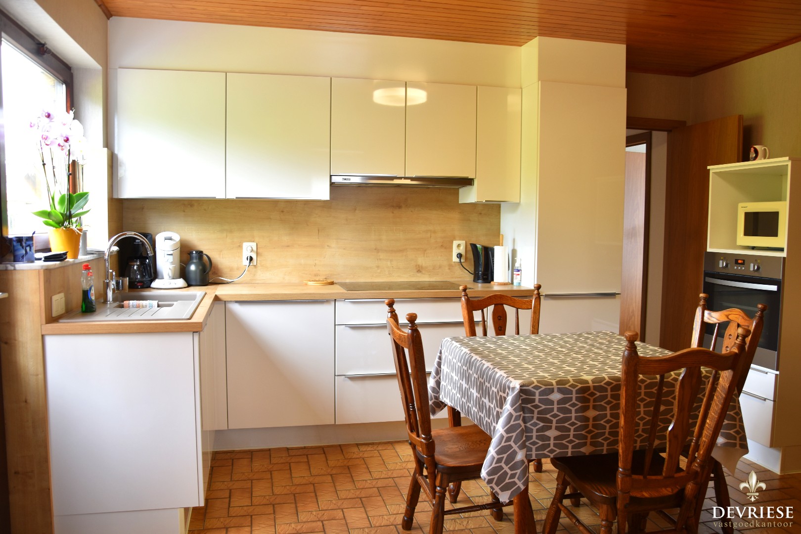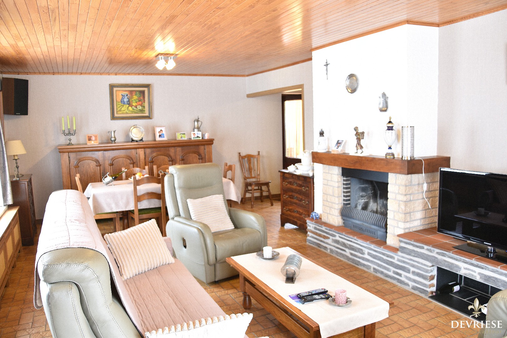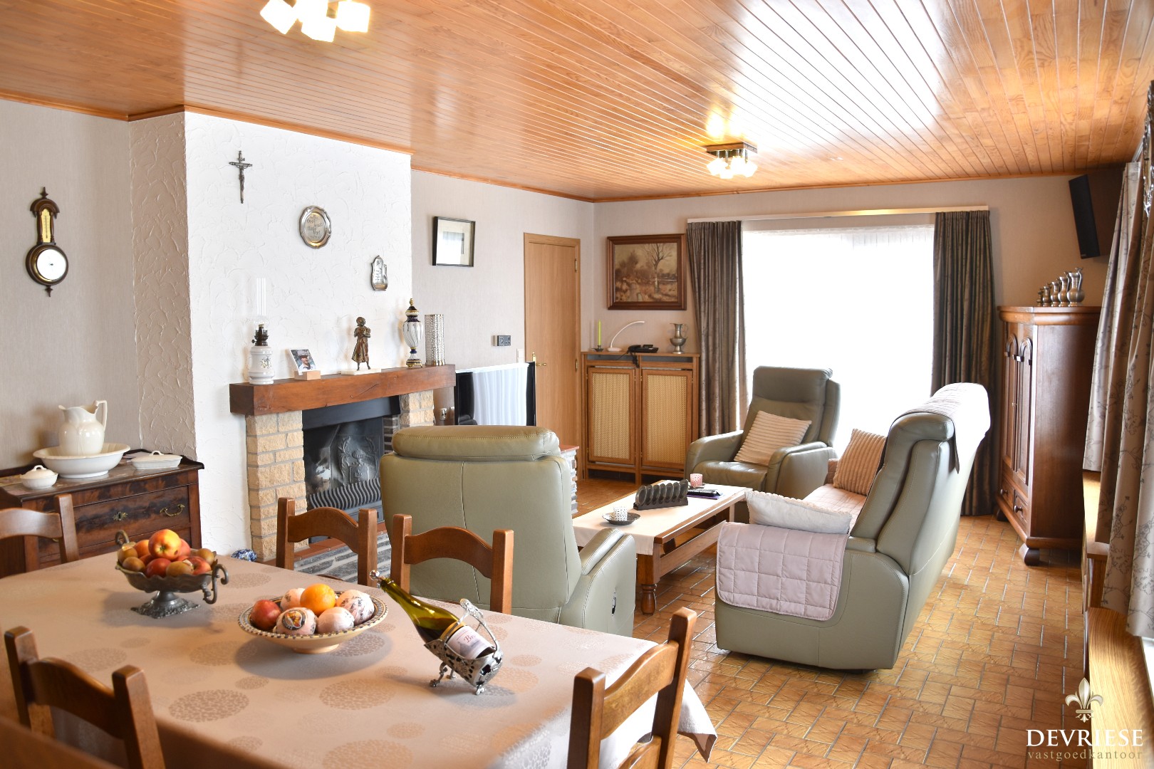 Bij het binnenkomen heeft u de inkomhal met gastentoilet, met daarnaast toegang tot de lichtrijke en gezellige leefruimte. Rondom is deze voorzien van raampartijen. Achteraan is er de ingerichte open leefkeuken die recent vernieuwd werd. De woning beschikt over een extra bergruimte.