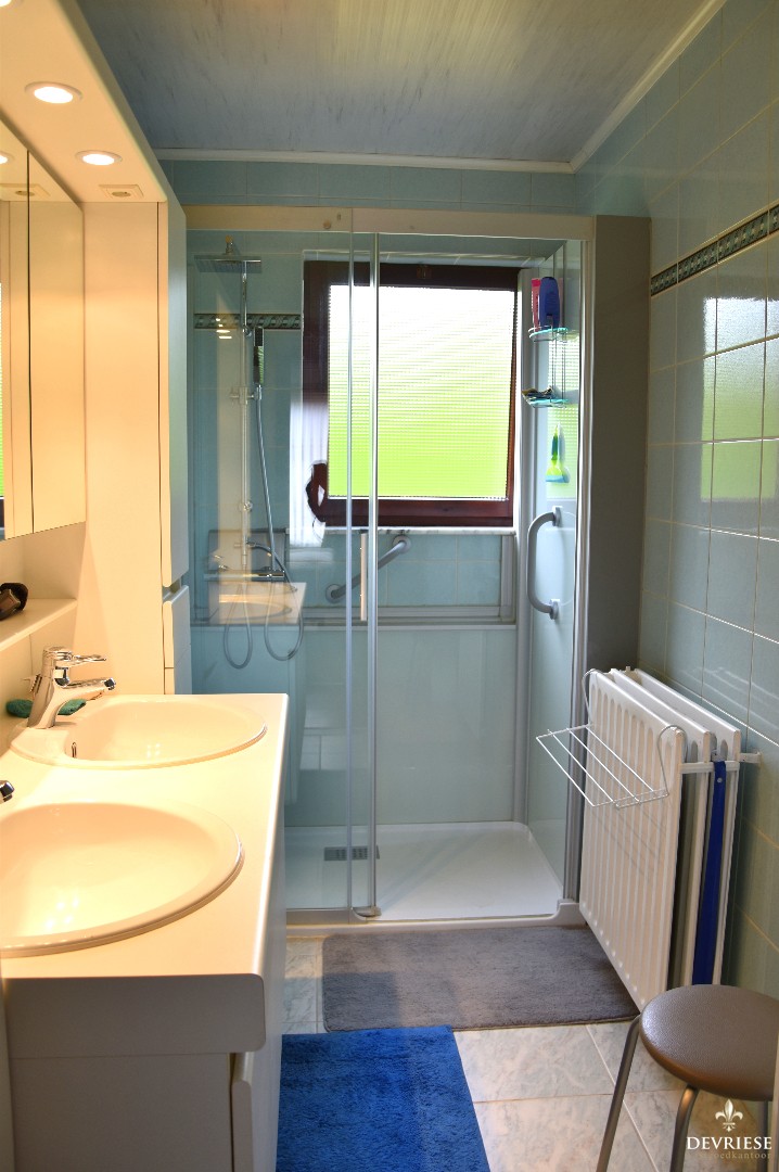 Tevens op het gelijkvloers liggen de 3 volwaardige slaapkamers en de badkamer met inloopdouche en dubbele lavabo.