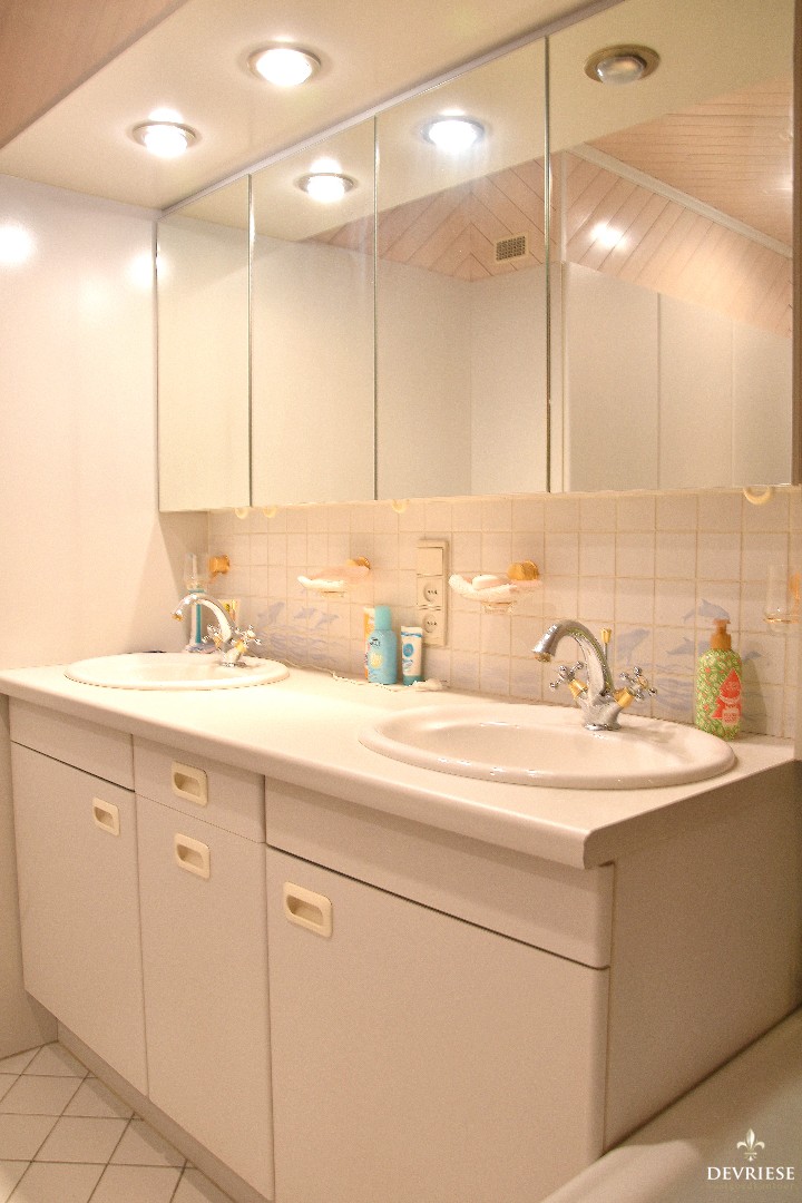 Tevens op het gelijkvloers liggen de 3 volwaardige slaapkamers waarvan 2 voorzien van inbouwkasten en de badkamer met bad en dubbele lavabo. Daarnaast nog een apart gastentoilet. Via de garage is de zolder bereikbaar. Deze werd geïsoleerd en biedt extra bergruimte.