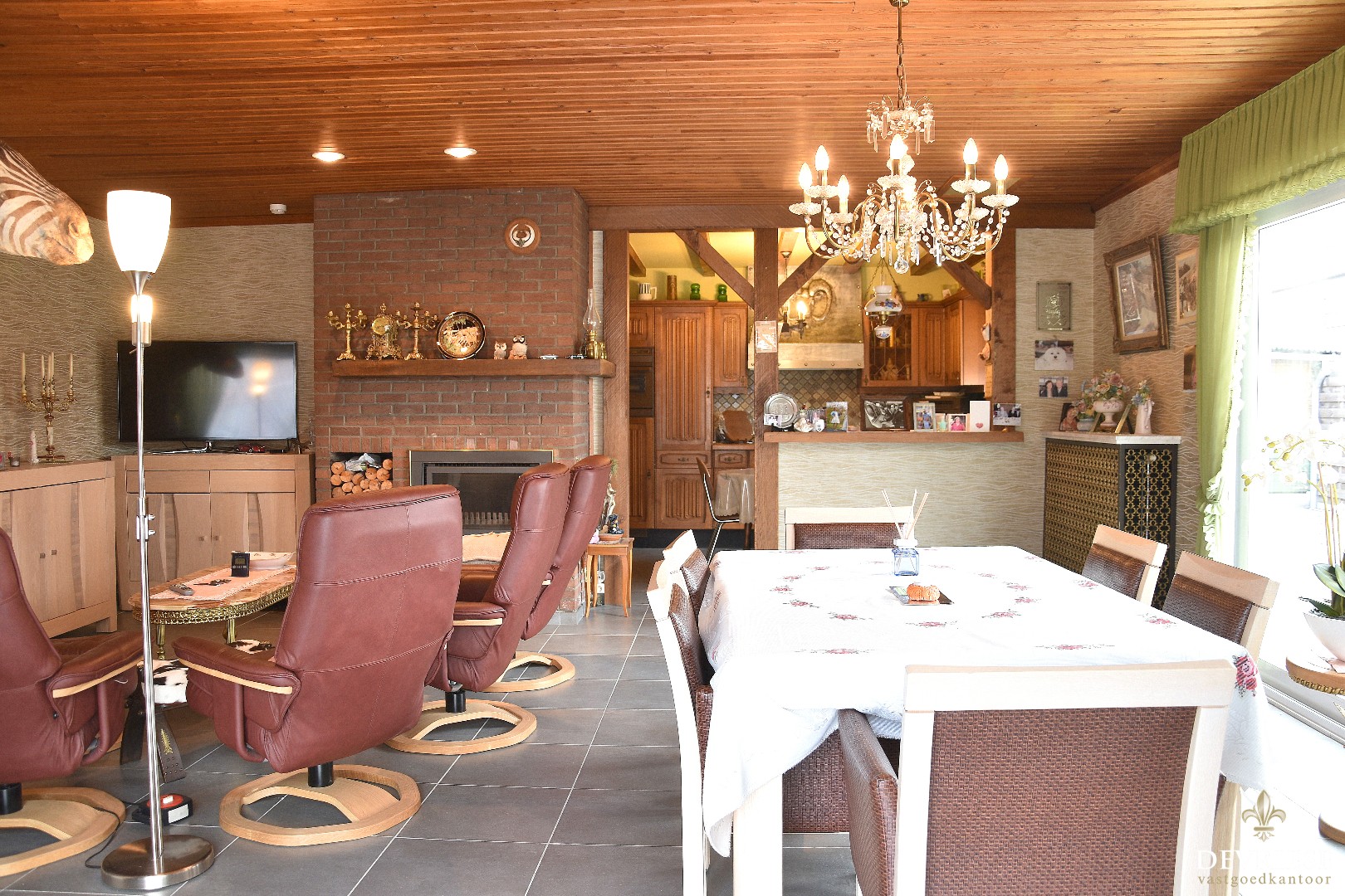 U komt binnen in de inkomhal, voorzien van inbouwkasten, met daarnaast toegang tot de lichtrijke en gezellige leefruimte. Hier heel wat raampartijen voorzien in pvc hoogrendementsbeglazing. Achteraan is er de ingerichte open leefkeuken. De woning beschikt over een extra bergruimte.