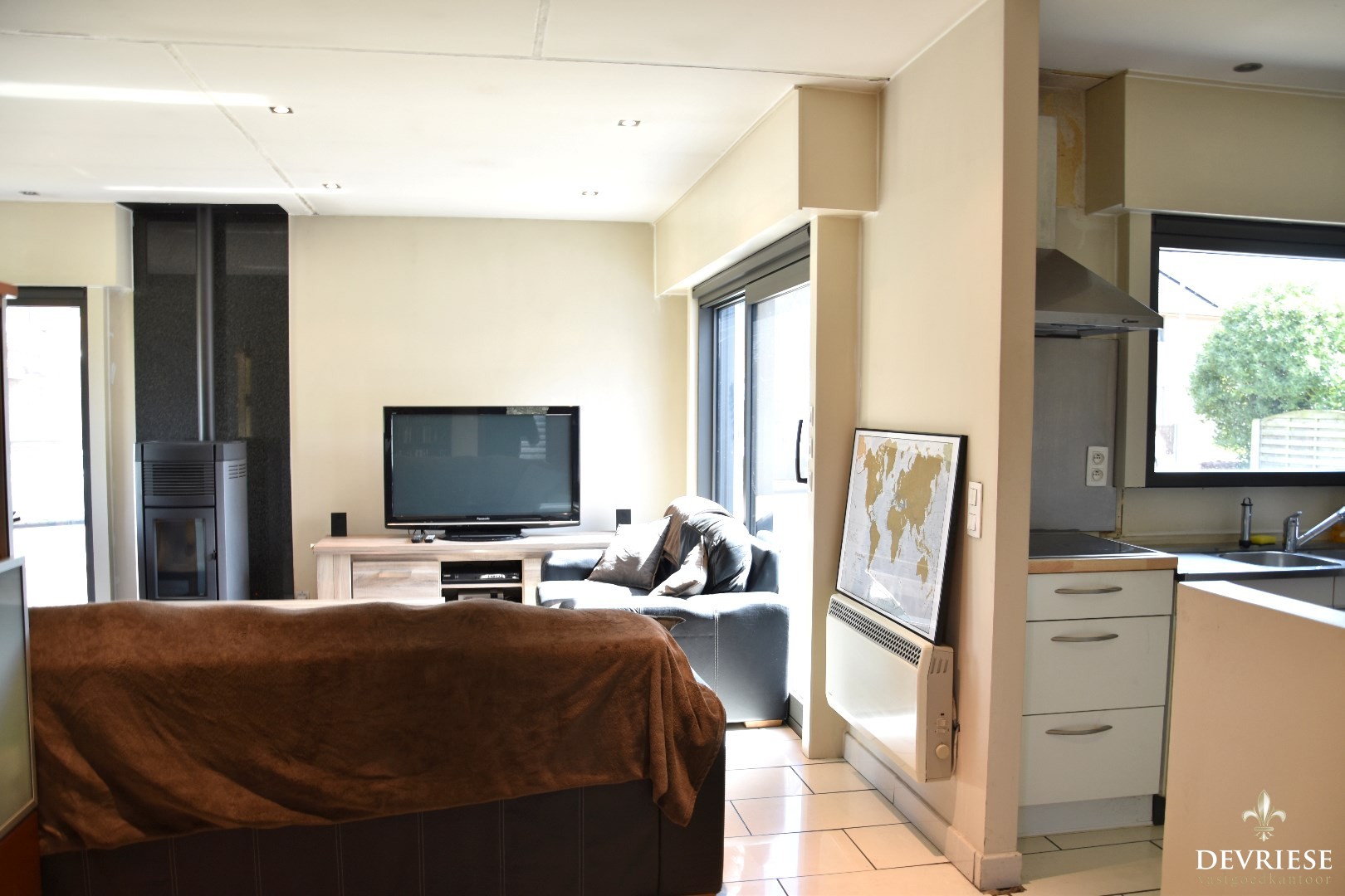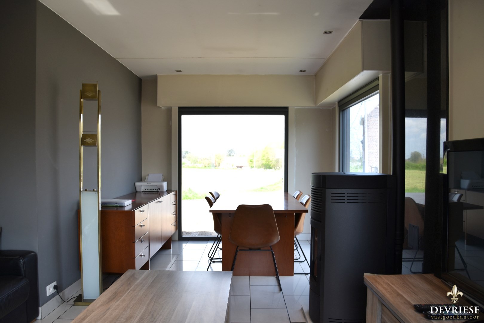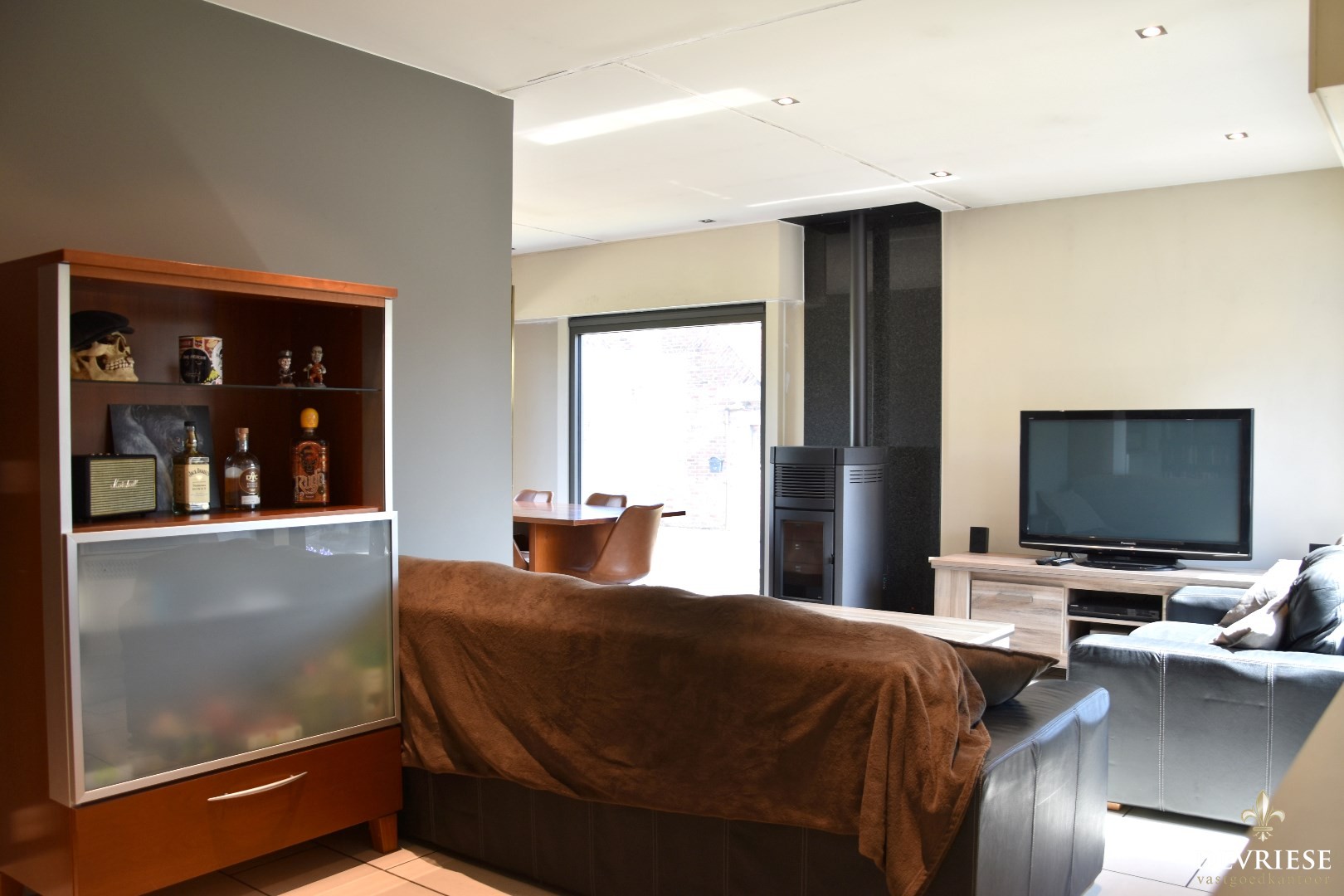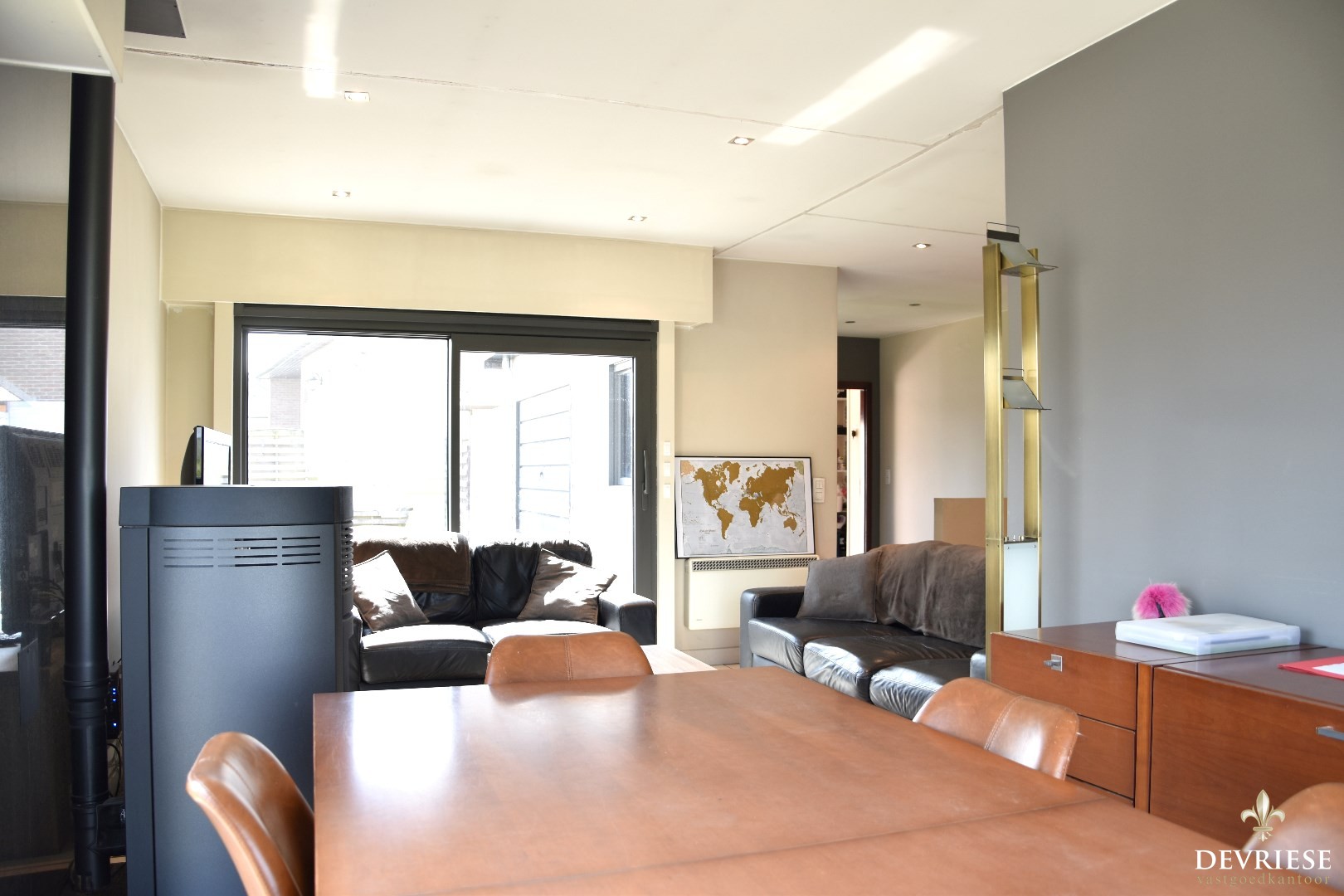 Een keuken voorzien van het nodige comfort, salon met pellet kachel én eetplaats geven vormen aan deze ruimte.