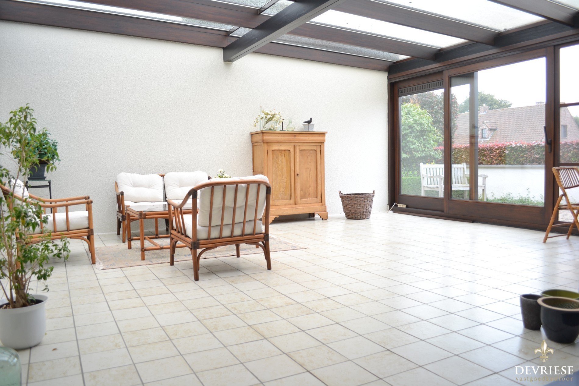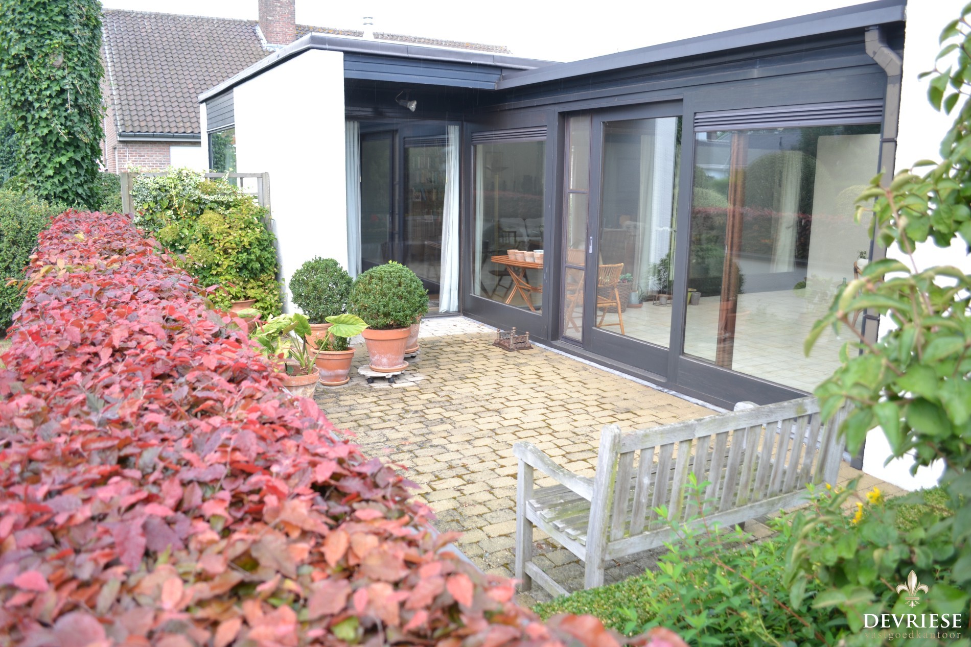 Deze gelijkvloerse woning staat op 1200m² en geeft vooraan heel weinig van zijn geheimen prijs. Na een gezellige ontvangst in de lichtrijke leefruimte die uitgeeft op de veranda en een passage in de ruime keuken ontdek je de verrassende ruimte van deze woning.