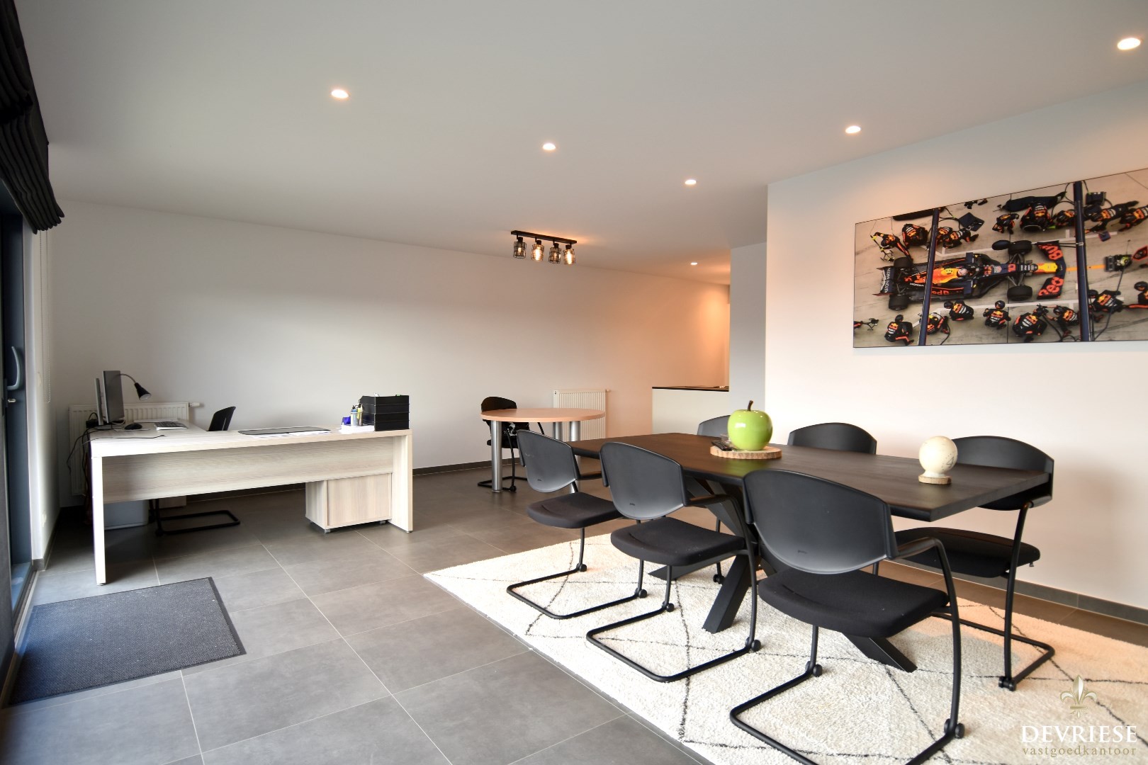 Bij het binnenkomen wordt u verwelkomd in een ruime inkomhal met een apart gastentoilet. De lichtrijke leefruimte, dankzij de grote raampartijen, biedt een warme en uitnodigende sfeer. Aansluitend bevindt zich de open en volledig geïnstalleerde keuken, uitgerust met hoogwaardige toestellen, wat het koken tot een waar genot maakt.