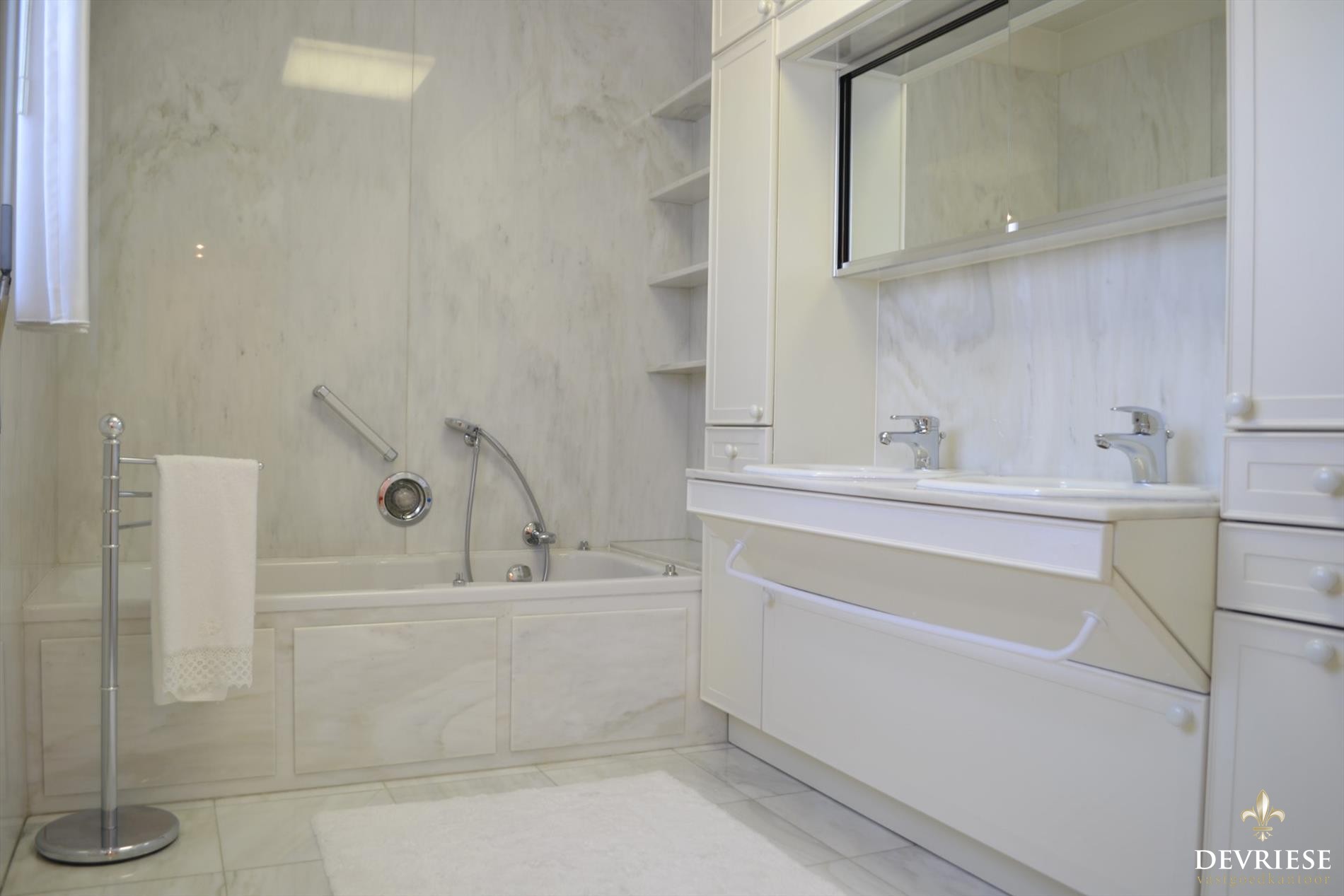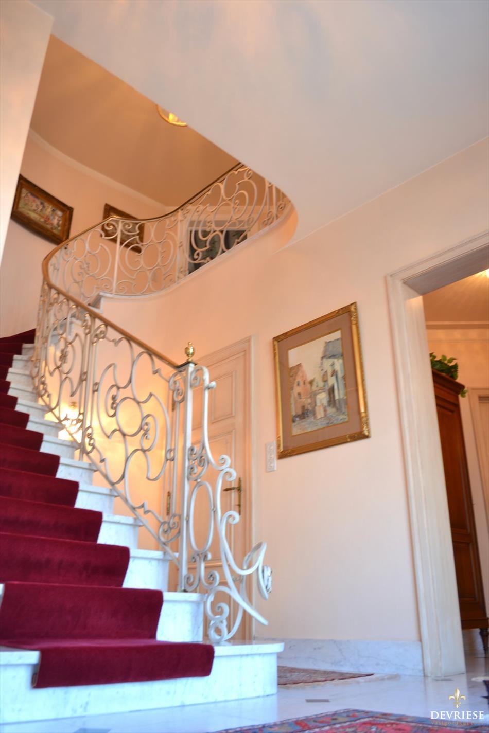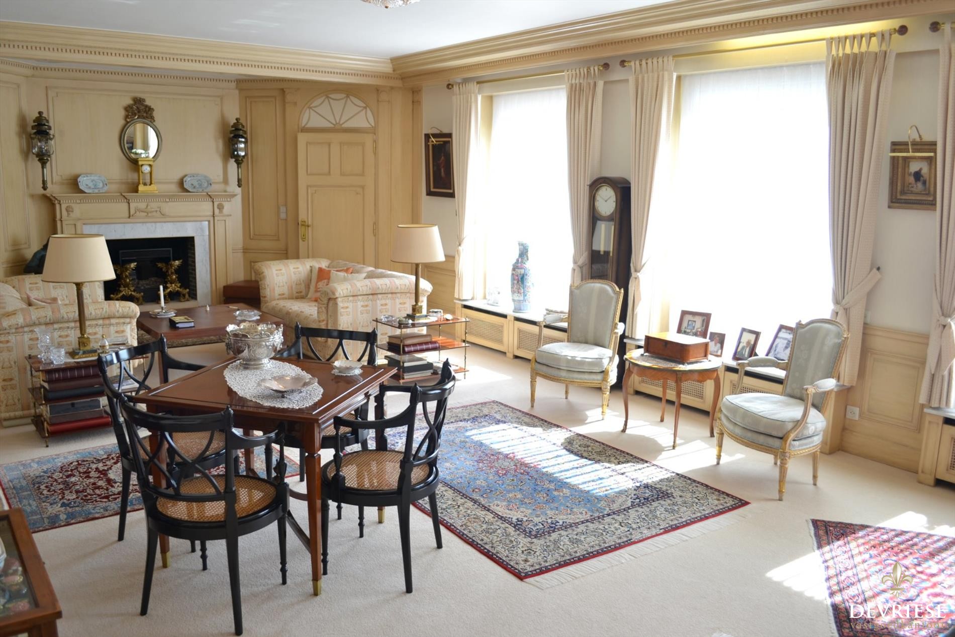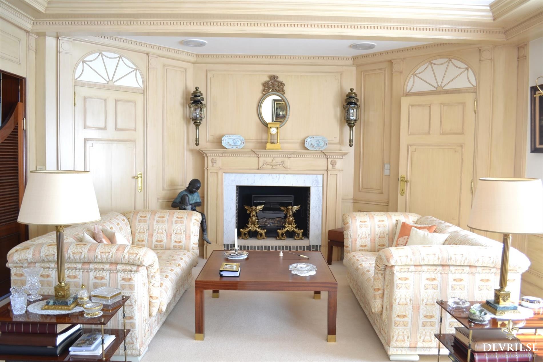 Binnenkomen doet u in stijl in de ruime en sfeervolle hal voorzien van apart gastentoilet. De ruime leefruimte die baadt in het zonlicht beschikt over een aparte bar en een open haardvuur. Van hieruit is er toegang tot de eetkamer en de tijdloze keuken. Op het gelijkvloers de master bedroom met aanliggende dressingruimte en eigen badkamer met bad en toilet.