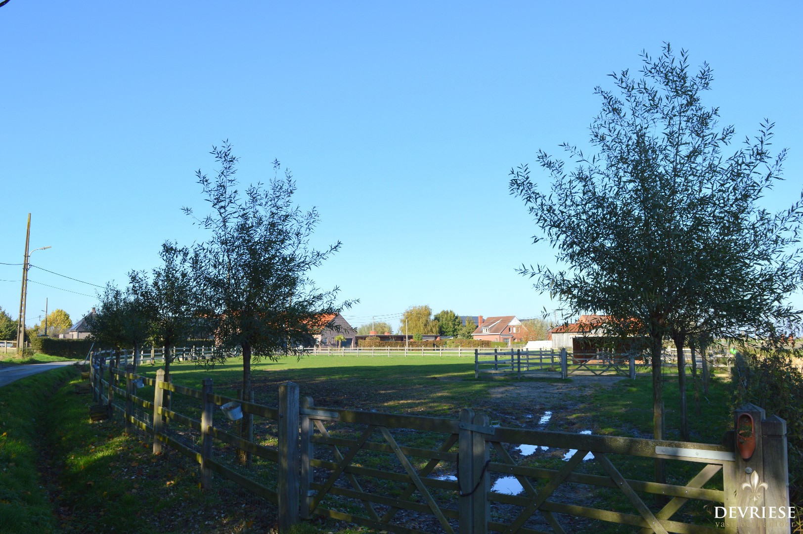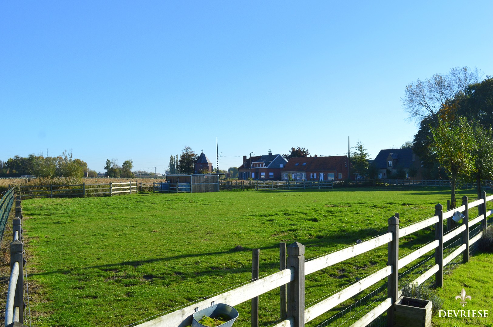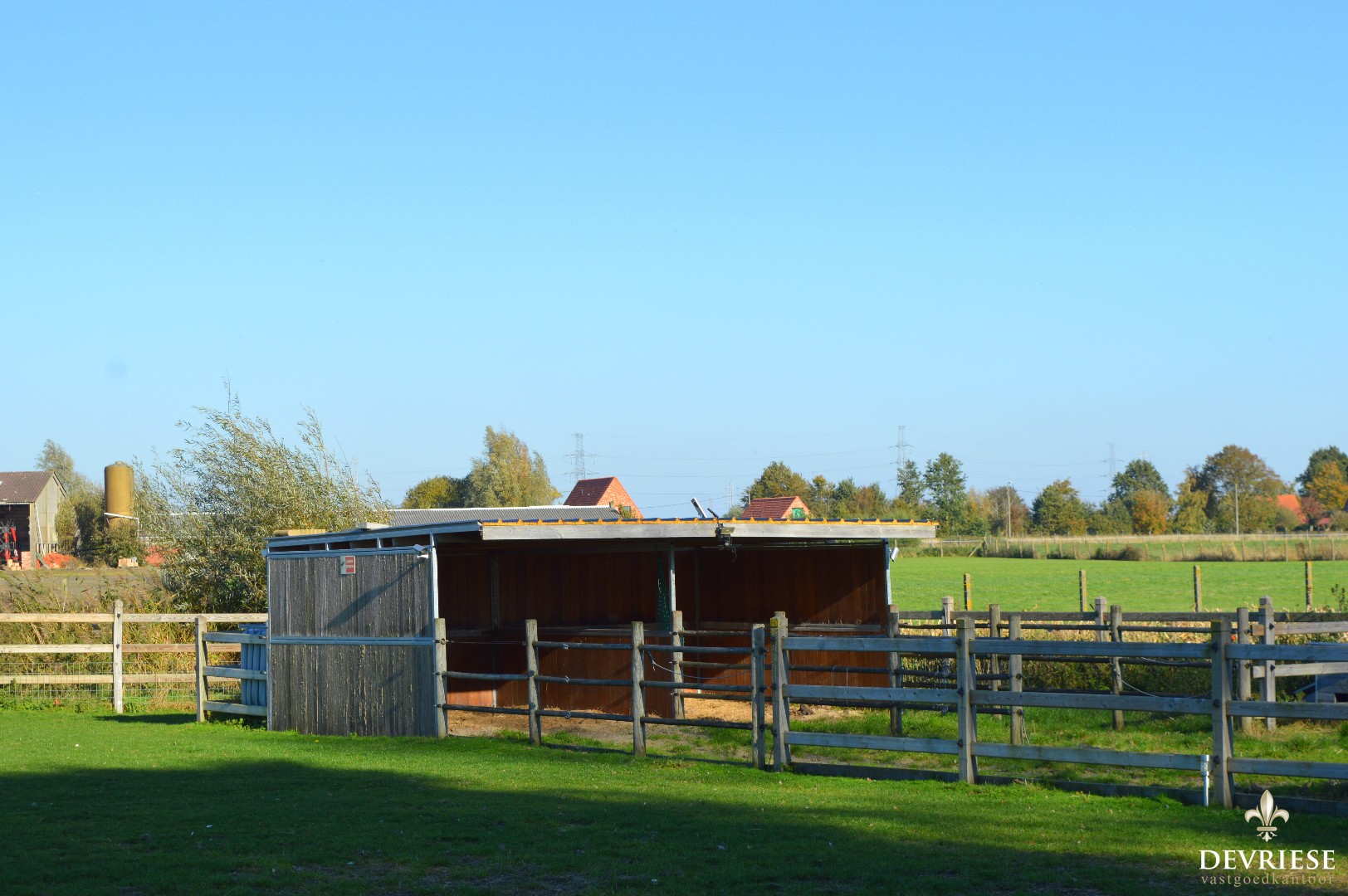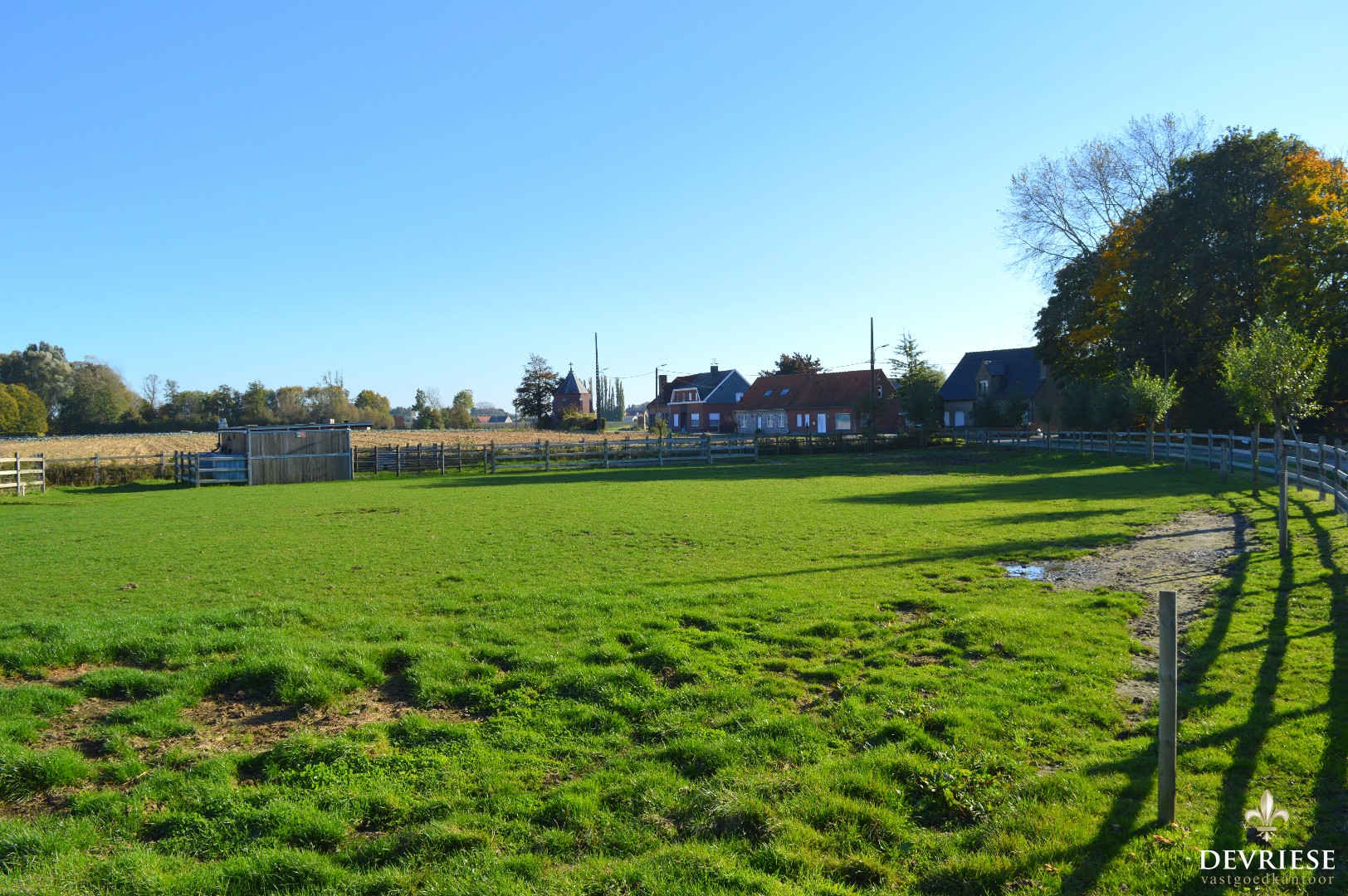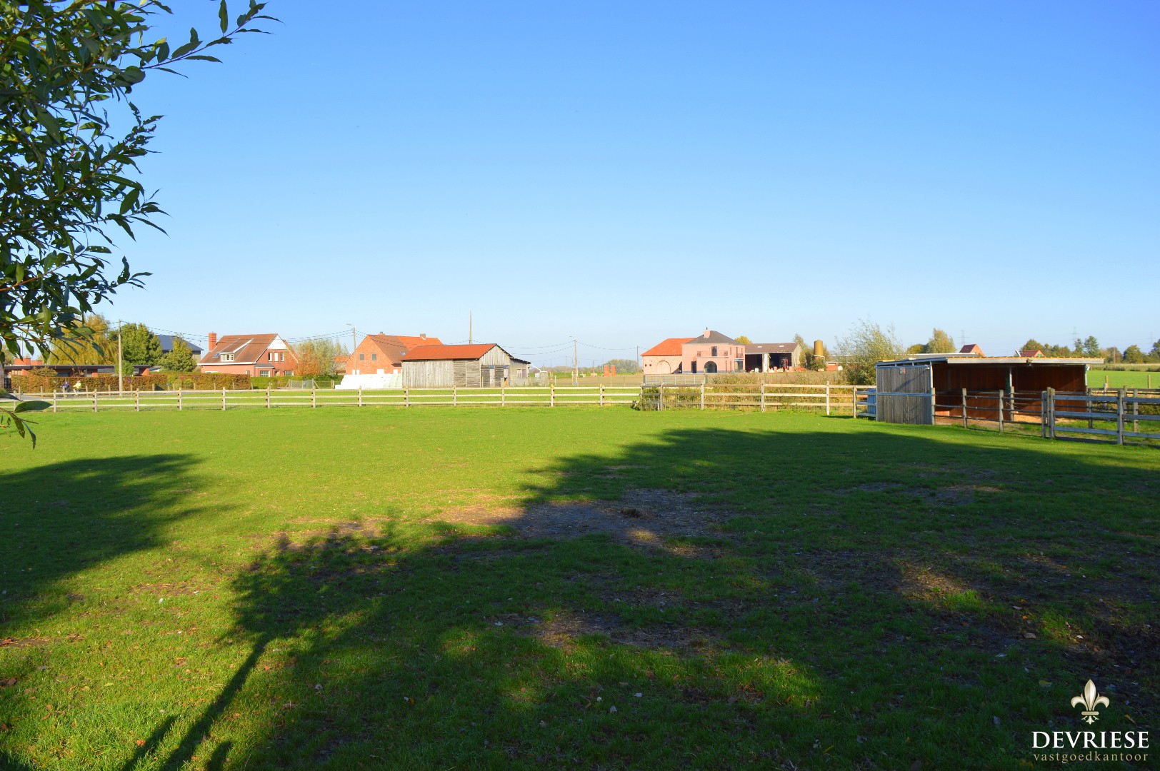 Weide van 3225m², volledig en perfect omheind en voorzien van twee open paardenboxen. o.a. Ideaal voor paardenliefhebbers !