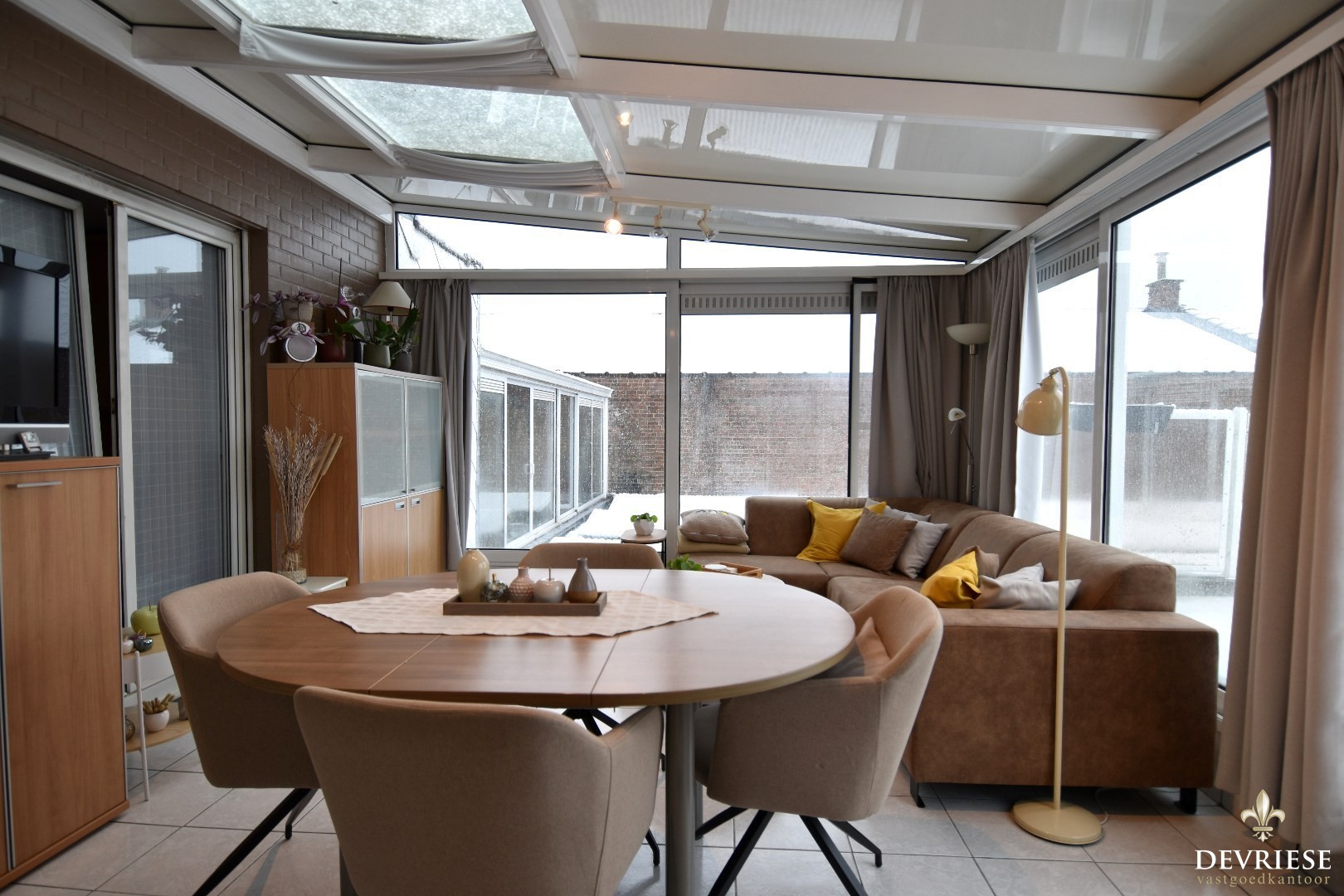 De gezellige veranda biedt een mooi uitzicht over Kuurne en sluit aan op een ruim terras met tuinberging.