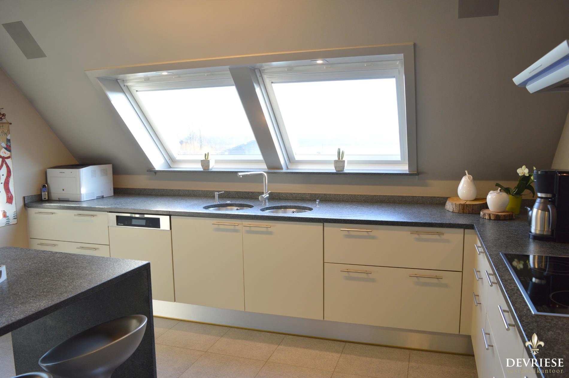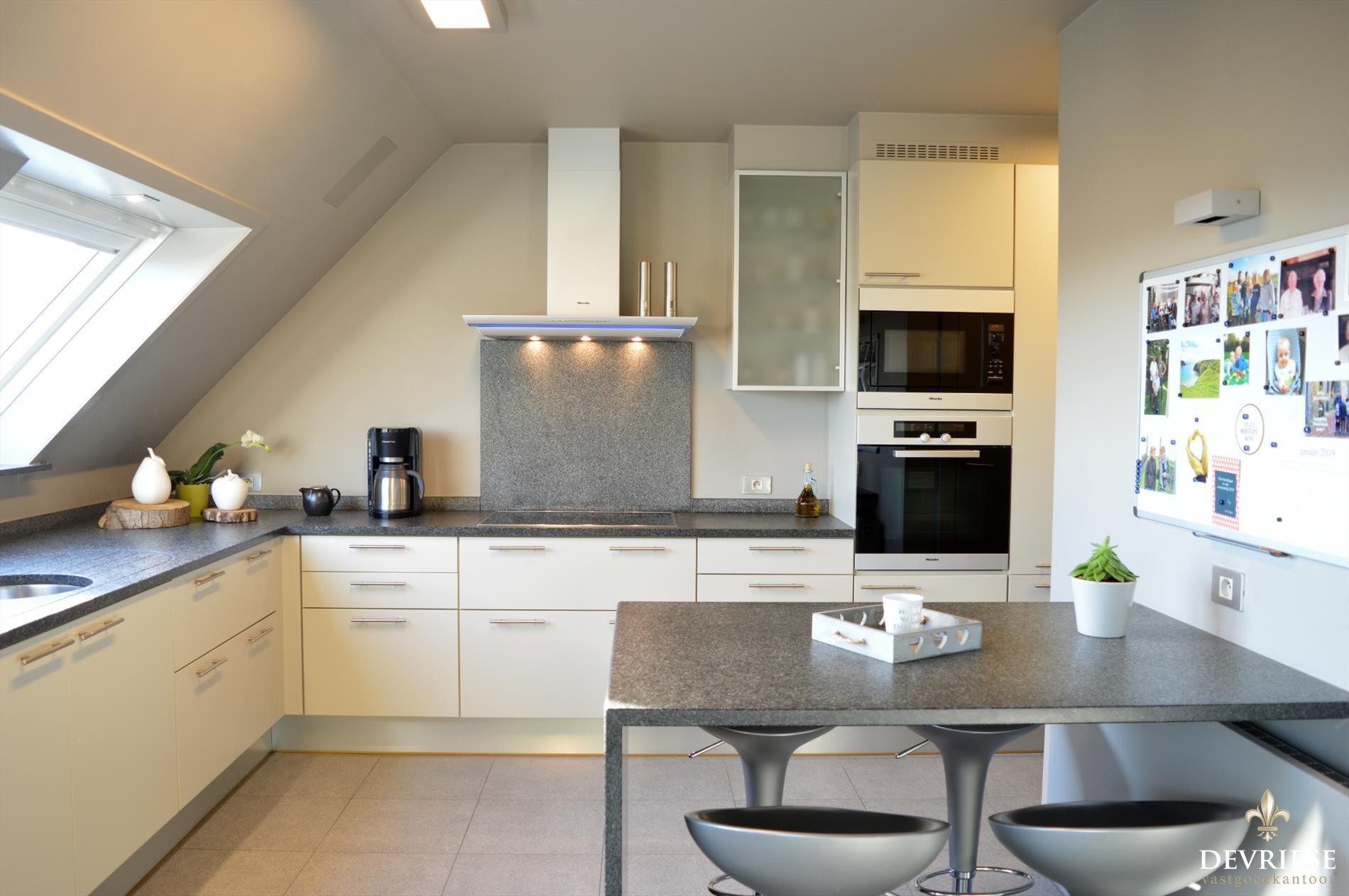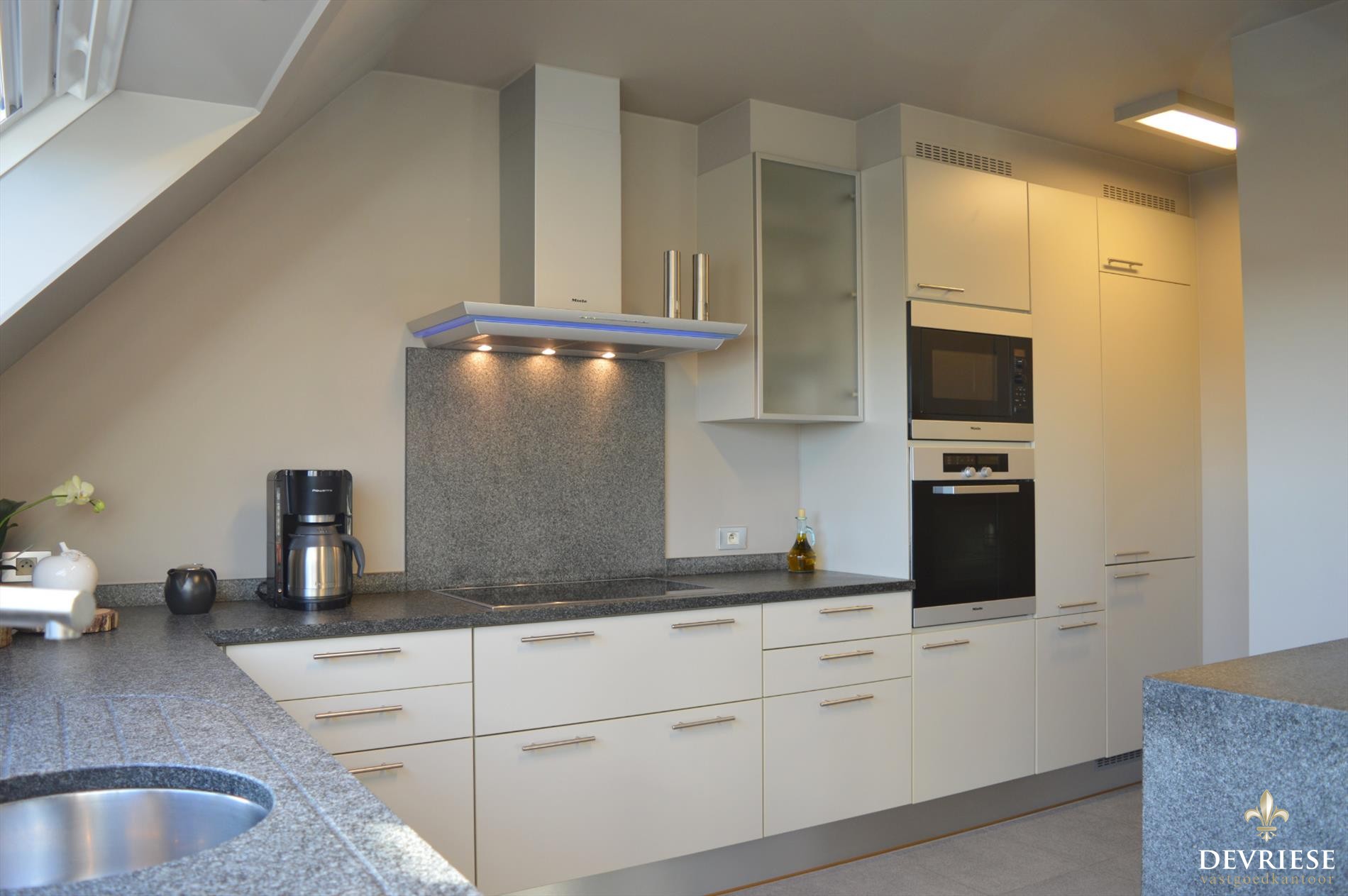 De zéér ruime keuken is voorzien van een granieten werkblad, talrijke praktische kasten en kwaliteitsvolle toestellen (Miele). Aansluitend zowel een aparte voedselberging als een aparte technische berging.