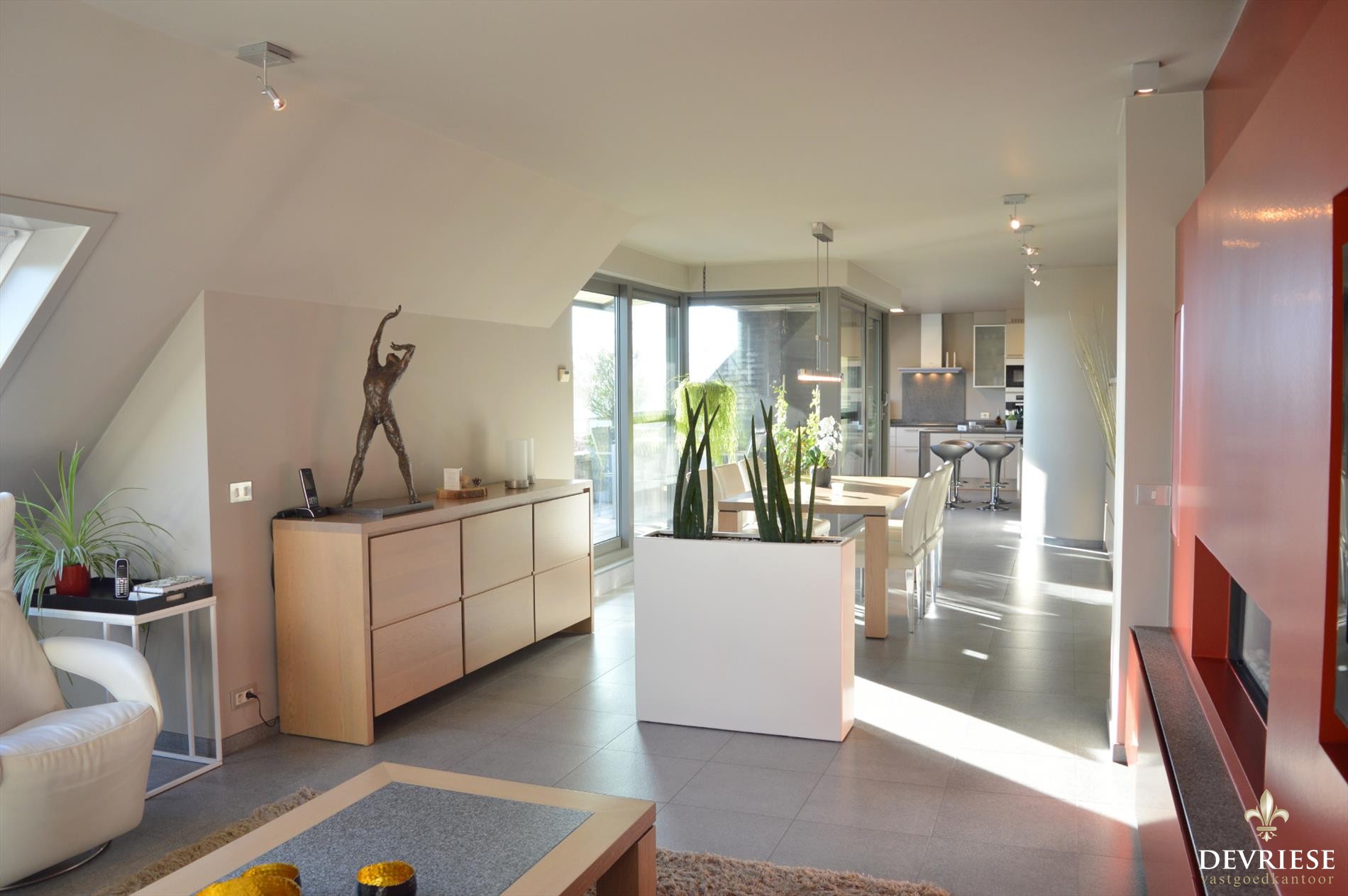 De privé-lift brengt ons rechtstreeks naar deze smaakvol ingerichte penthouse van 134m².
