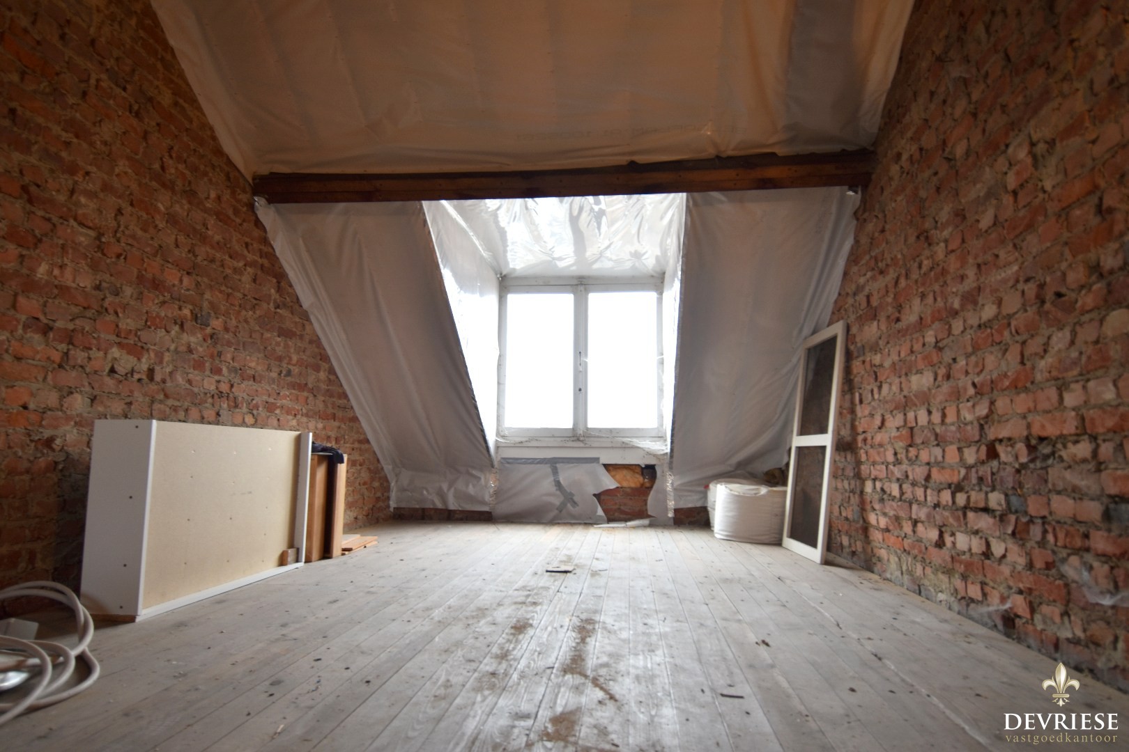De zolderverdieping, bereikbaar via een vaste trap, beschikt over voldoende ... ruimte (26m²) tot inrichten 2 extra kamers.