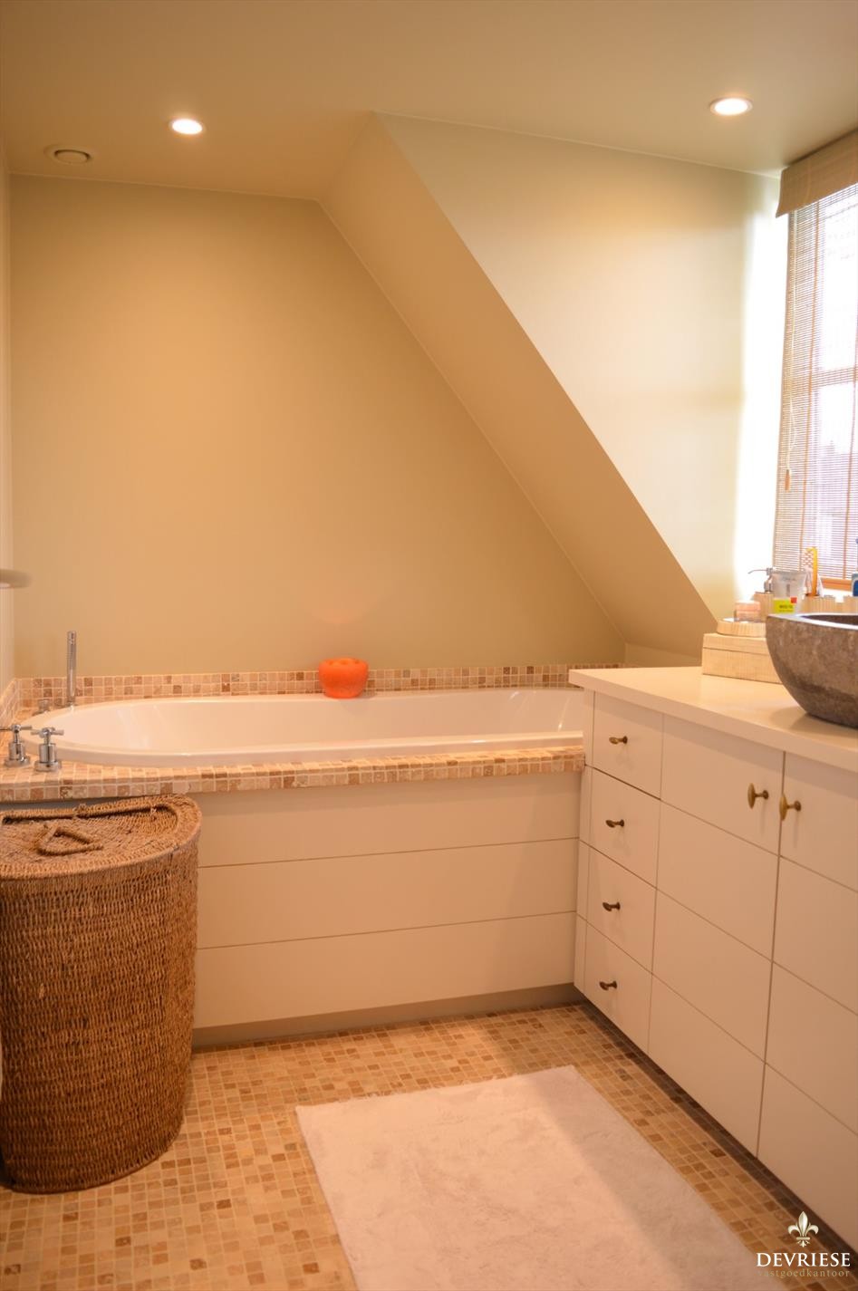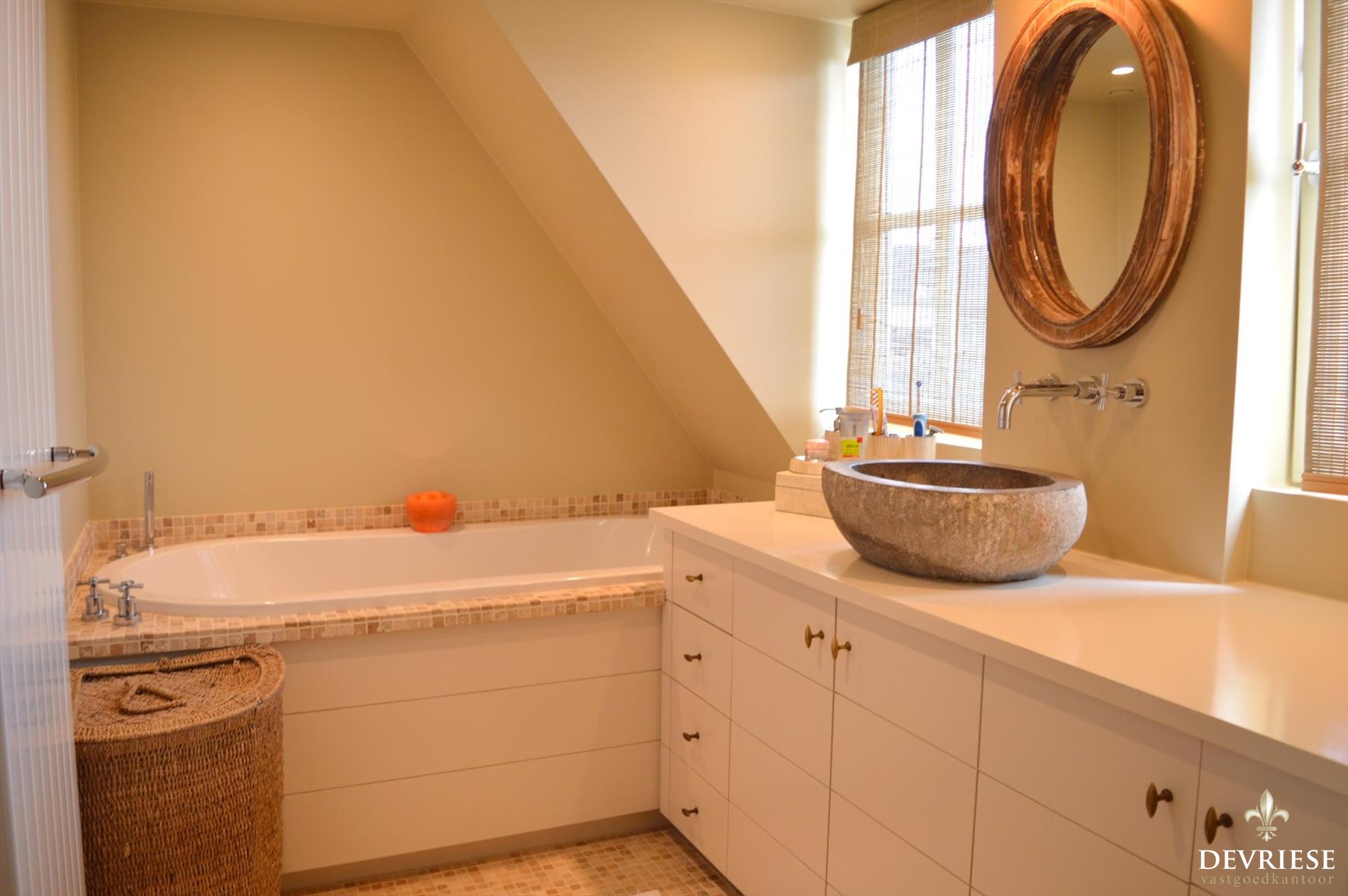 Op de bovenverdieping zijn er 3 ruime slaapkamers waarvan 1 beschikt over een eigen douche, de badkamer uitgevoerd in kwalitatieve materialen met een bad en lavabo. Tevens is er een aparte douchekamer in dezelfde mozaïek uitvoering alsook een ... toilet.