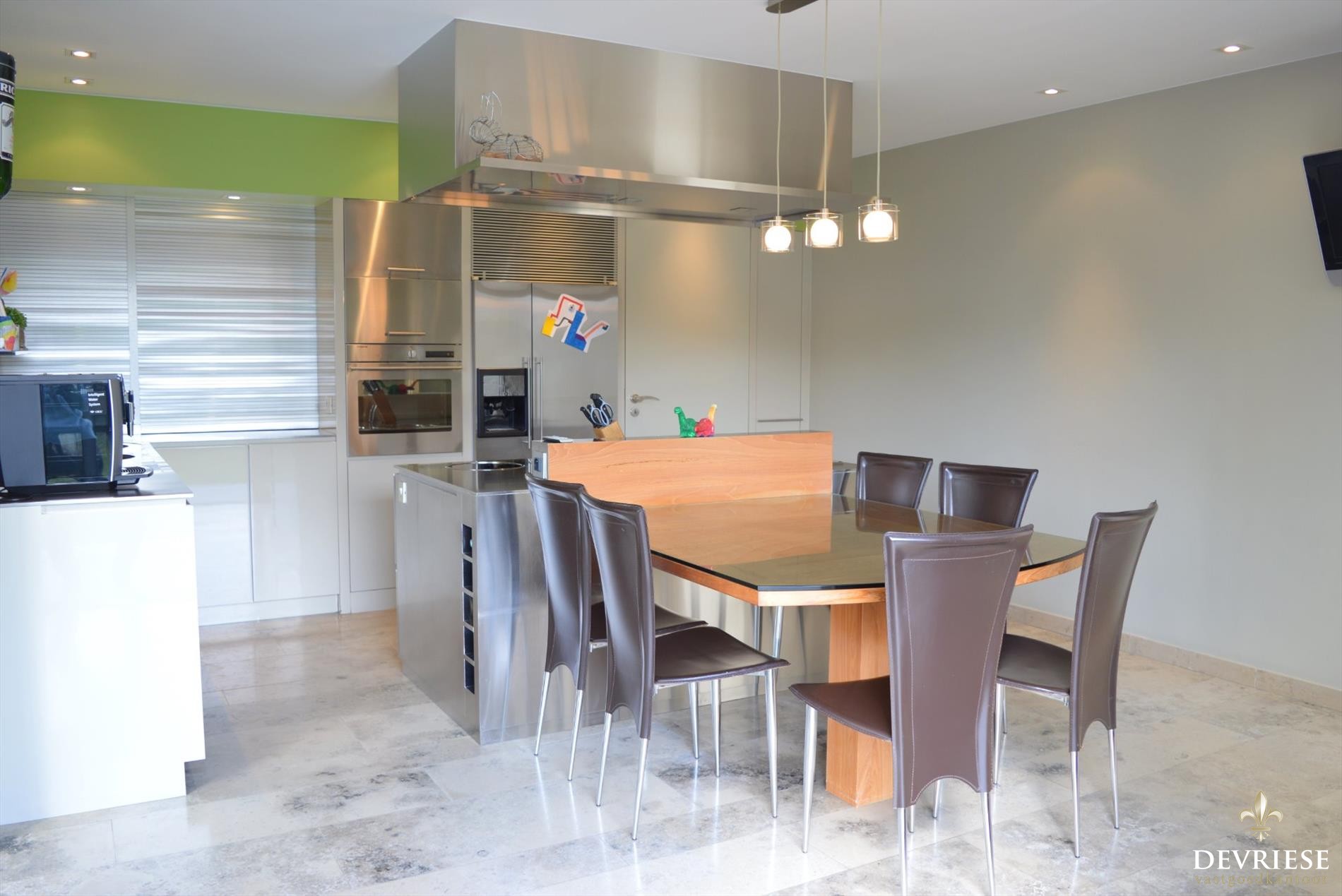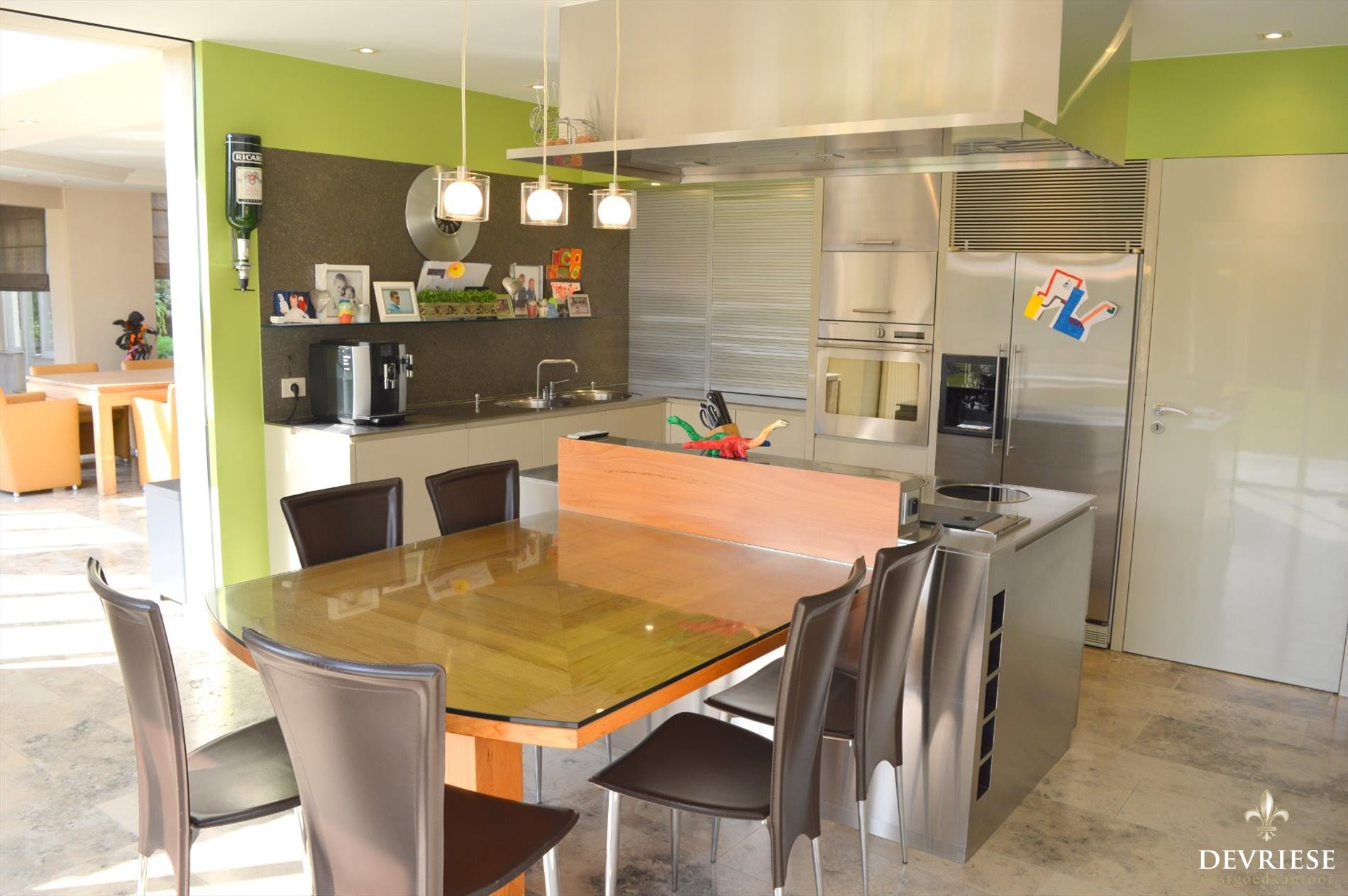 De woning onderging sinds 2001 heel wat vernieuwingen en staat in onberispelijke staat. De prachtige ruime inkomhal met gastentoilet, aansluitend de enorme leefruimte die een prachtig zicht heeft over de uitgestrekte tuin en aansluitend een cosy eet/aperitief hoek. Daarnaast de ingerichte keuken in hoogwaardige materialen en ook van hier een top zicht op de tuin.