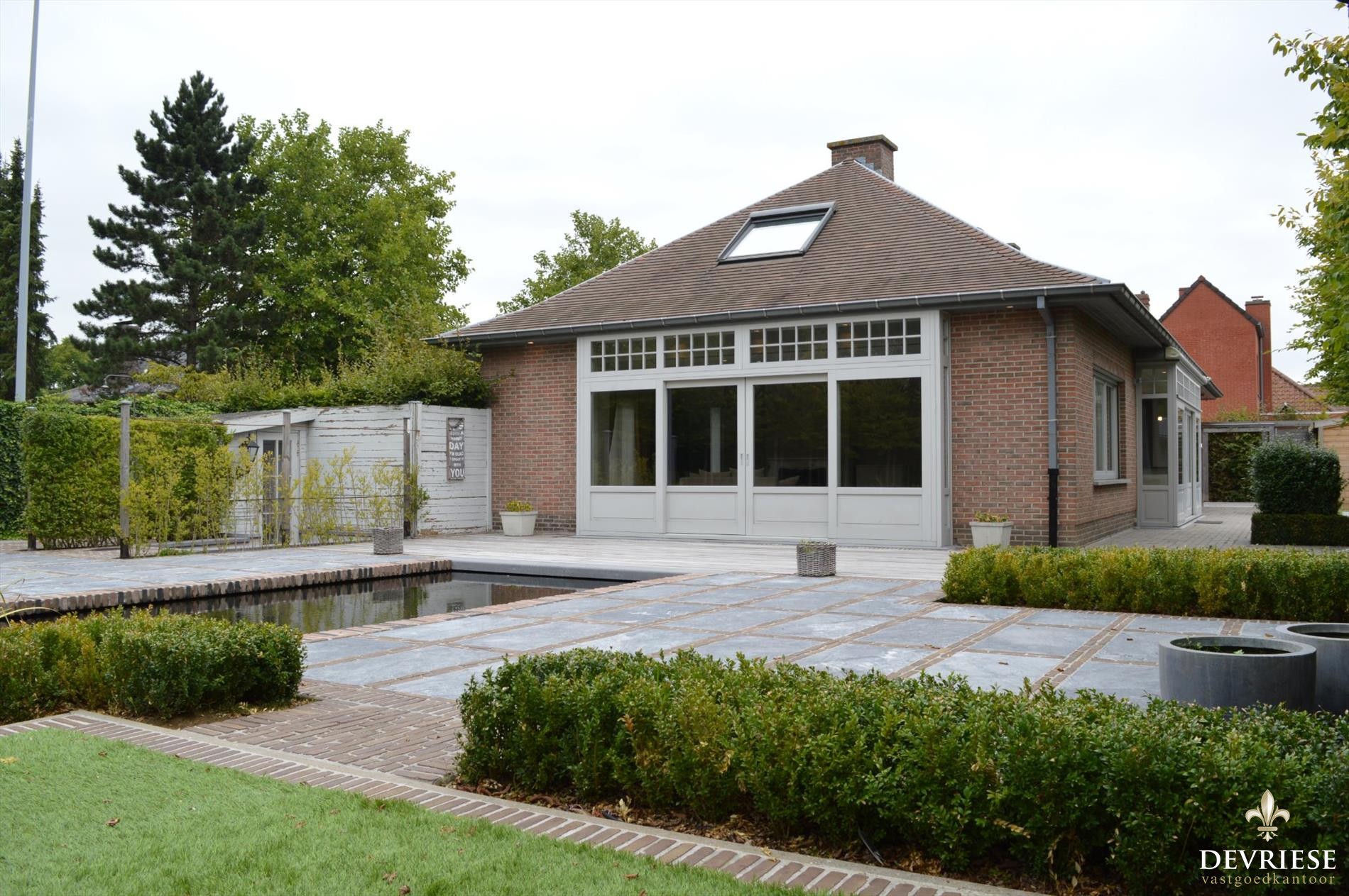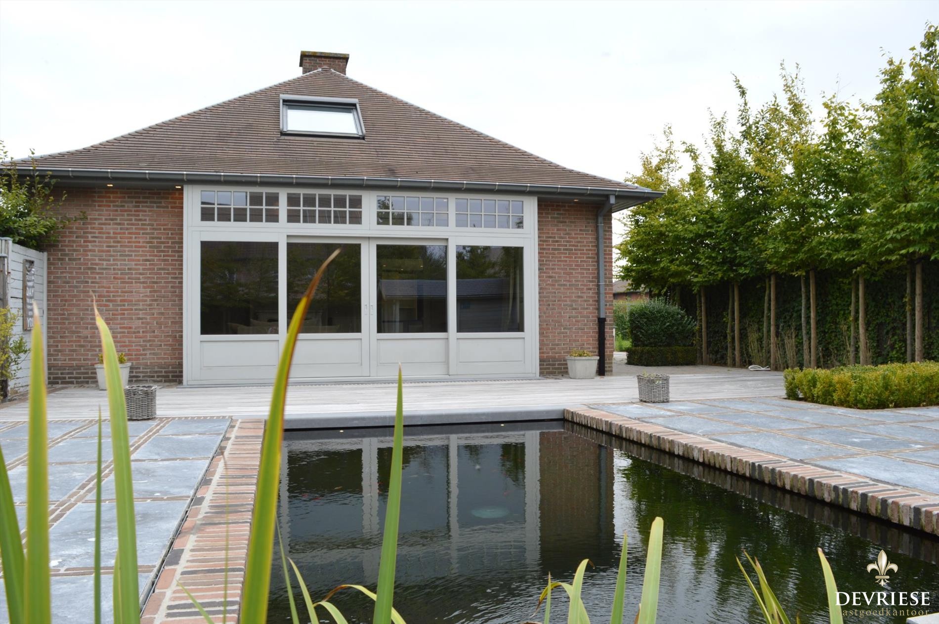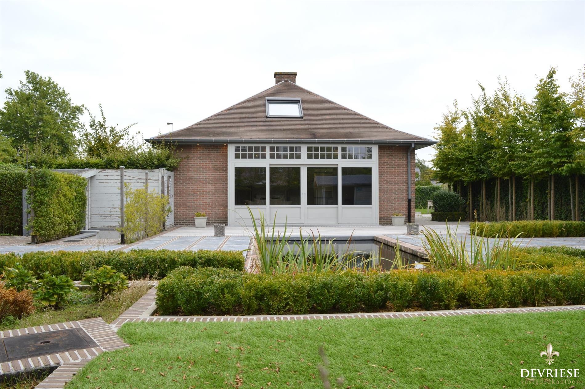 De tuin rondom de woning werd met oog voor detail aangelegd en is zeer gemakkelijk te onderhoud. Daarbij is het grote terras en de zwemvijver het paradepaardje en schitterend om er zonnige uren te vertoeven.