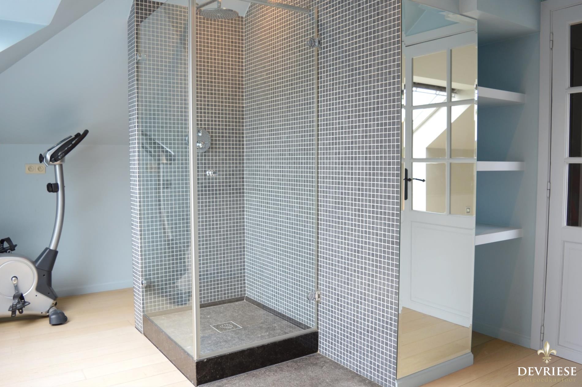 Op het gelijkvloers zijn reeds 2 slaapkamers waarvan er eentje rechtstreeks toegankelijk is vanuit de inkomhal. Dit geeft mogelijkheden als kleine praktijkruimte of bureauruimte voor vrij of zelfstandig beroep. Bij de hoofdslaapkamer is er voldoende ruimte voor plaatsing van een dressing en aansluitend vinden we er de eerste badkamer met bad, wastafel en inloop ... douche.