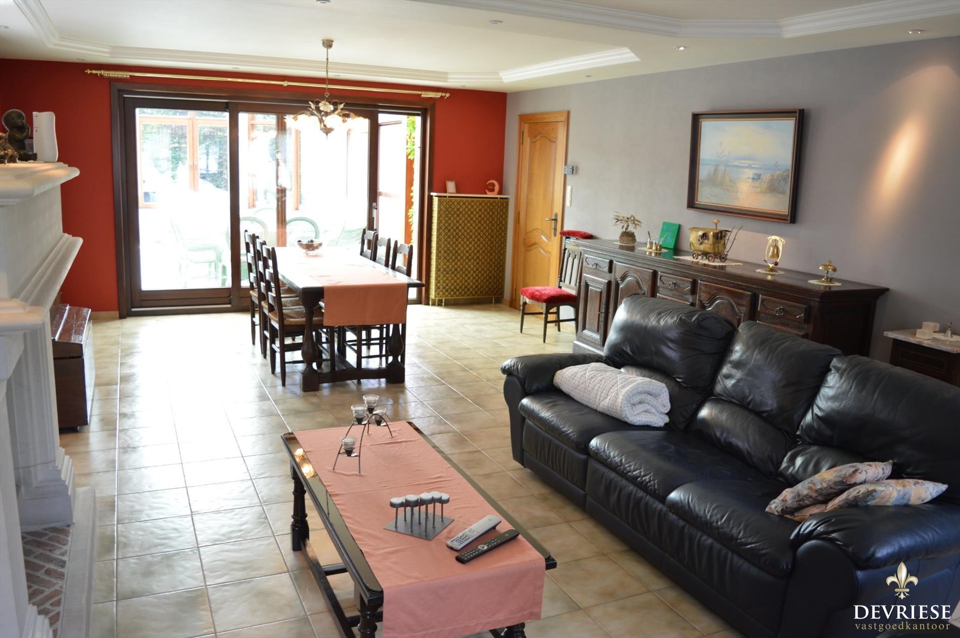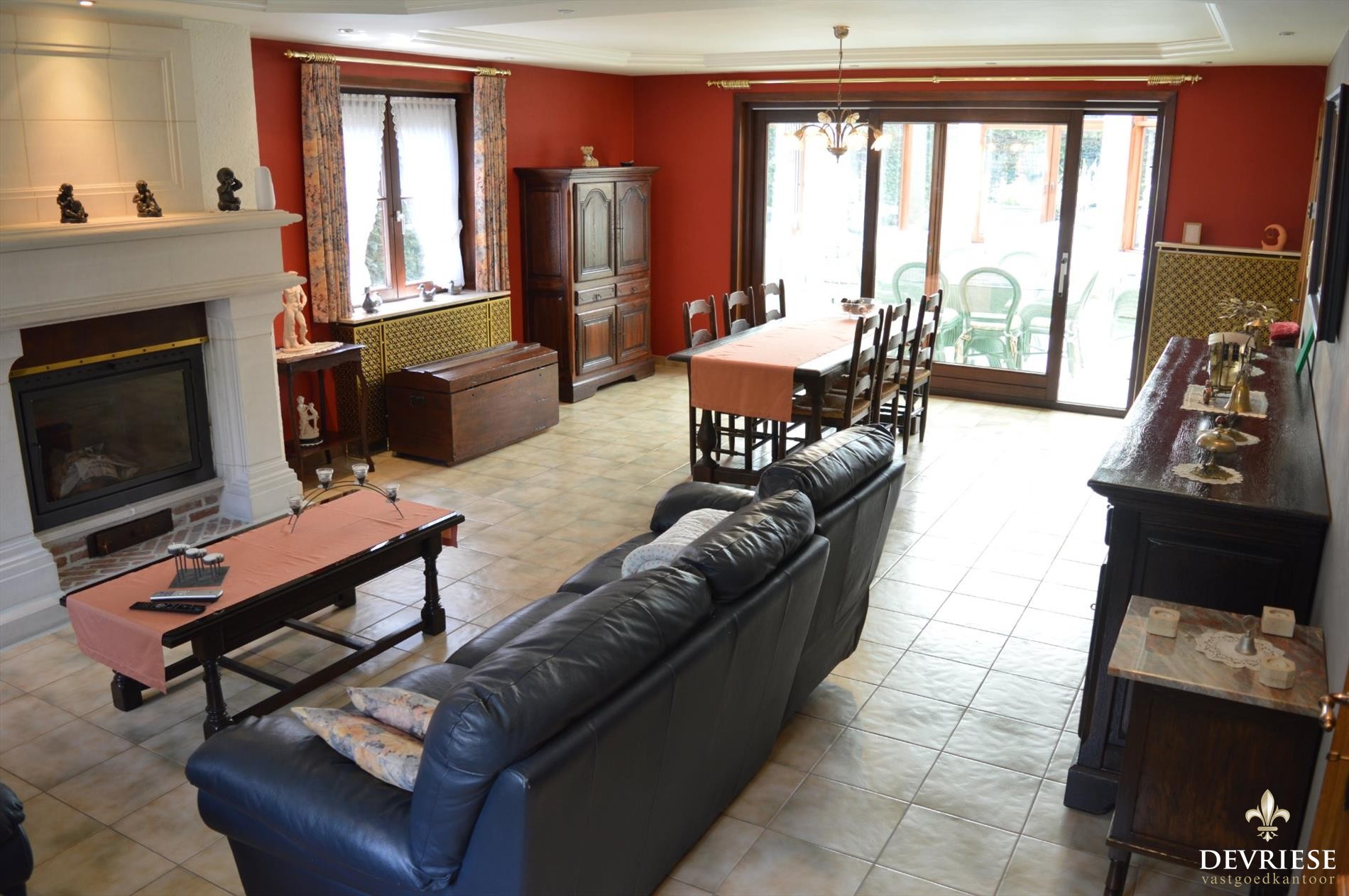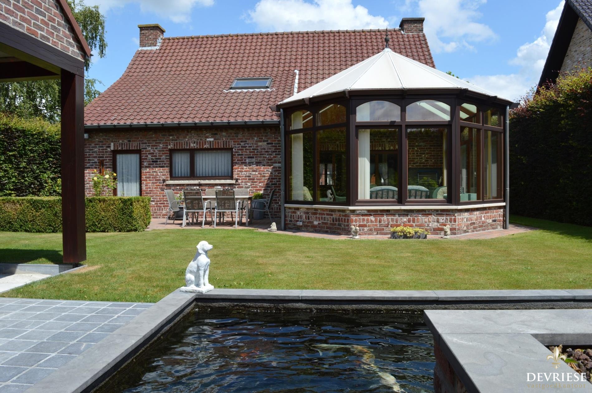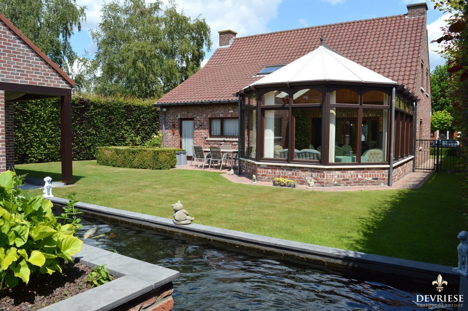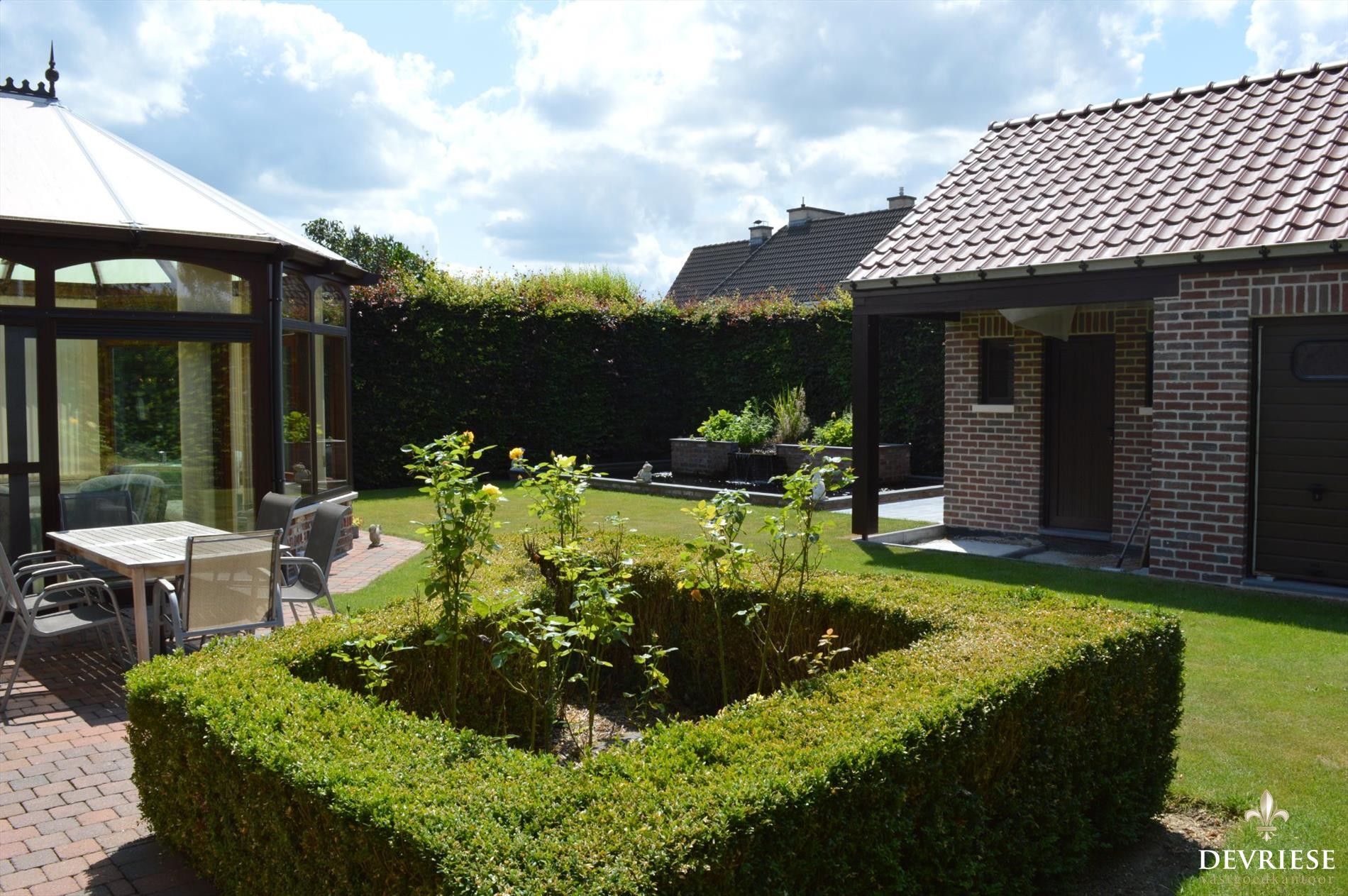 De veranda die is aangebouwd draagt bij aan het grote bewoonbare oppervlak van deze woning en het is er in elk jaargetijde zeer fijn vertoeven gezien de enorme lichtinval en zicht op de fraai aangelegde tuin. Deze tuin ligt er zowel voor als achteraan onberispelijk bij en is uitermate verzorgd.
