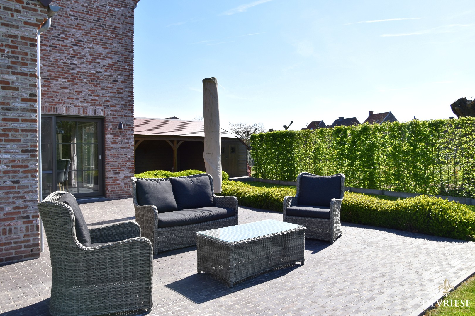 Subliem onderhouden en perfect afgewerkte tuin, zuidwest-georiënteerd en met een éxtra hoog relax-gehalte.