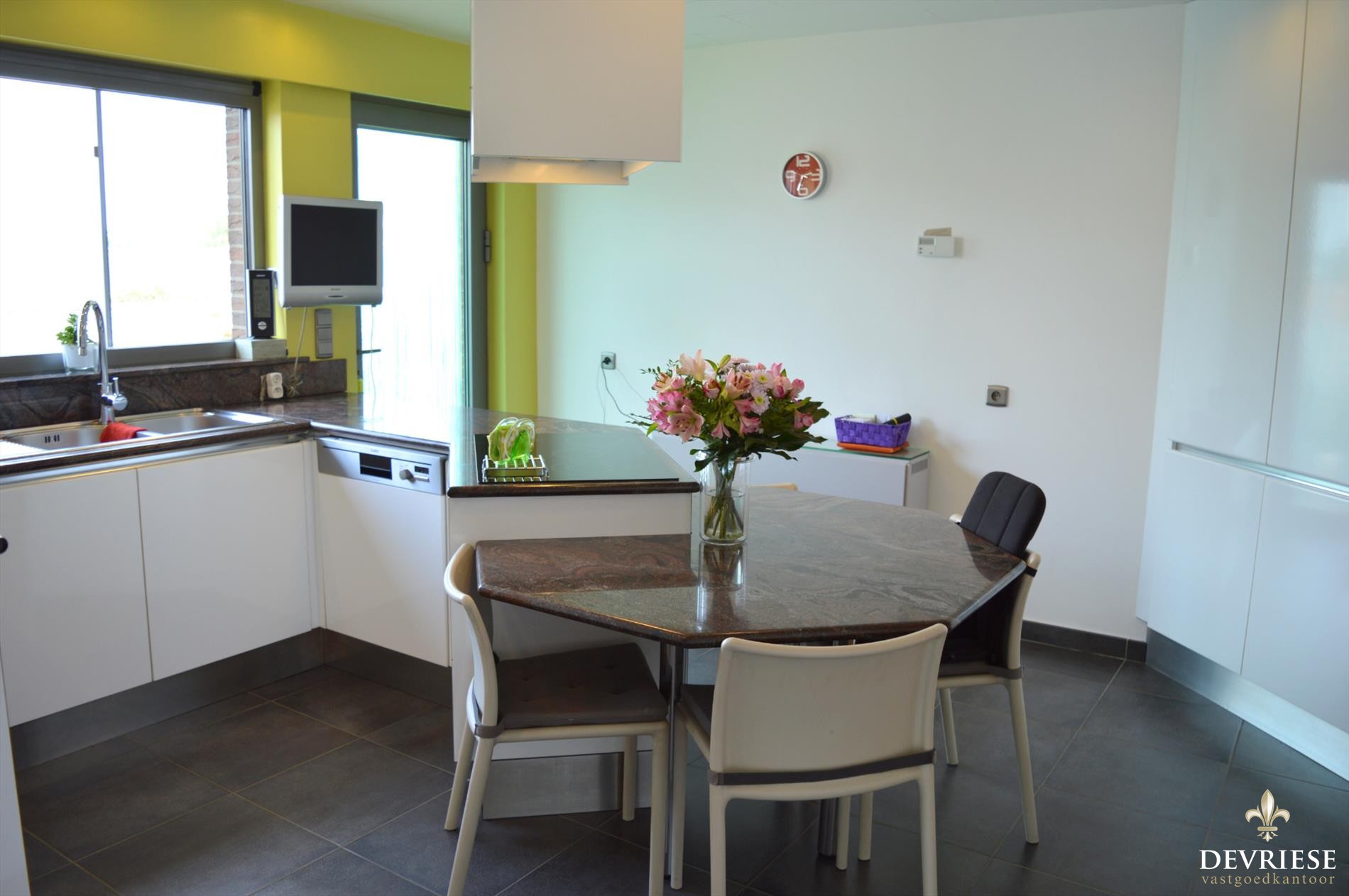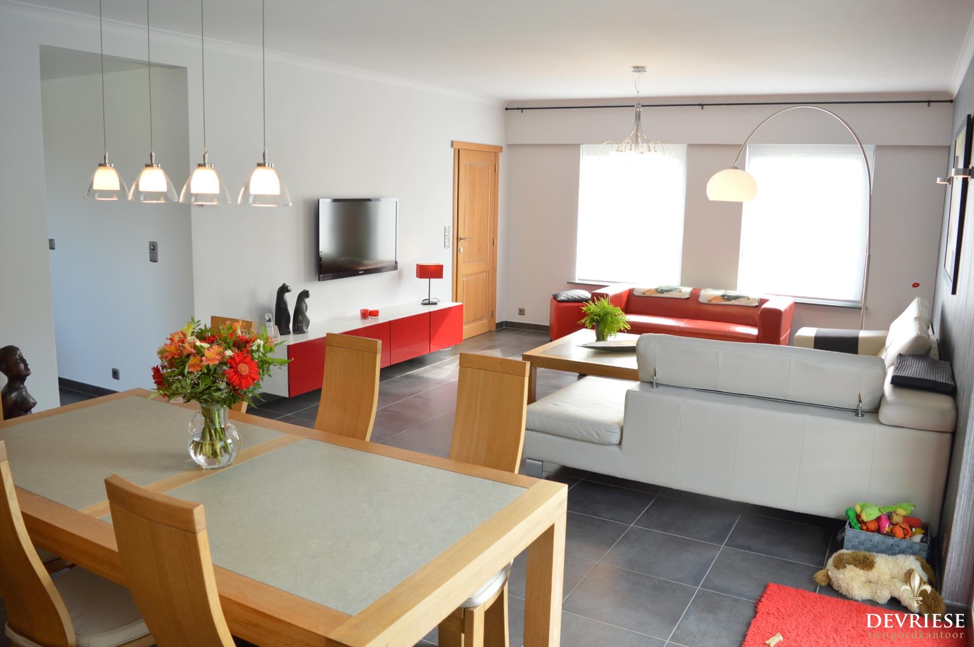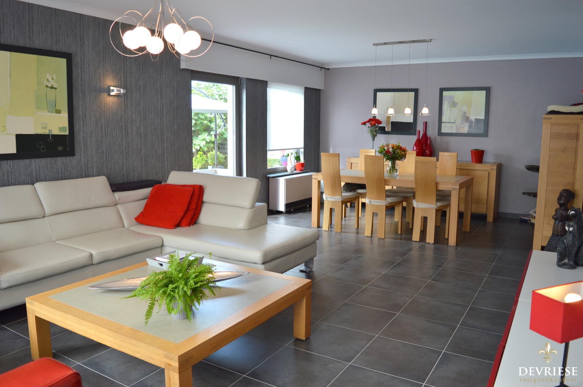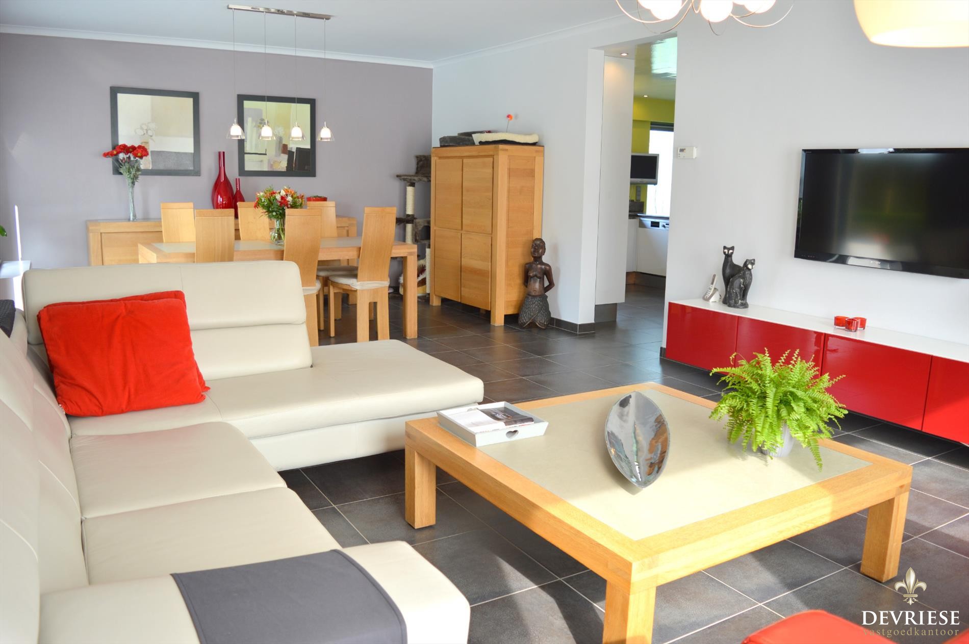 De woning beschikt over 4 slaapkamers, ruime en heel lichtrijke living, keuken met zicht op de tuin, recente badkamer en grote dubbele garage alsook nog een aparte enkele garage.