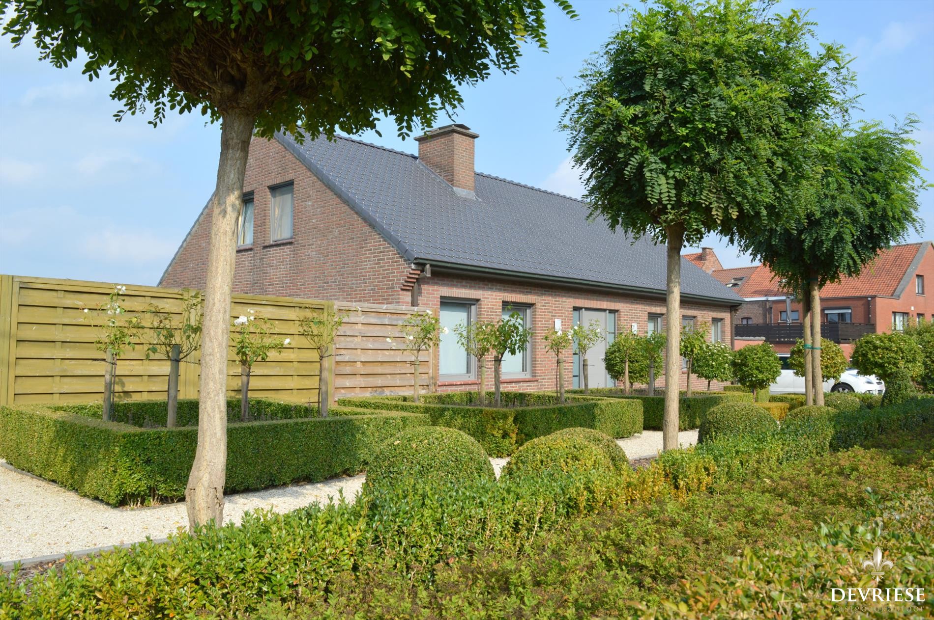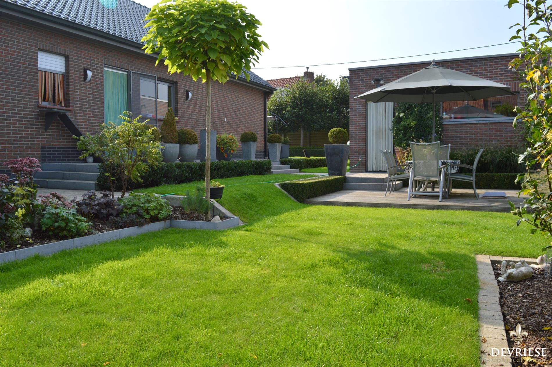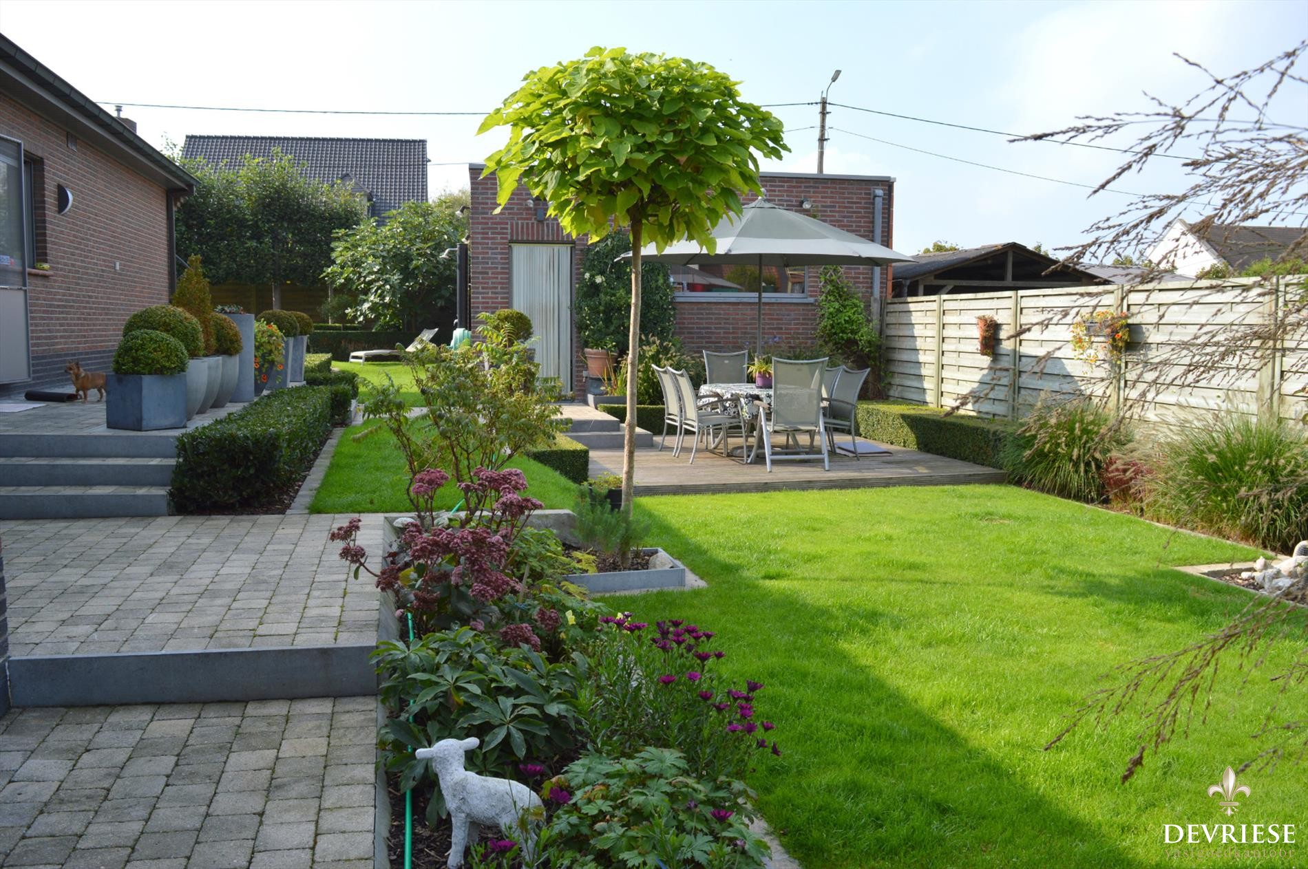 De tuin is heel fraai aangelegd met zwembad, zonneterras,... en werkelijk een streling voor het oog. Ook de voortuin straalt en ligt er perfect bij.