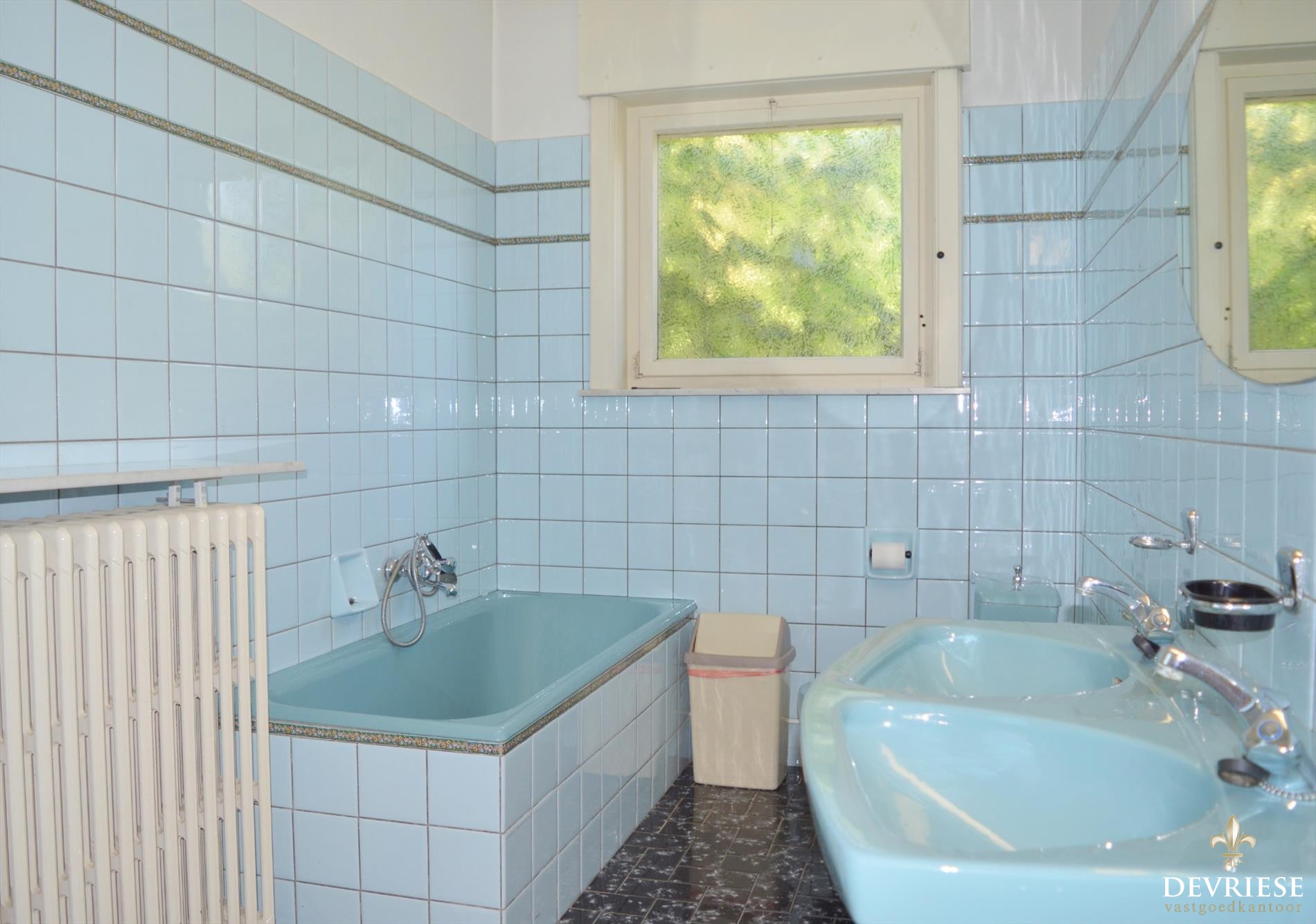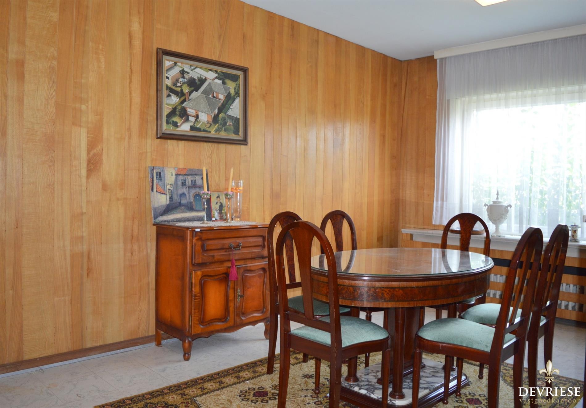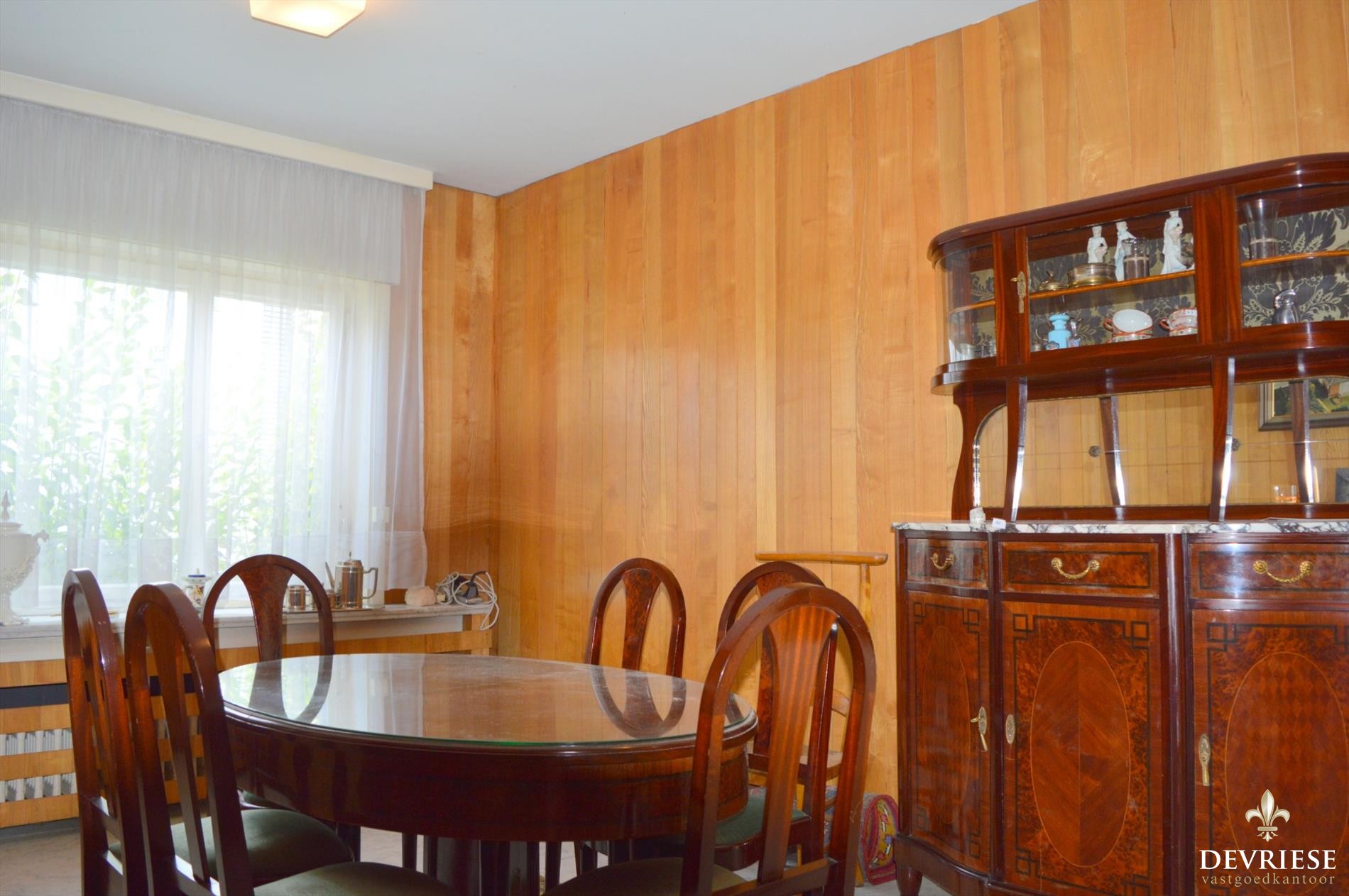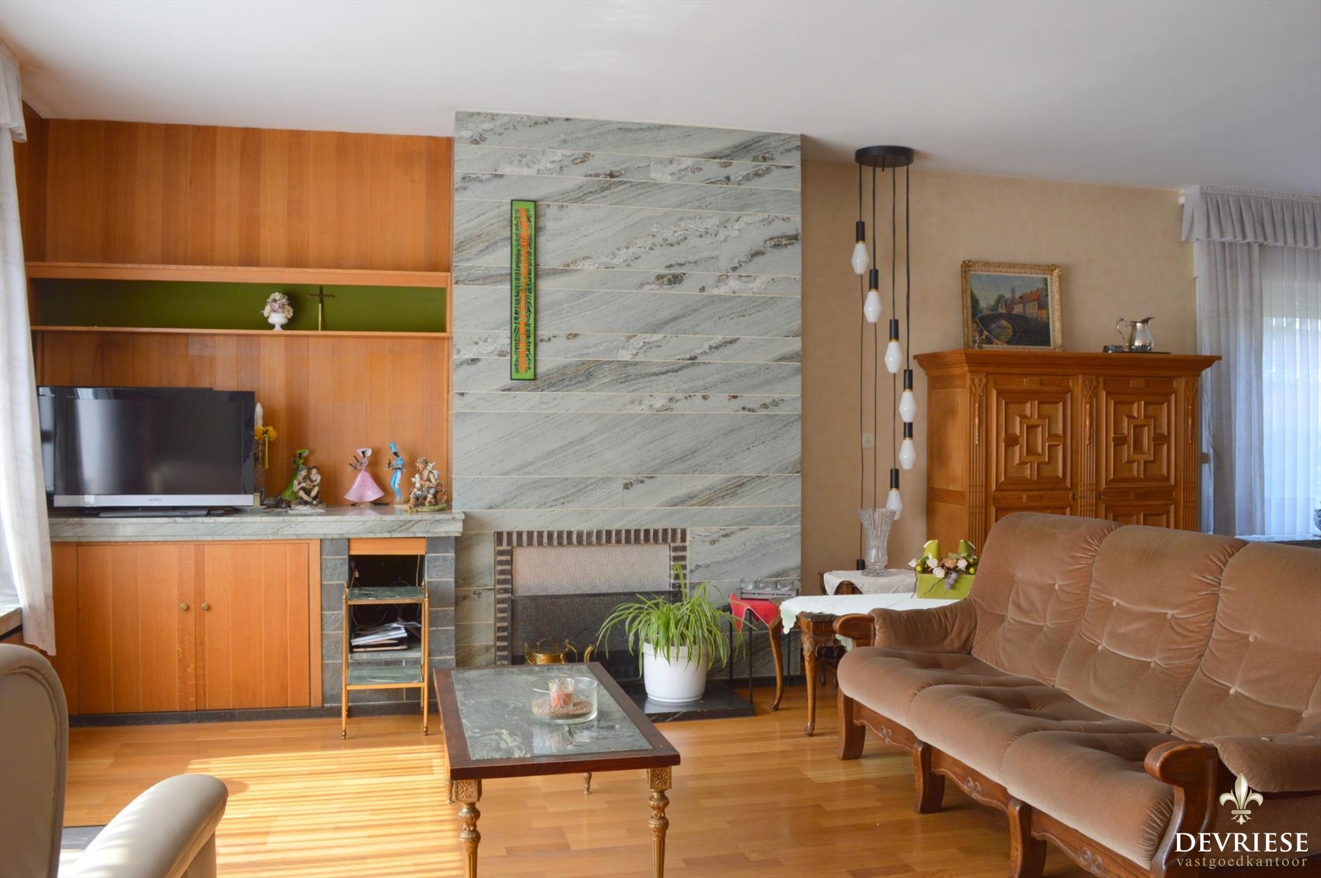 Zeer ruime prachtige leefruimte met authentiek parket en open haard, genietend van heel wat lichtinval.