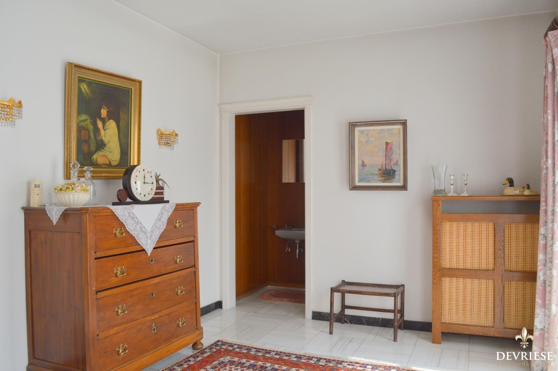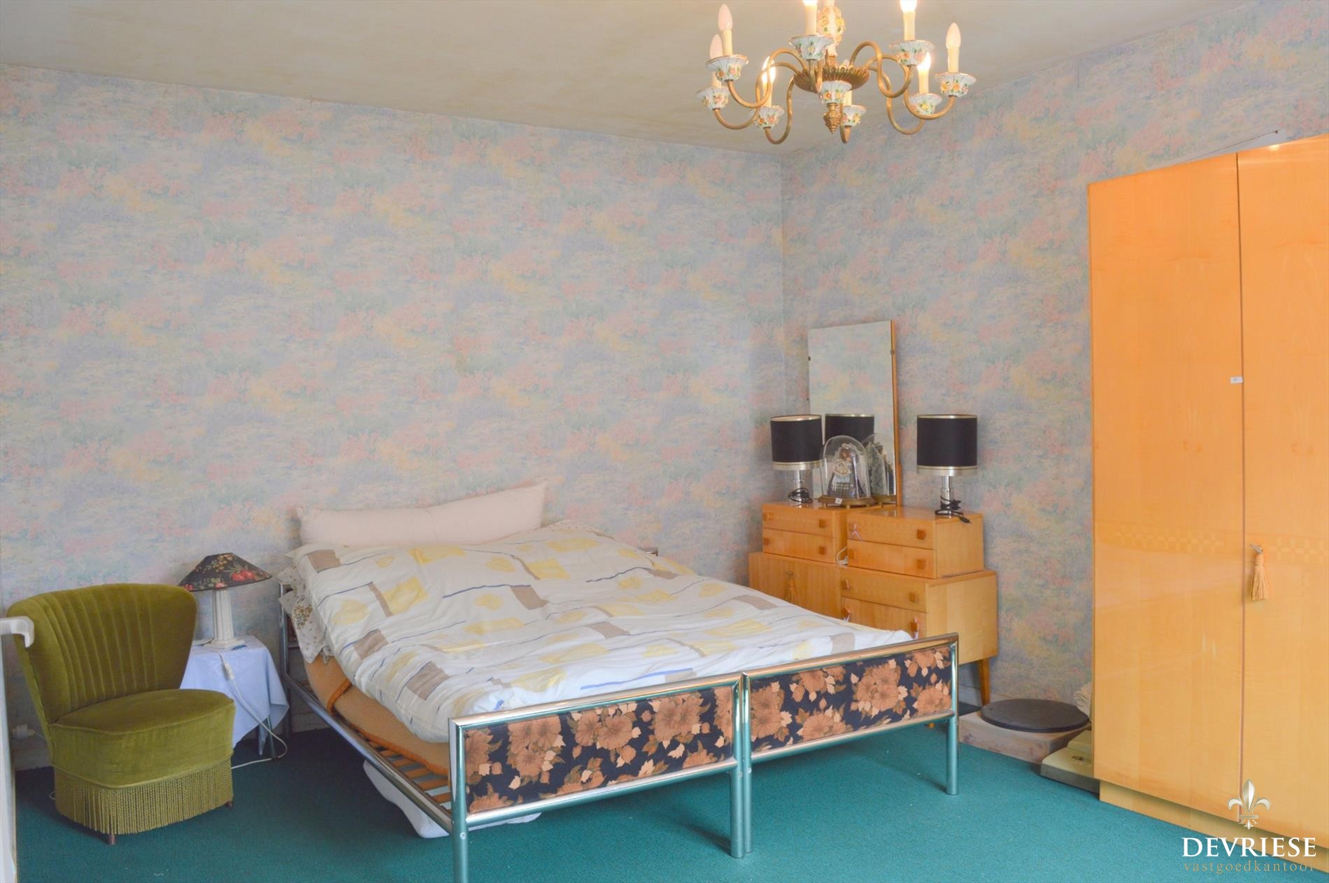 Deze op te frissen villa bestaat uit hal met vestiaire en apart toilet alsook een 1e slaapkamer die ook dienst kan doen als bureelruimte.