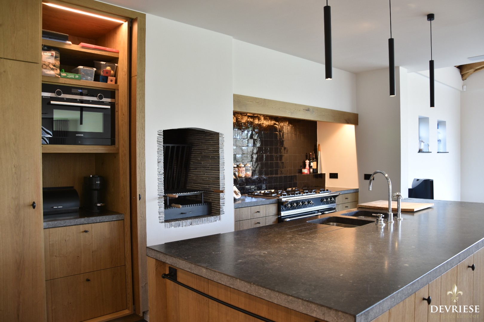 De keuken is hyper-geïnstalleerd. Werkblad in volle natuursteen, een bbq, ... zijn slechts enkele van de vele troeven.