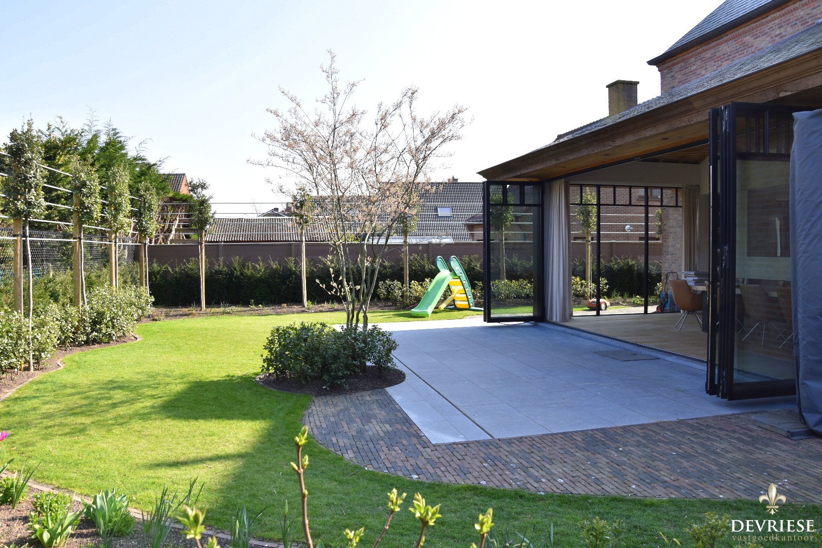 Ook de buitenomgeving van deze eigendom werd tot in de puntjes afgewerkt zoals daar zijn de paden rond de woning in klinkers, volledige groenaanplanting, fijn zit terras én bovendien uitermate onderhoudsvriendelijk.