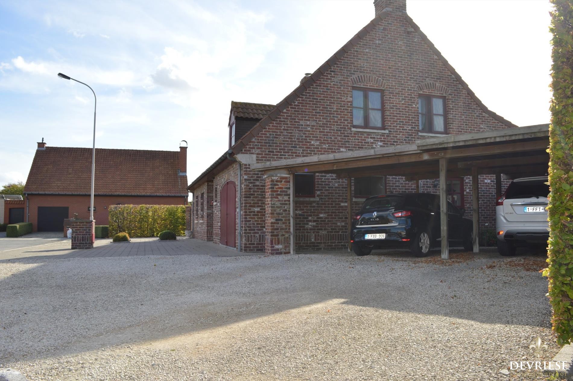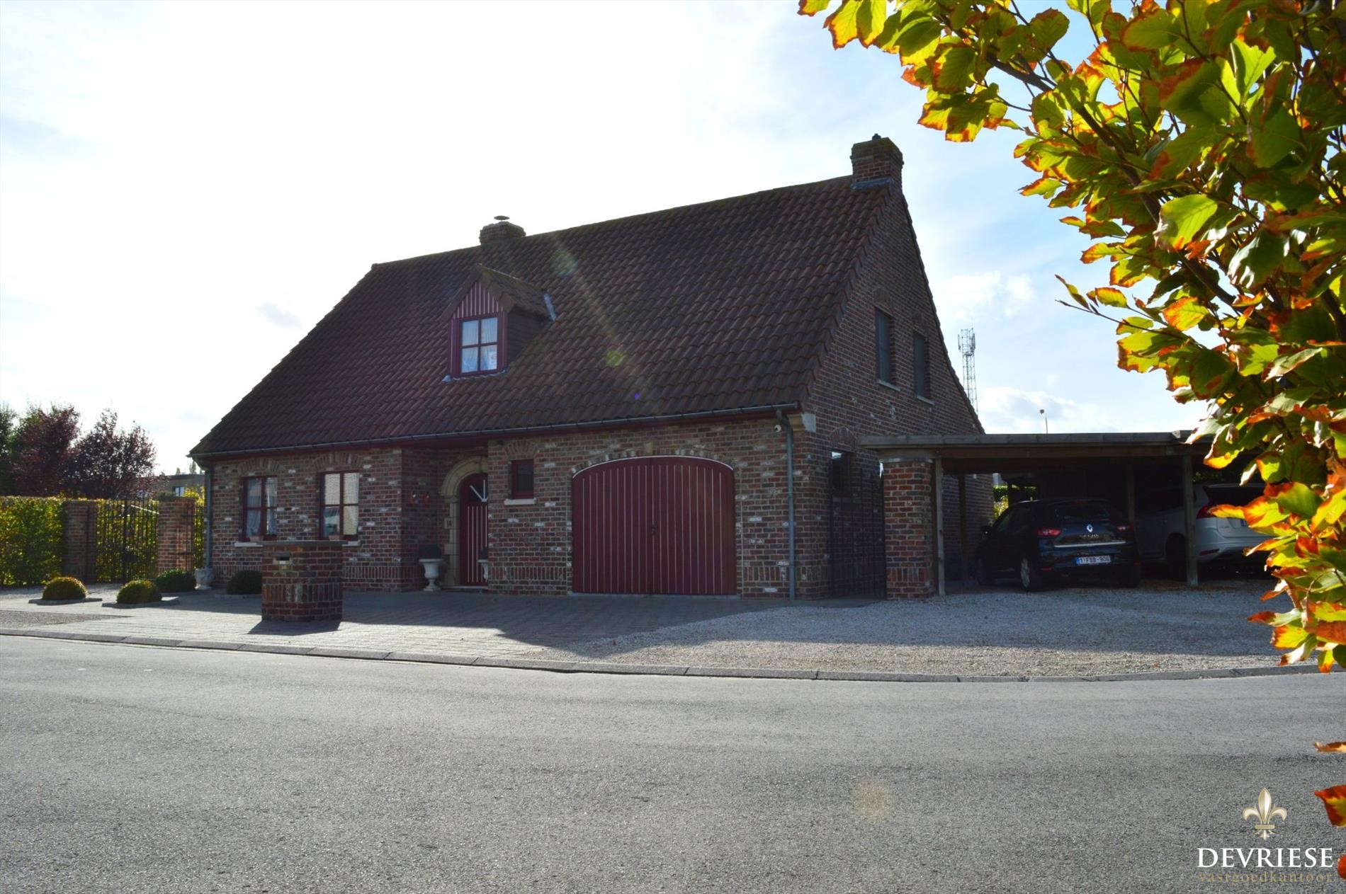 Ook de volledig ingerichte 'leefkeuken' kijkt uit op de tuin en biedt voldoende plaats om met het volledige gezin te tafelen. Een berg/wasruimte voorziet in voldoende bergplaats naast de keuken. De inpandige garage wordt op vandaag gebruikt als polyvalente ruimte zoals strijkplaats en gezien de vele ingemaakte kasten ook als stockageruimte maar kan perfect plaats bieden aan een eerste wagen. Naast de woning is er de dubbele carport voor twee wagens en ruime oprit of dus heel wat parkeermogelijkheden op eigen terrein.