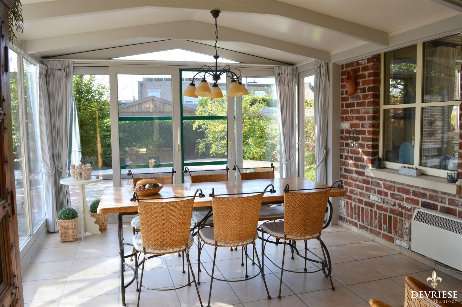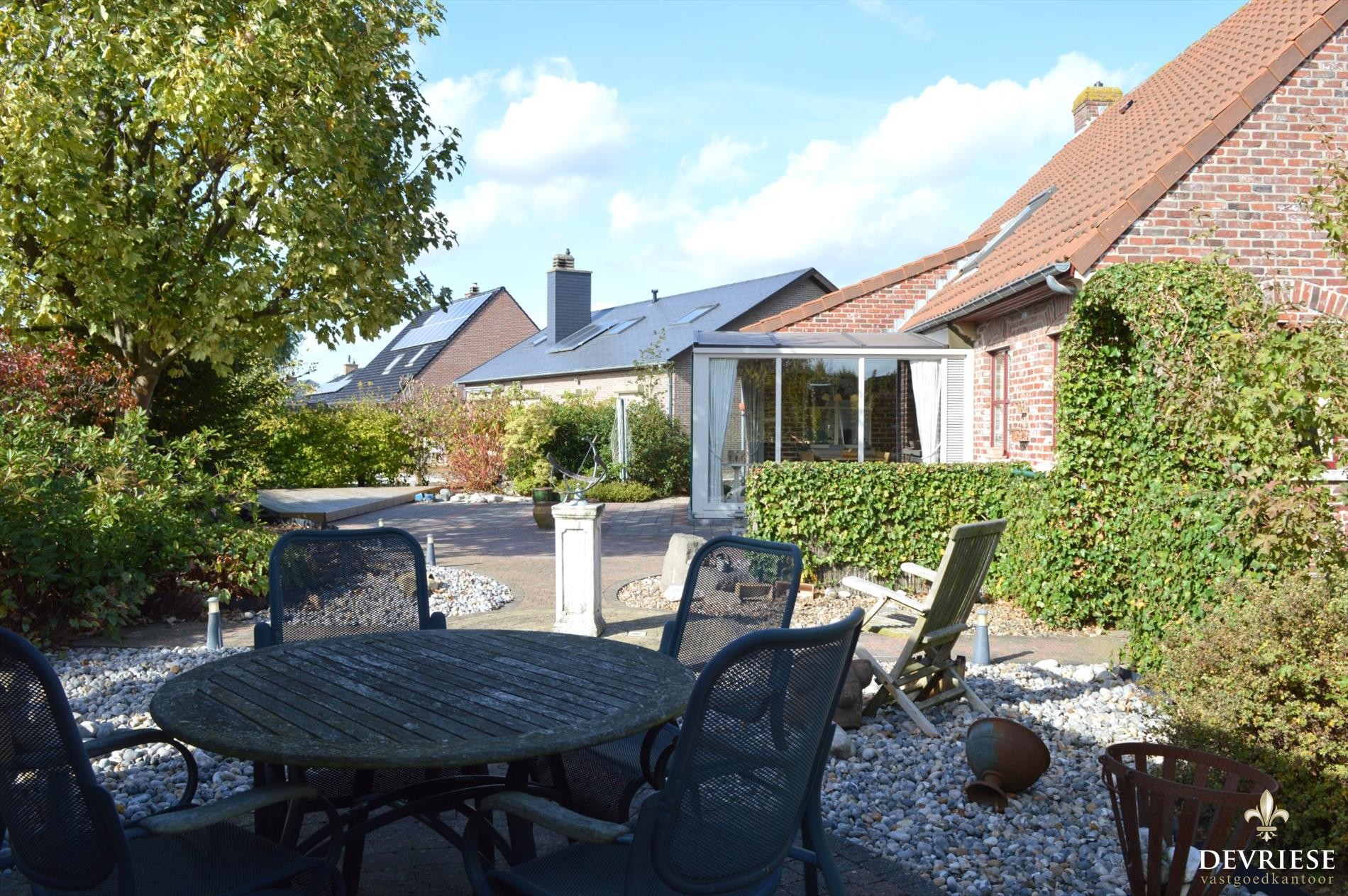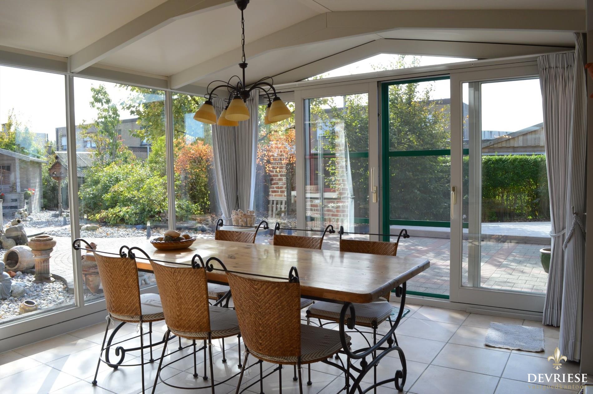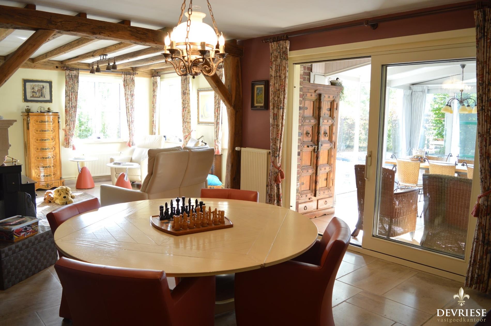 Deze schitterende eigendom met perfecte oriëntatie is een topper op de markt. Via de inkomhal met gastentoilet kom je in de gezellige woonkamer met charmante houtkachel en zicht op de tuin. De aangebouwde veranda draagt bij tot het grote bewoonbare oppervlak van deze woning en het is er in elk jaargetijde zeer fijn vertoeven gezien de enorme lichtinval en zicht op de fraai aangelegde tuin. Deze tuin ligt er zowel voor als achteraan onberispelijk bij en is uitermate verzorgd en onderhoudsvriendelijk.
