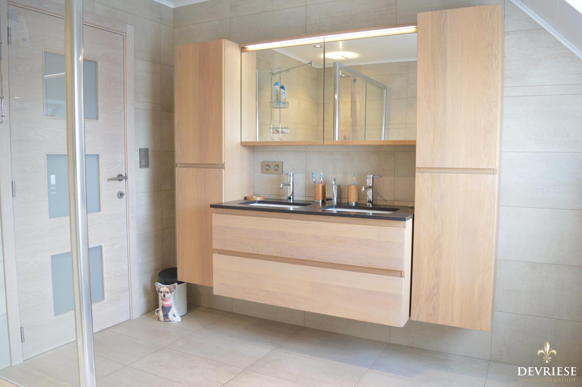 Zowel de hall, ... trap als de bovenverdieping werden recentelijk volledig vernieuwd en bij-geïsoleerd. Deze telt maar liefst 4 slaapkamers. Dé eyecatcher is de nieuwe moderne badkamer met 2e toilet, inloopdouche en dubbele lavabo.